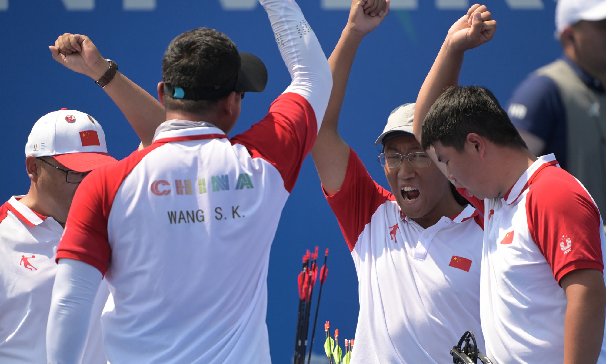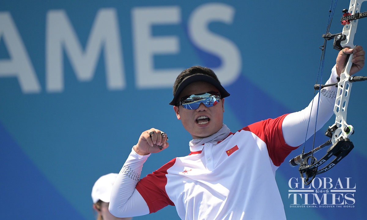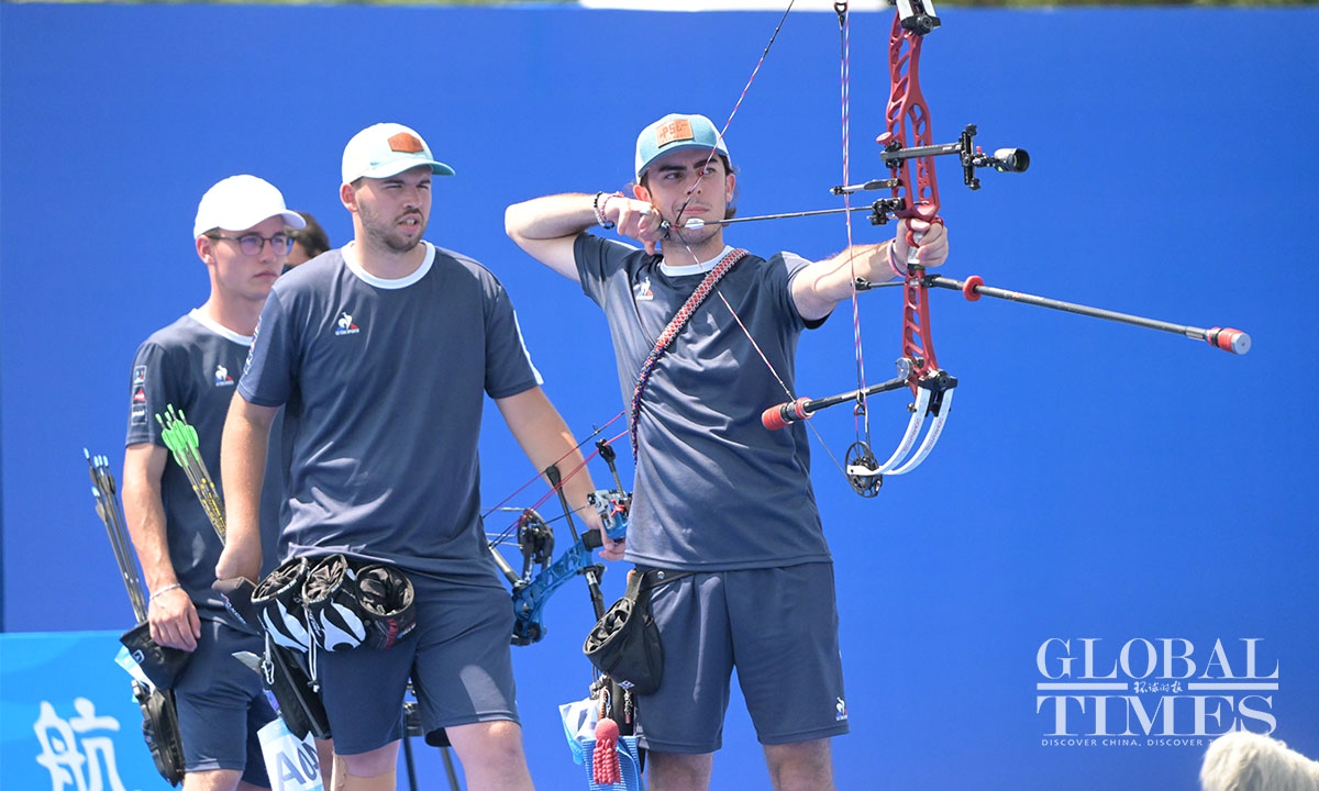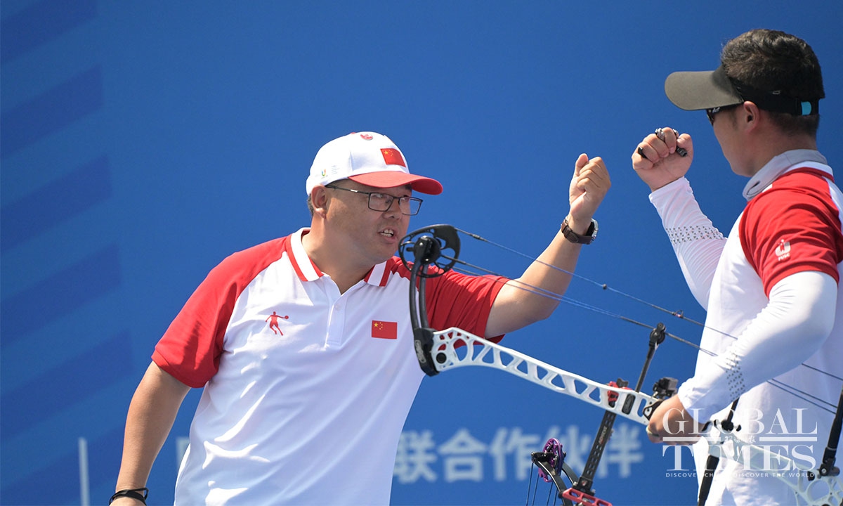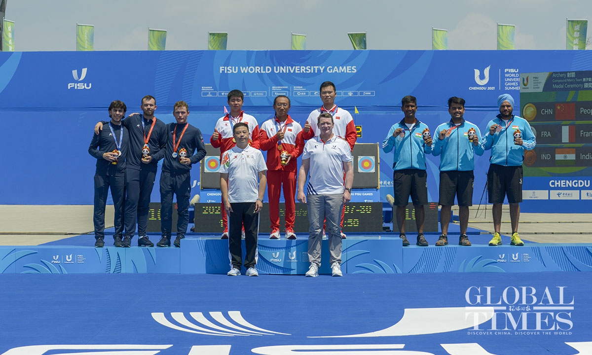 On July 30th, after a fierce competition, the Chinese athletes defeated the French team in the men's compound archery team final at the Chengdu FISU World University Games and won the Chinese Archery Team's first gold medal. Photos: Chen Tao/GT
