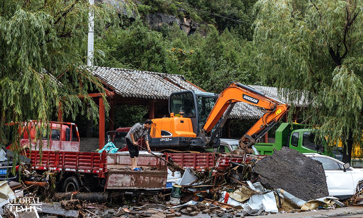 Villagers begin dredging work following heavy rain in Beijing's Mentougou