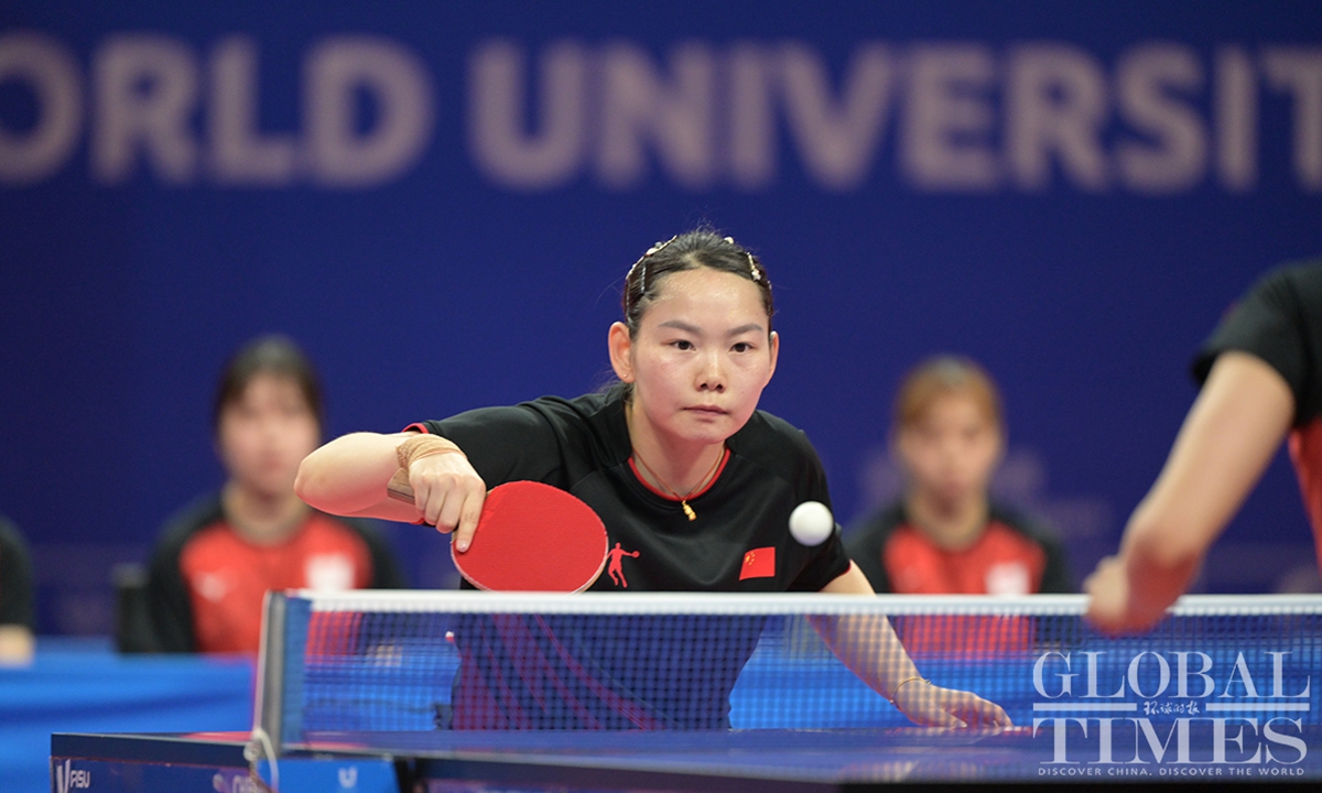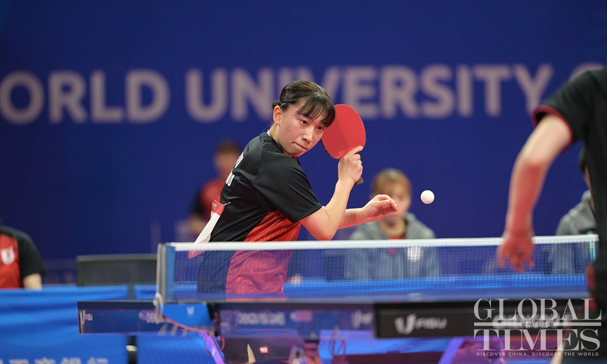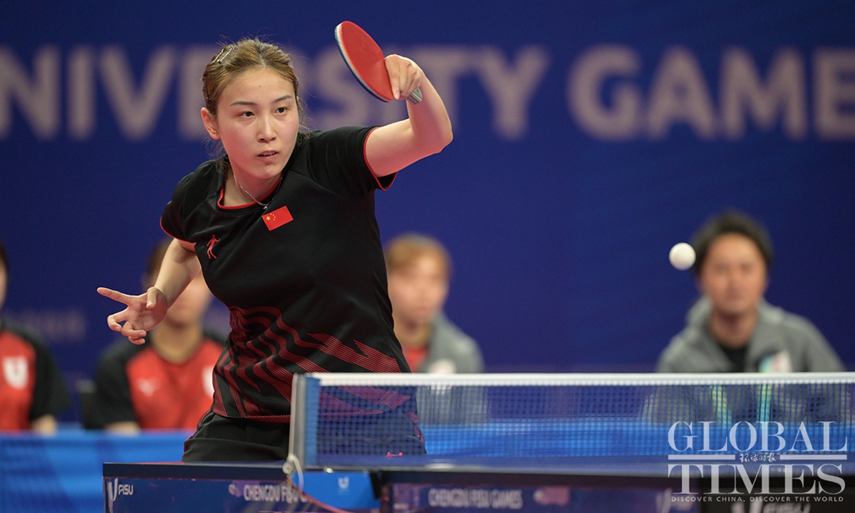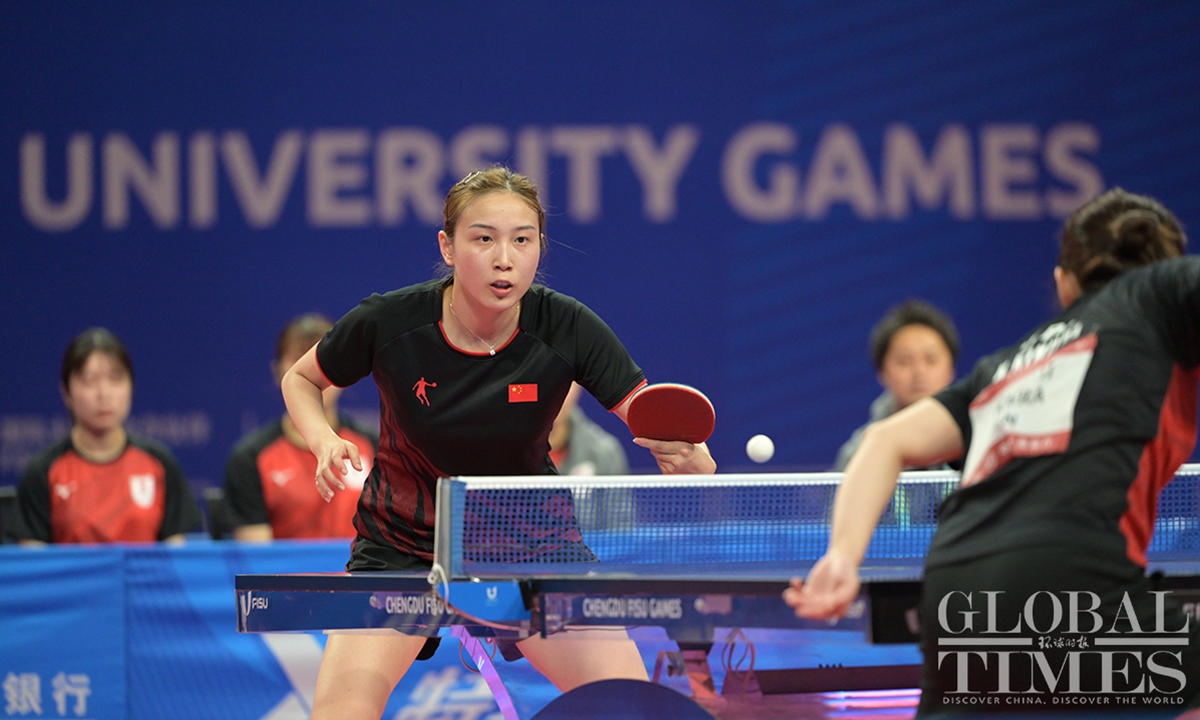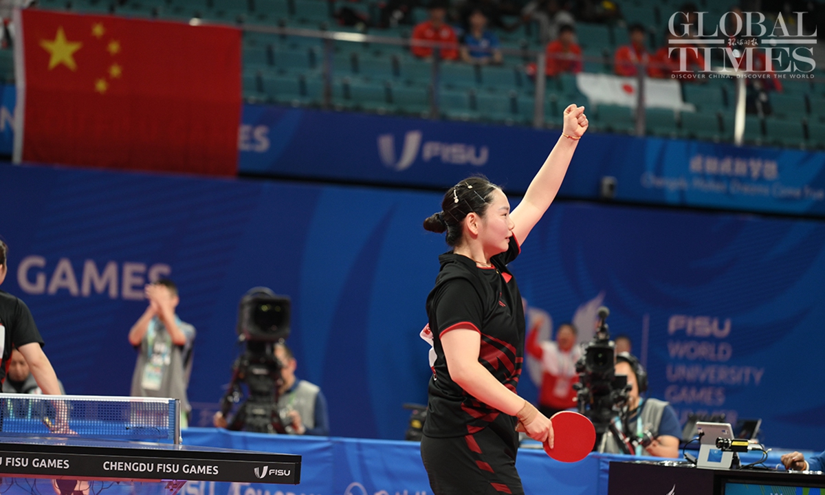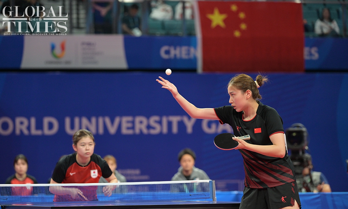 In the women's team final of the table tennis event at the Chengdu Universiade, the Chinese team defeated the Japanese team with a score of 3:2. This is also the first table tennis gold medal produced in this edition of the competition. Photos: Chen Tao/GT