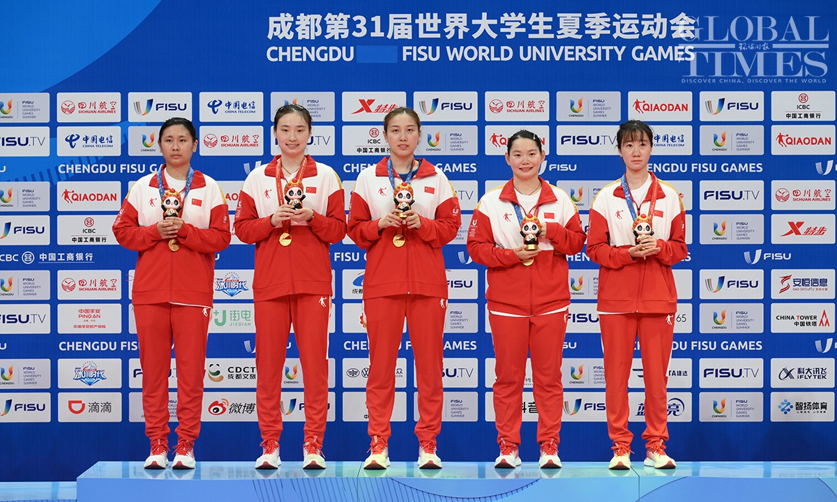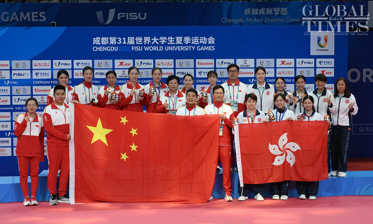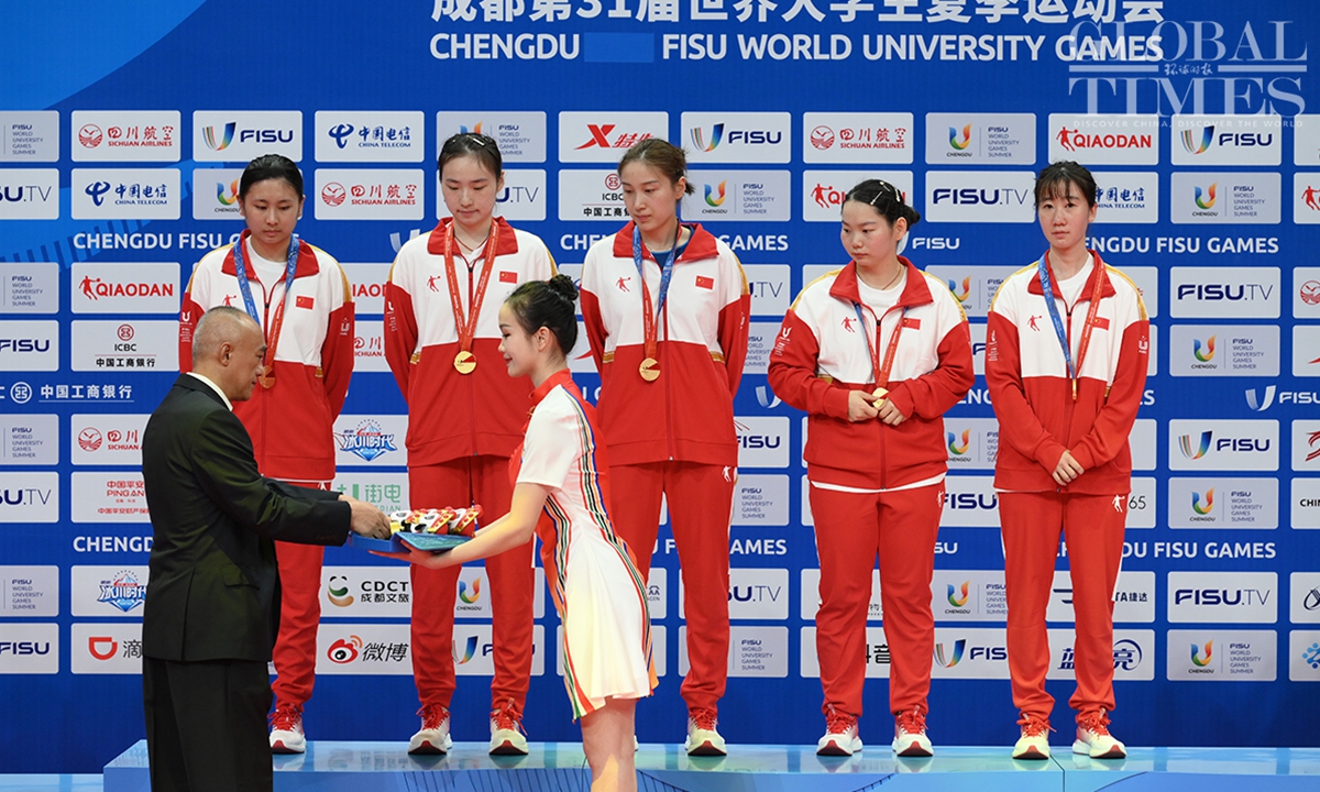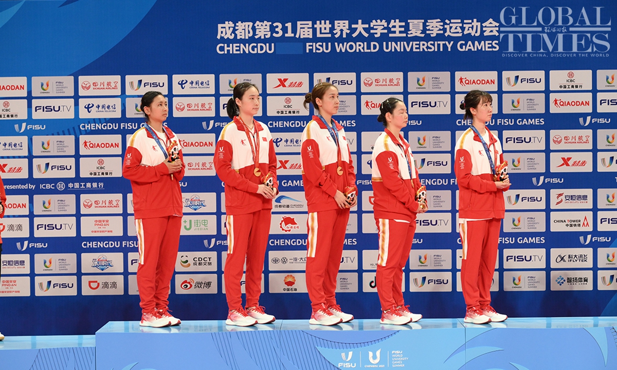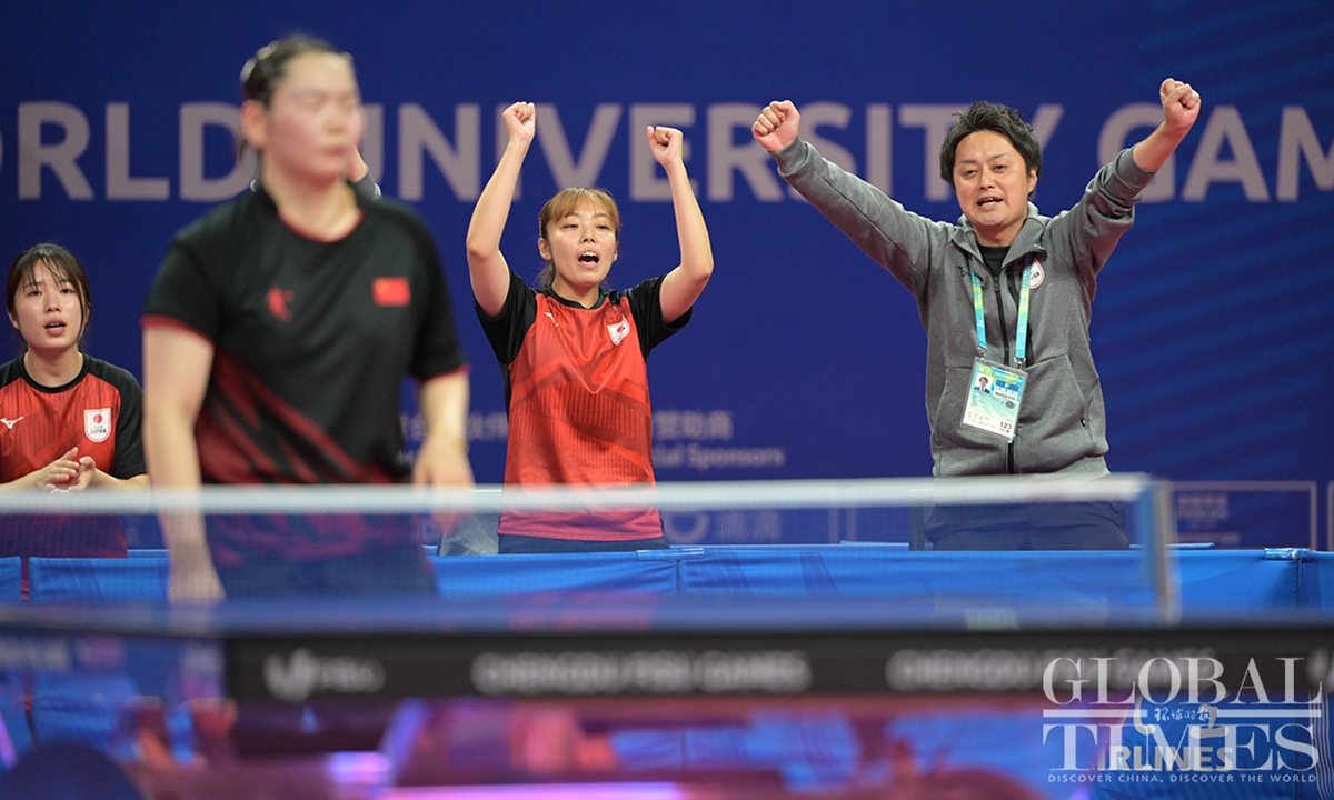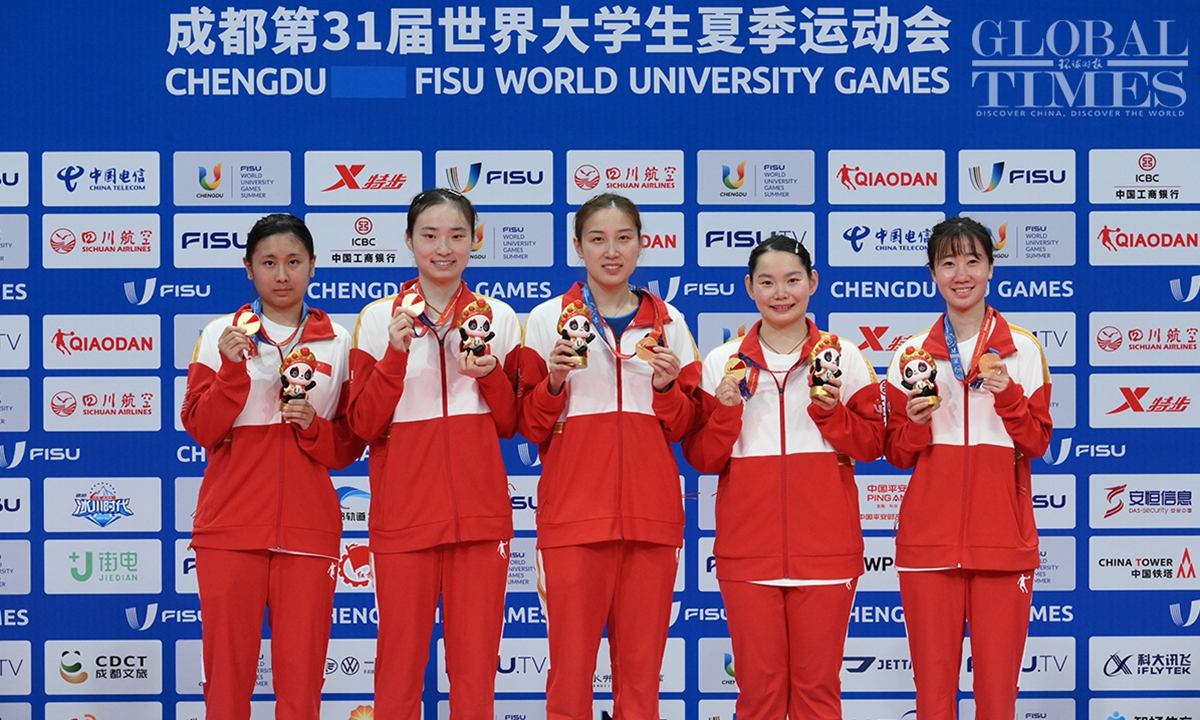 In the women's team final of the table tennis event at the Chengdu Universiade, the Chinese team defeated the Japanese team with a score of 3:2. This is also the first table tennis gold medal produced in this edition of the competition. Photos: Chen Tao/GT