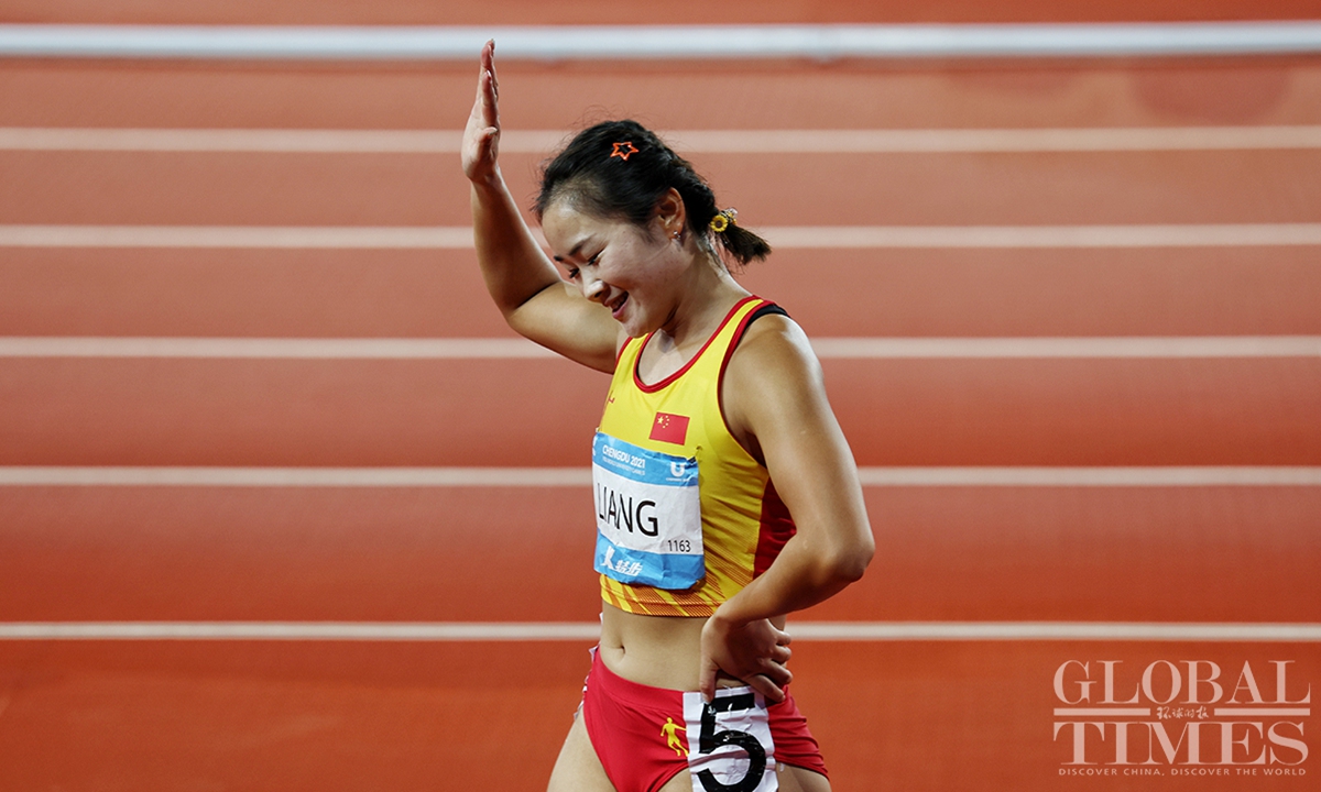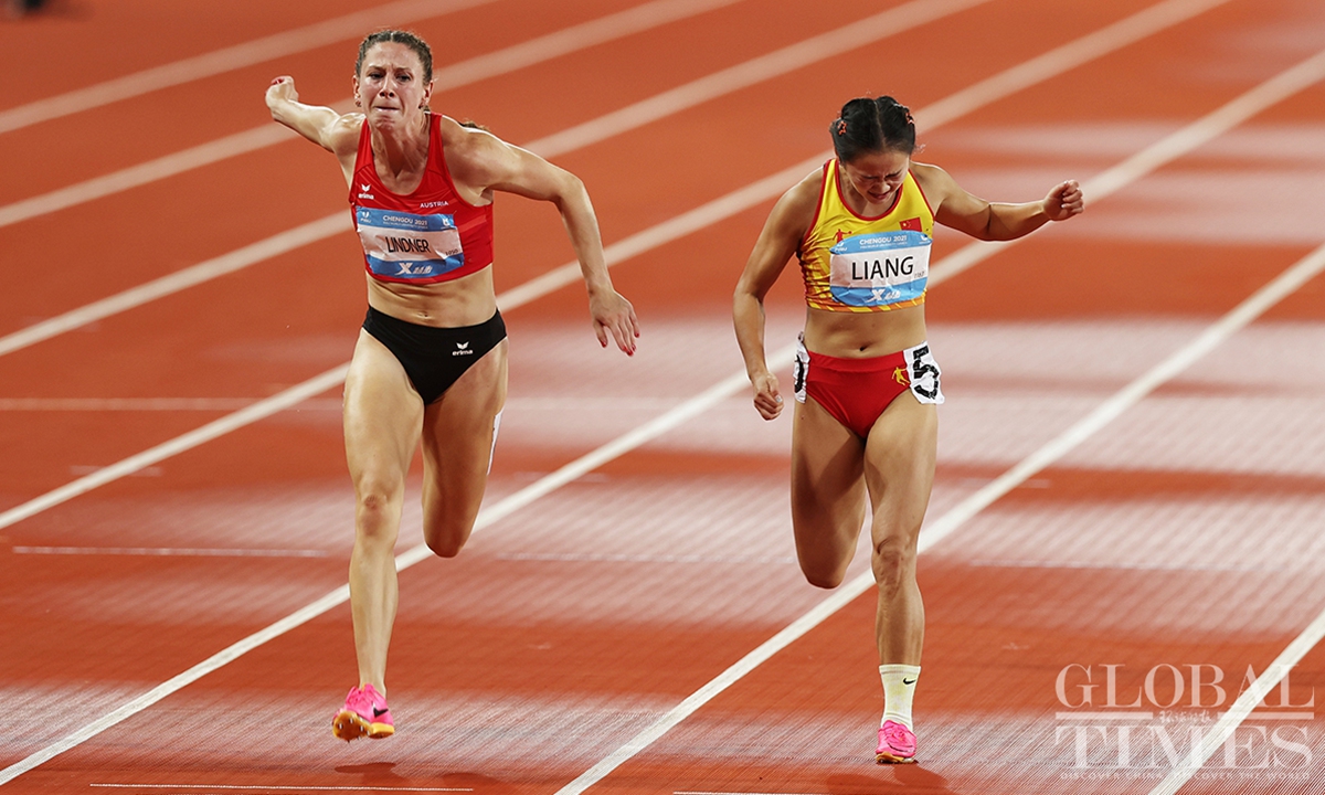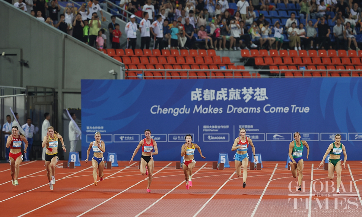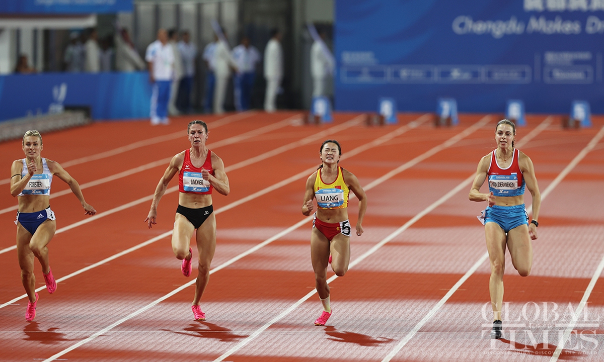 On August 2,the sprint battle of the Chengdu FISU Games track and field event kicked off. In the women's 100m final, Chinese sprinter Liang Xiaojing finished fifth with a time of 11.48 seconds. Luxembourg athlete Weken won the championship with a time of 11.22 seconds. Photos:Cui Meng/GT