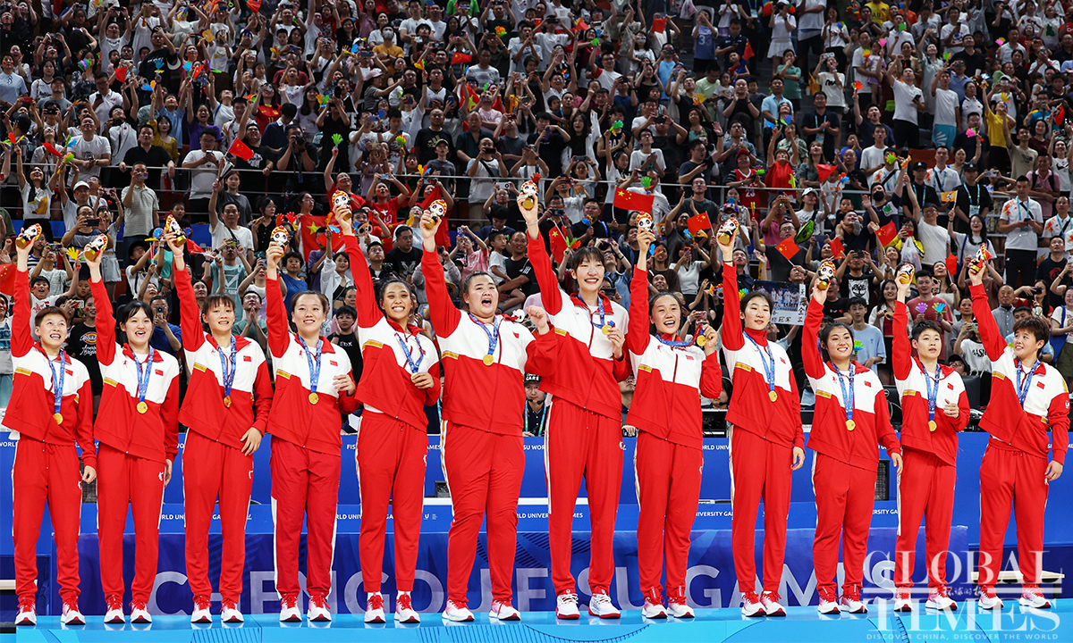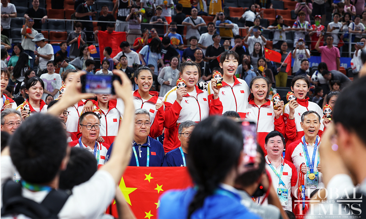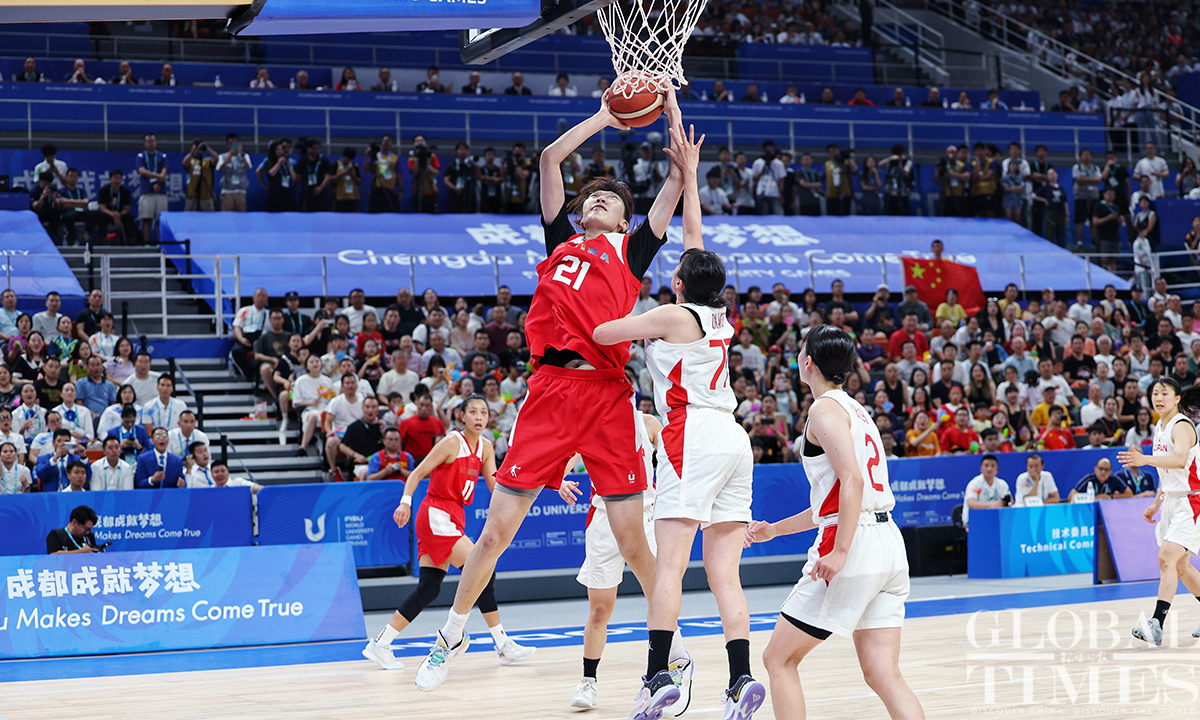 Team China defeats Team Japan with a score of 99-91 and wins gold in women’s basketball at Chengdu FISU World University Games on August 5, 2023. (Photos: Cui Meng/GT)