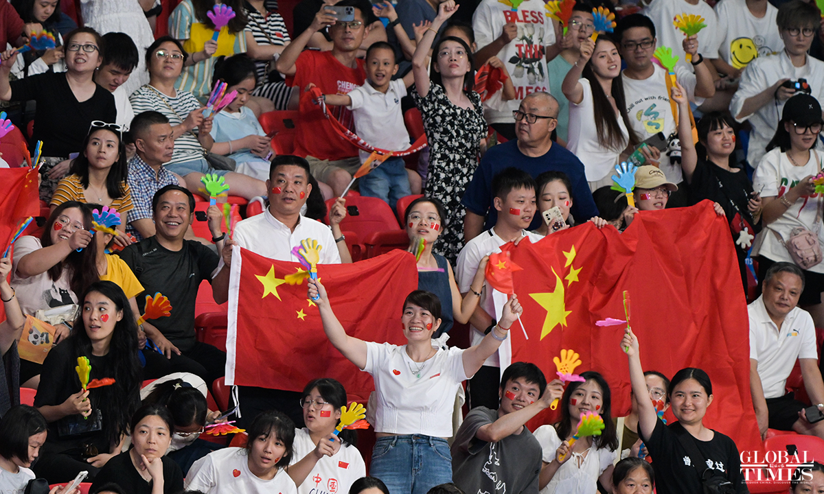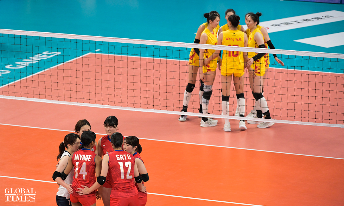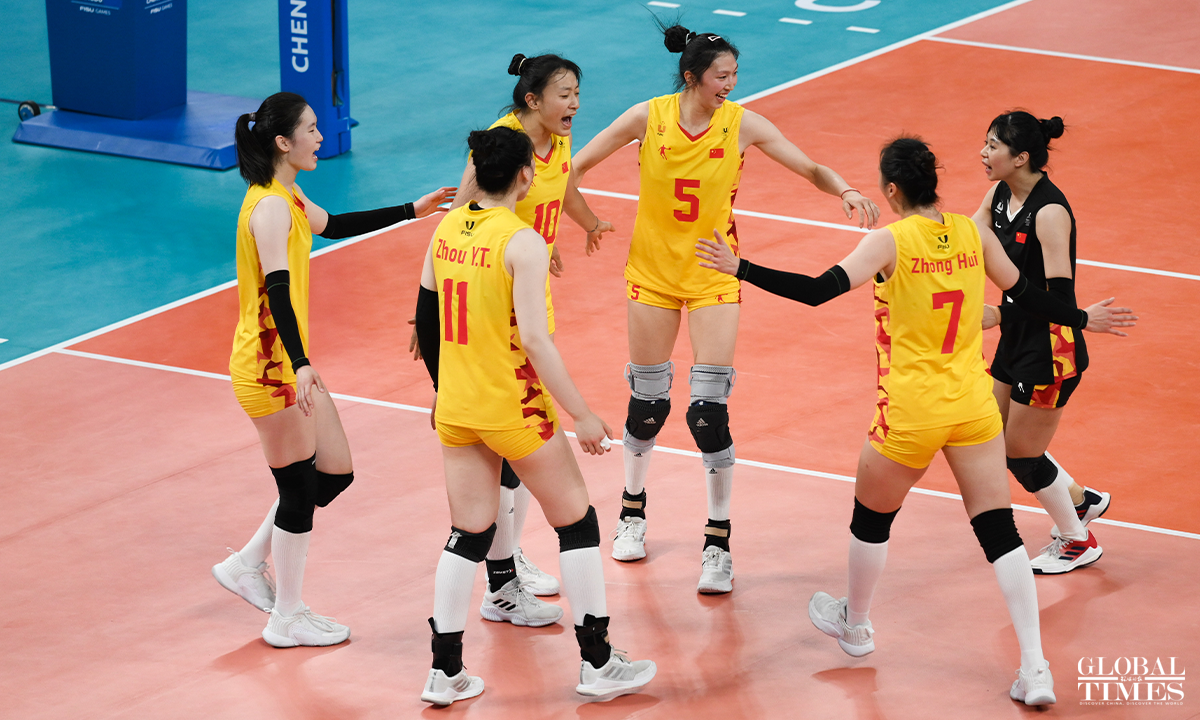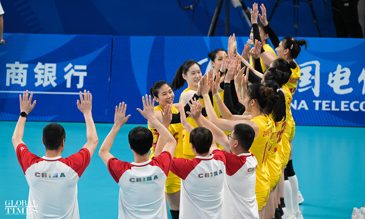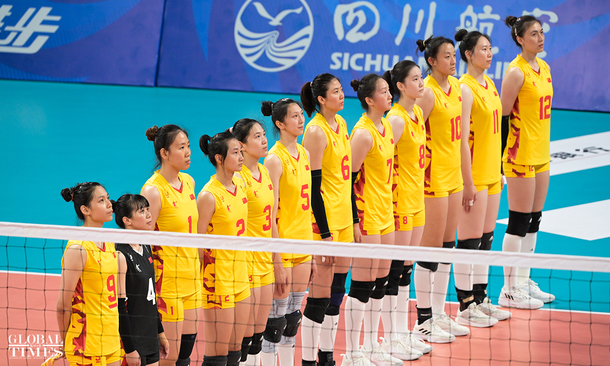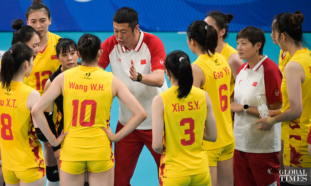 Team China edged past Japan 29-27, 29-27, 25-22 to win the women's volleyball gold medal at the Chengdu Universiade on Sunday. The Japanese team and the Polish team claimed the silver and bronze medals, respectively. Photos: Chen Tao/GT