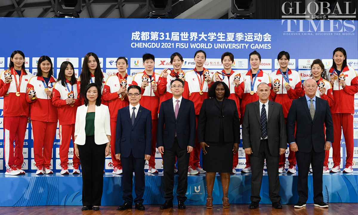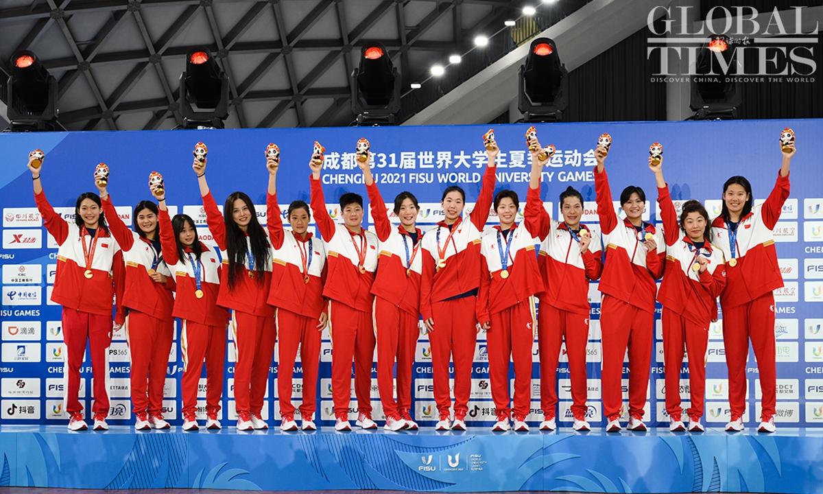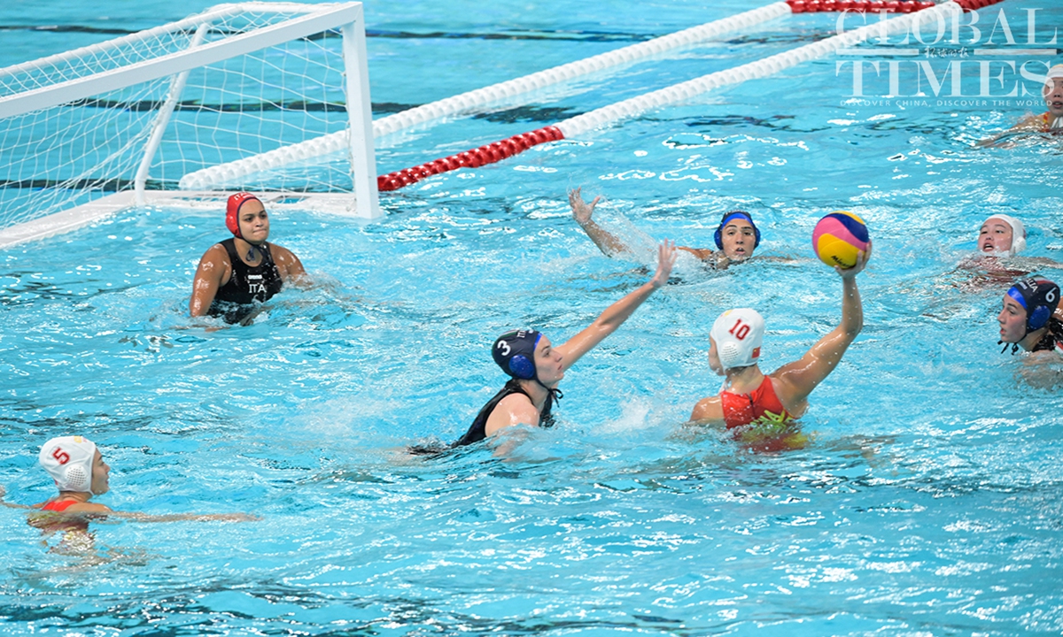 The women's water polo final of the Chengdu FISU Games was held at the Chengdu Modern Pentathlon Center's swimming and fencing venue. The Chinese team competed against the previous Universiade runner-up, Italy. Throughout the entire match, the Chinese team fully demonstrated their strength and ultimately won with a score of 12-7, securing the gold medal. Italy received the silver medal, while Australia, who had previously defeated Japan, won the bronze medal. Photos: Chen Tao/GT