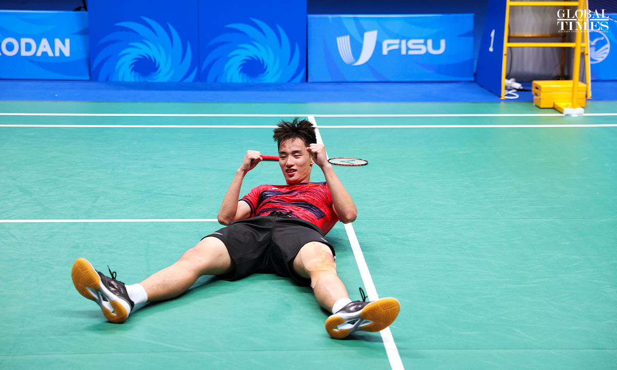 China's Wang Zhengxing crowned in badminton man's singles at Chengdu Universiade