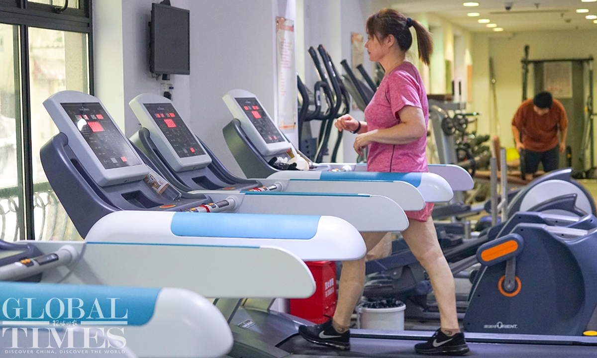 People play sports at various public sports facilities in Shanghai on Tuesday. Nearly 800 public sports facilities are open for free to the public in Shanghai on Tuesday, which marks the 15th National Fitness Day in China. Photos: Lu Ting/GT