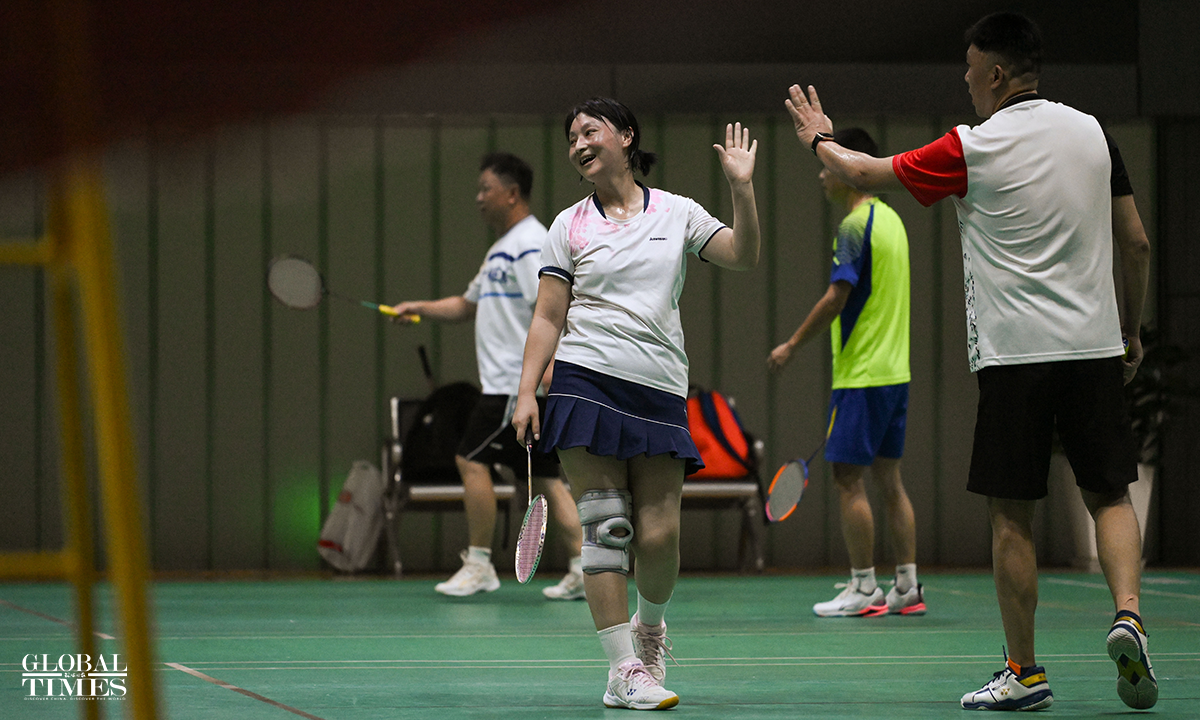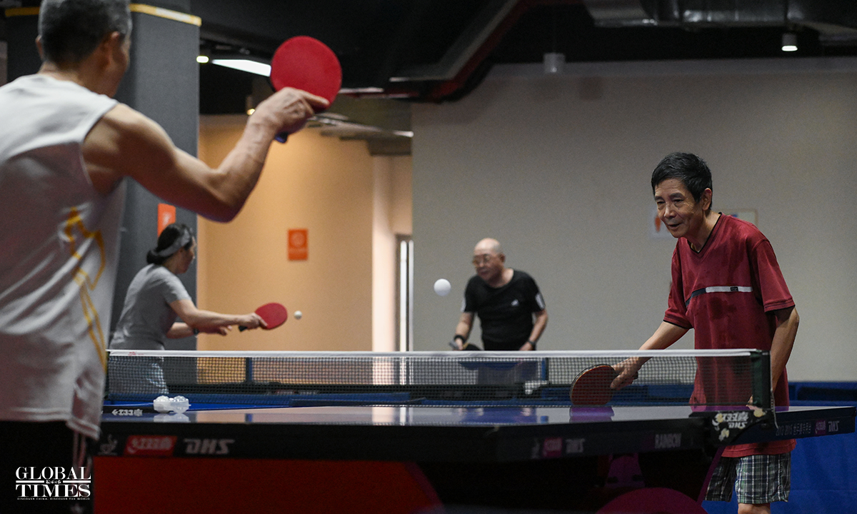 To celebrate the success of the Chengdu Universiade and to welcome the 15th National Fitness Day, 126 sports venues in Chengdu were opened to the public for free, creating a vibrant atmosphere of sports throughout the city. In Chengdu senior sports center, all tennis, badminton, table tennis, and billiards venues were fully booked. China's National Fitness Day falls on August 8 every year and was established in 2009 to meet the growing sports demands of the public and commemorate the successful hosting of 2008 Beijing Olympics. Photos: Chen Tao/GT