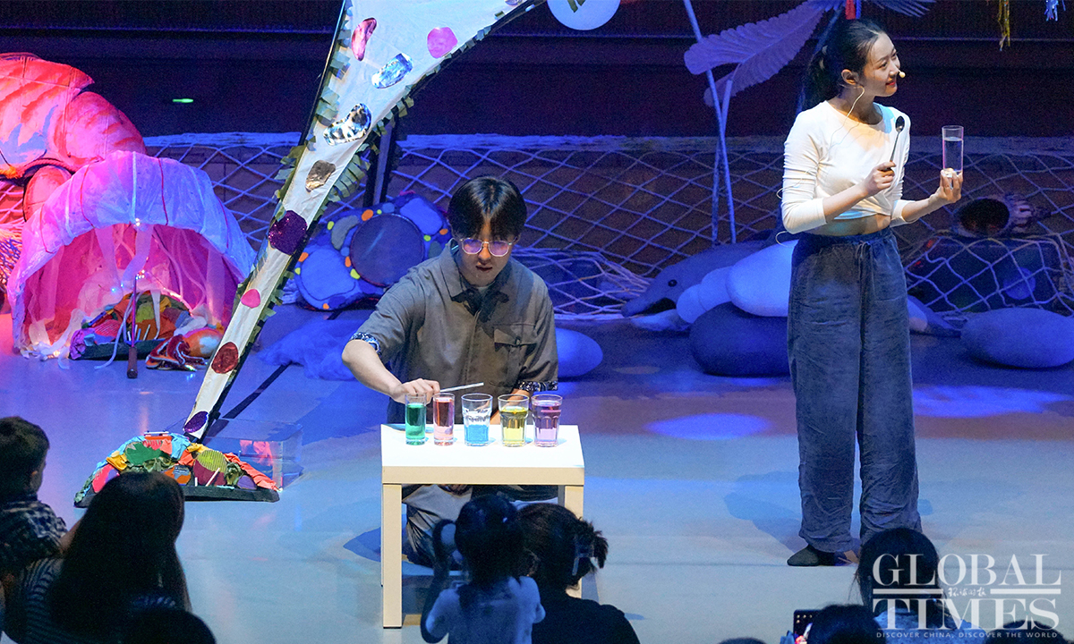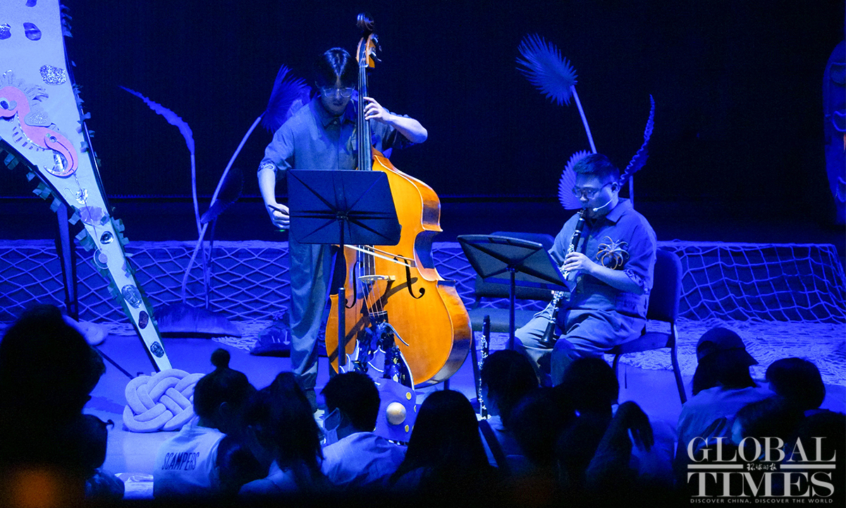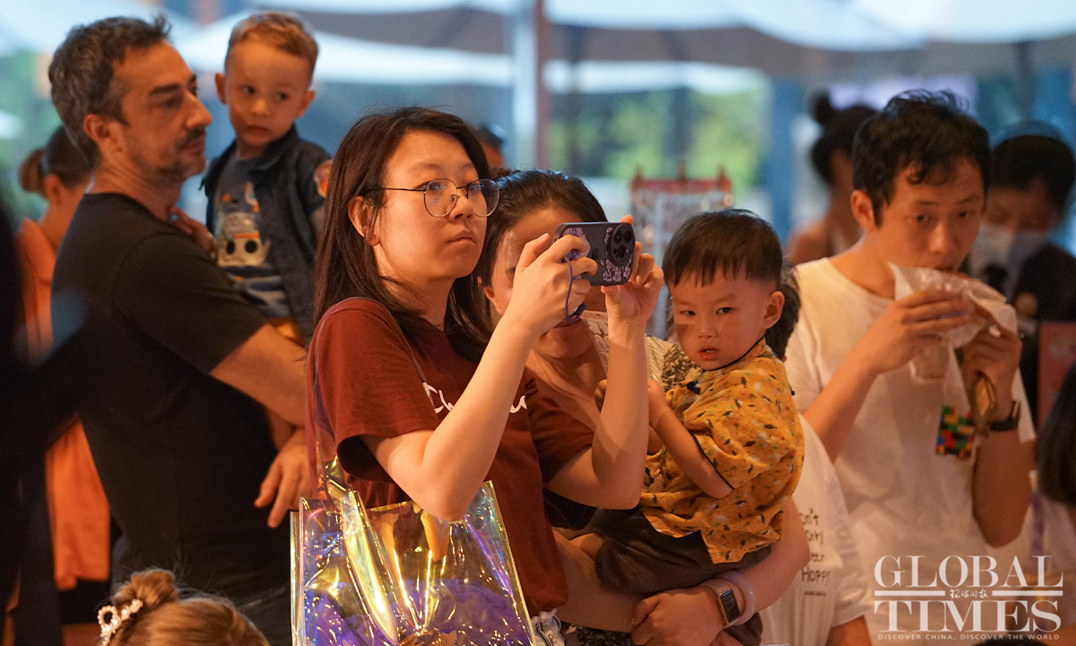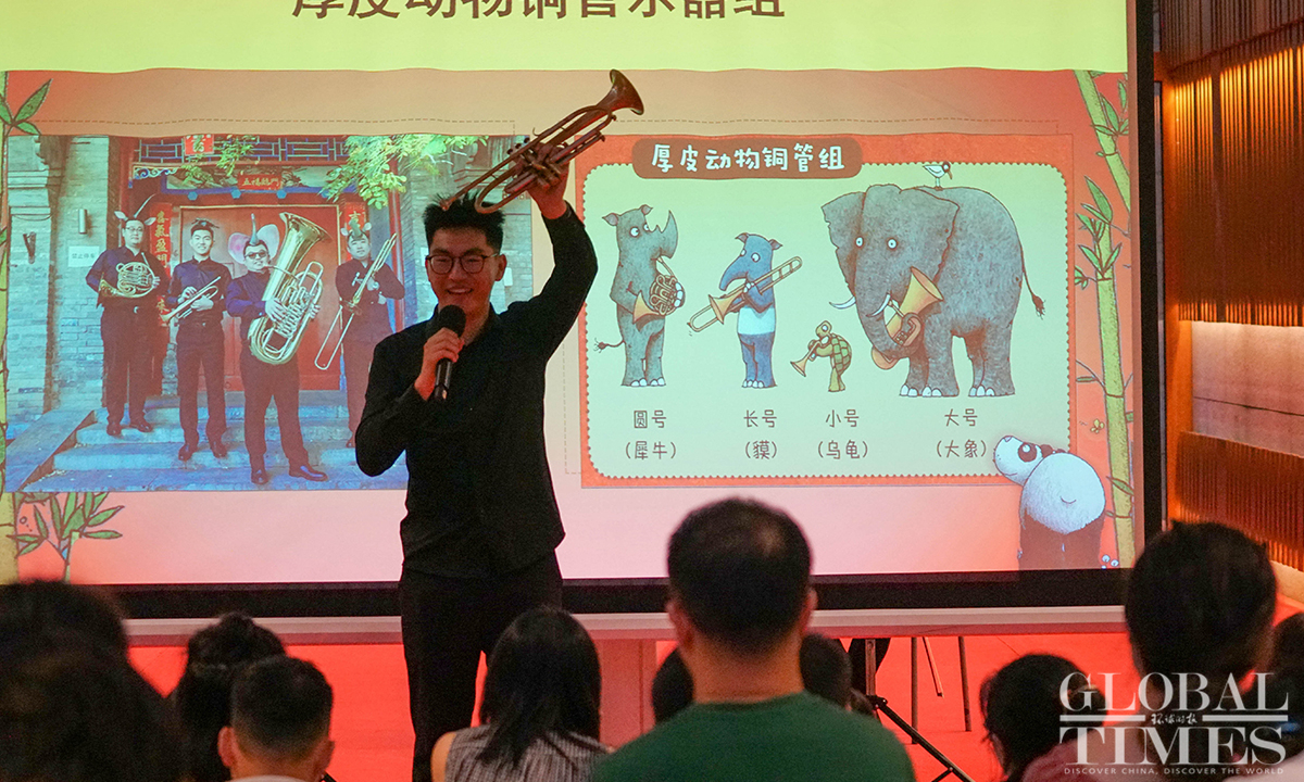 Parents and children enjoy classical music in Shanghai at the SSO Dream Season Art Festival, which is held during the weekends from August 5 to 13, 2023. Artists from China and abroad present 20 outstanding performances, as well as more than 50 workshops for kids. The concert, named "The Panda's Top-Secret Plan: The Farting Elephant Plays Tuba," which is adapted from a popular German music enlightenment picture book, serves as the first lesson for the little ones. (Photos: Lu Ting/GT)