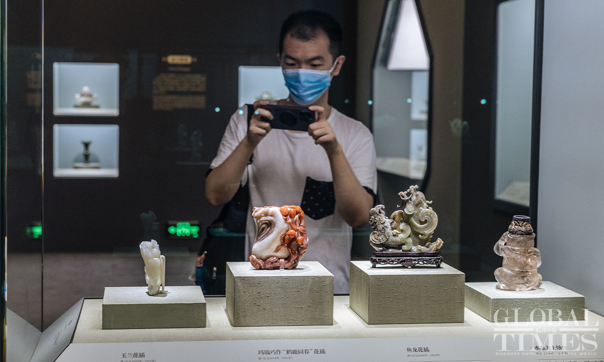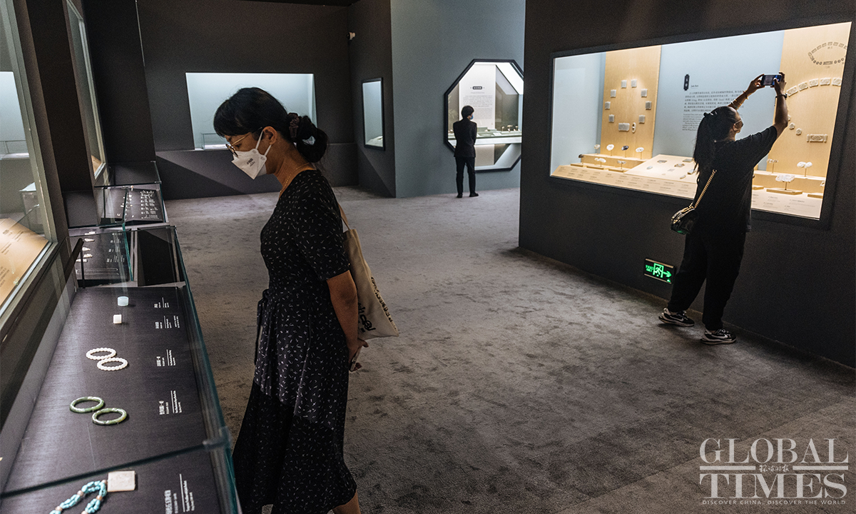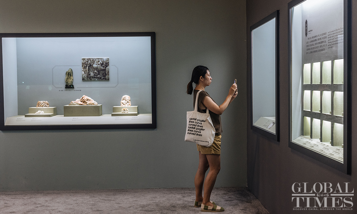 This exhibition features 480 artifacts, ranging from ancient times to the late Qing Dynasty, with a remarkable number of over 80 first-class cultural relics. Additionally, the exhibition has also included more than 20 various mineral specimens from the collection of the Geological Museum of China. The sheer quantity of exhibits and the high caliber of cultural relics on display make this exhibition a rare occurrence among similar exhibitions in China. Photos: Li Hao/GT
