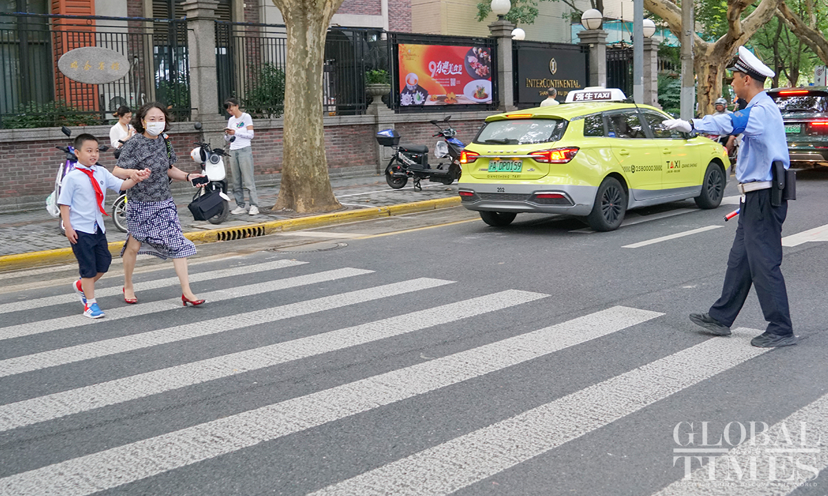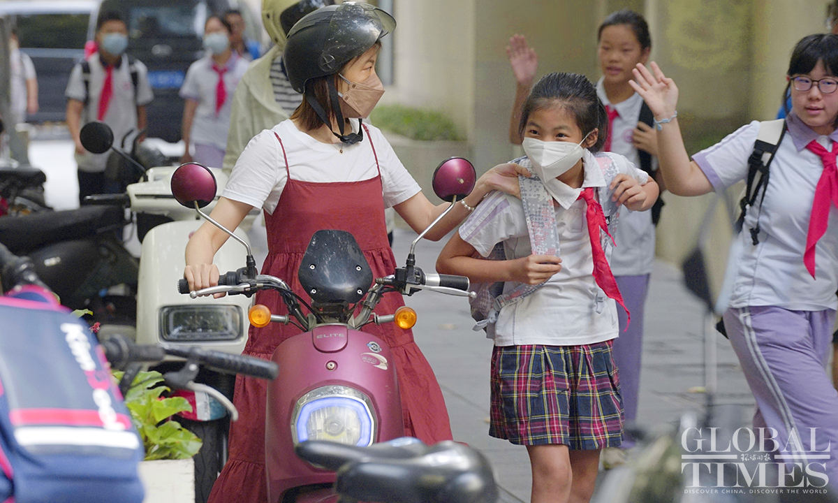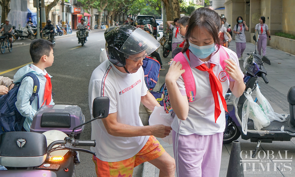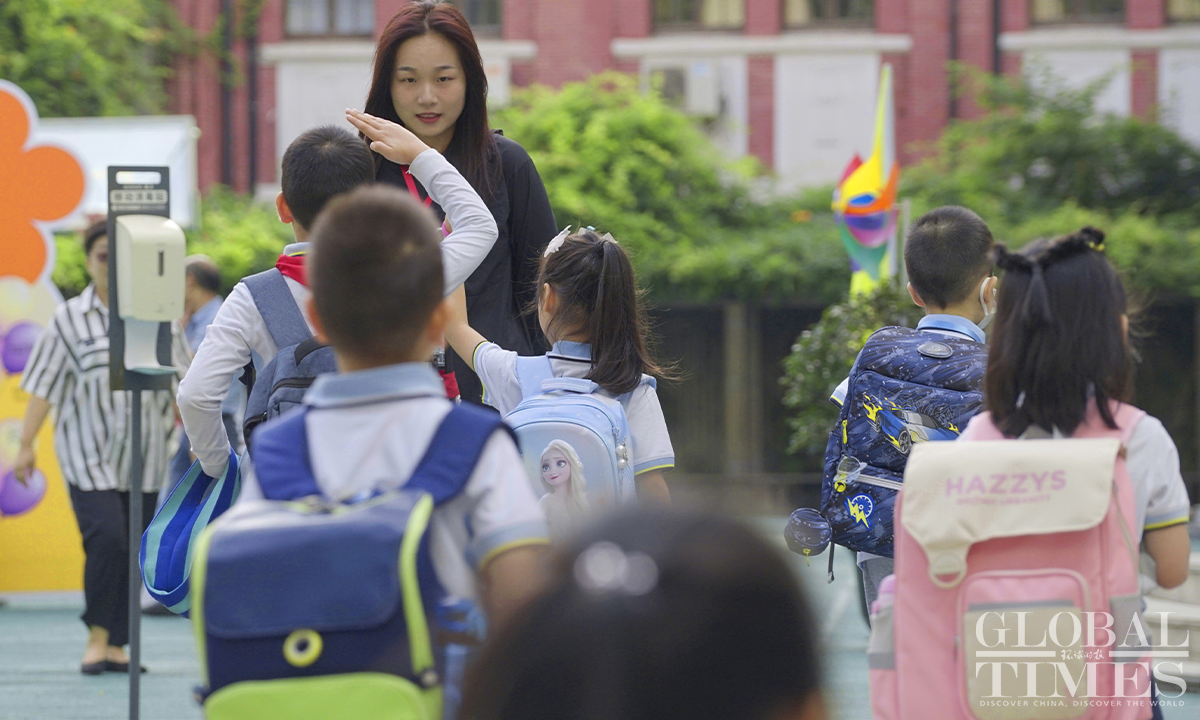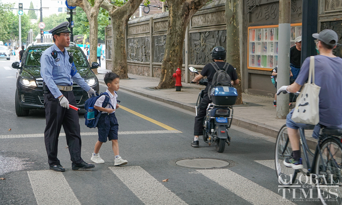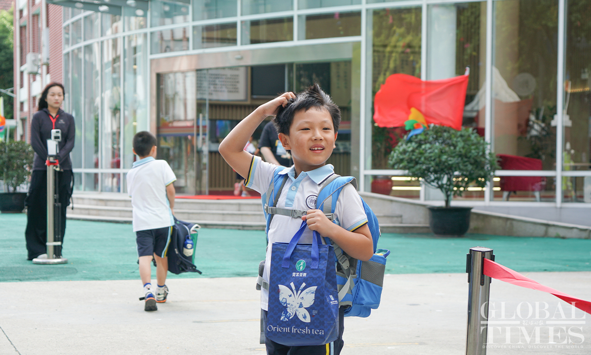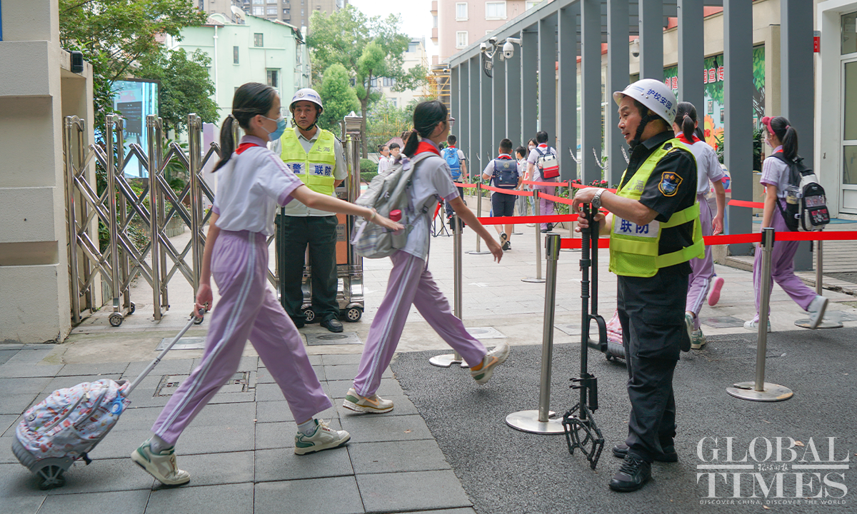 2.2 million primary and secondary school students and kindergarten children in Shanghai started the new autumn semester on September 1, Friday. The Global Times reporter went to several schools and saw some parents accompanying their children back to school. All schools have made thorough preparations to welcome students, placing emphasis on students' safety on and off campus. Photos: Lu Ting/GT