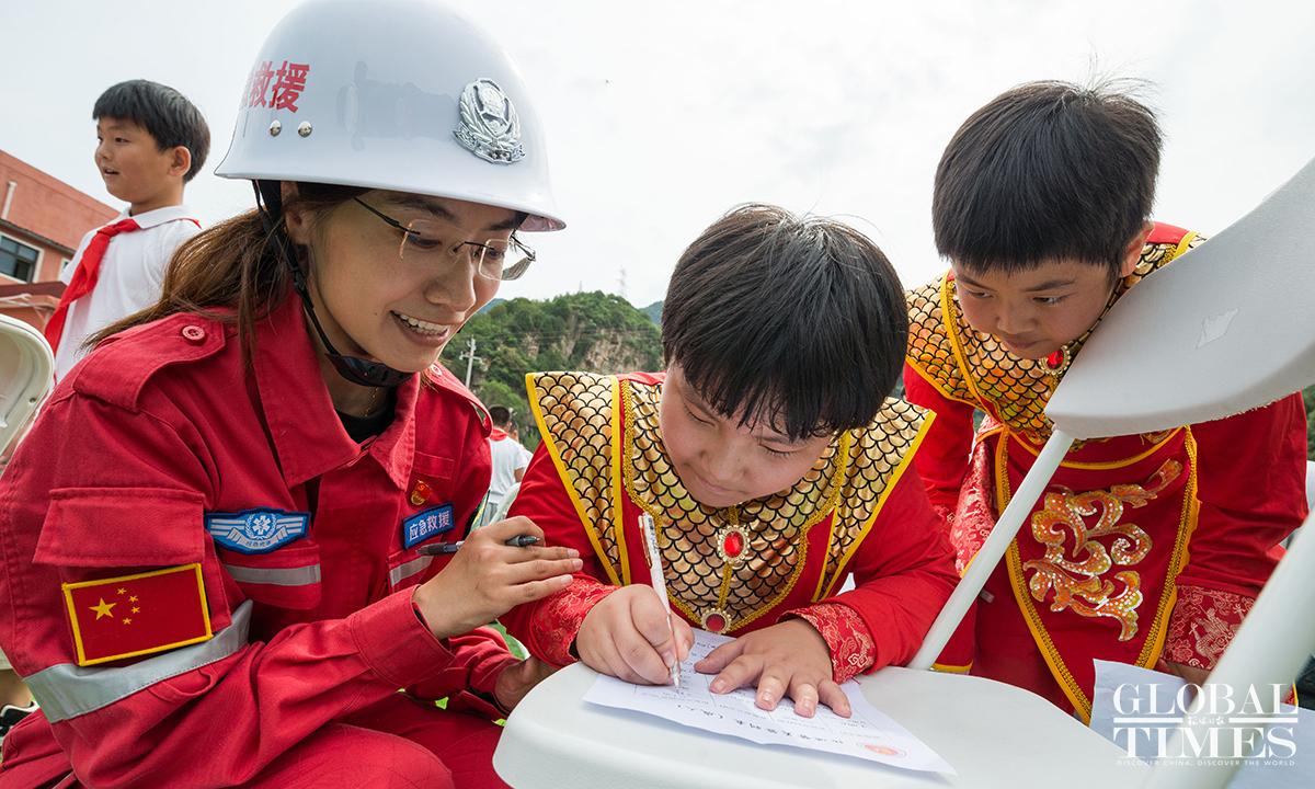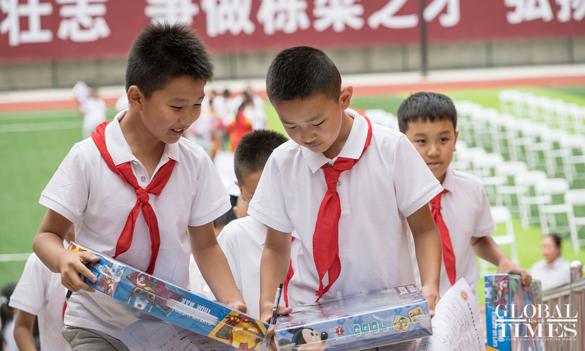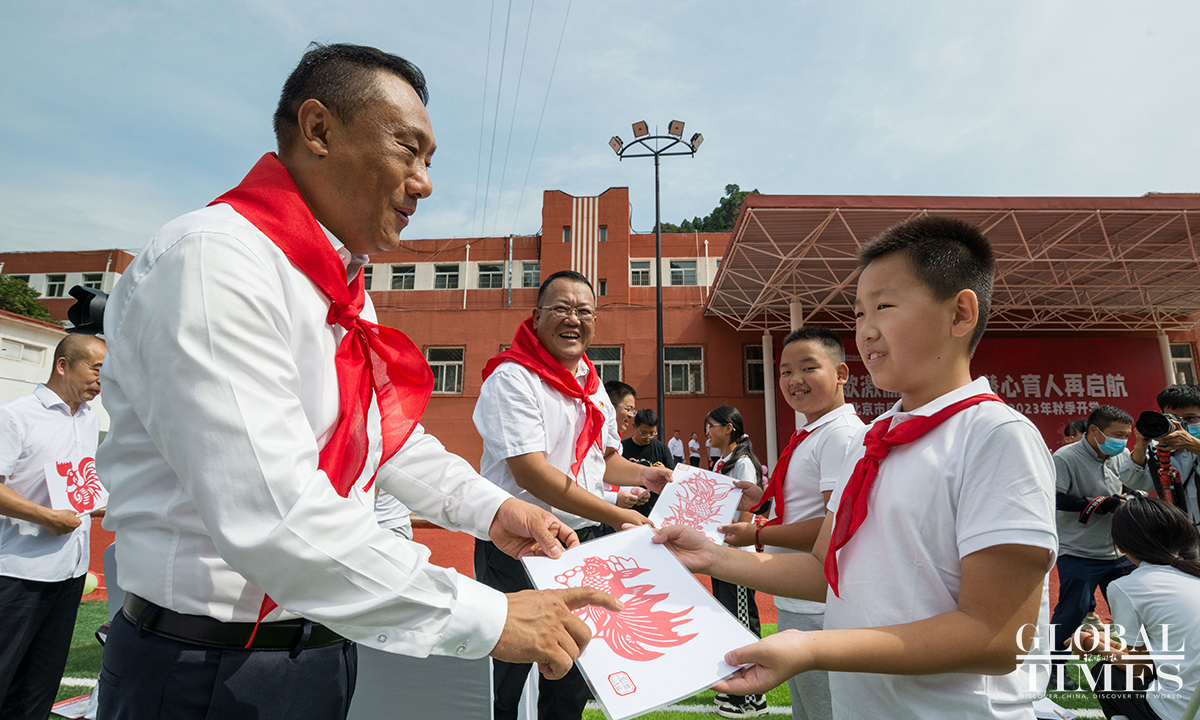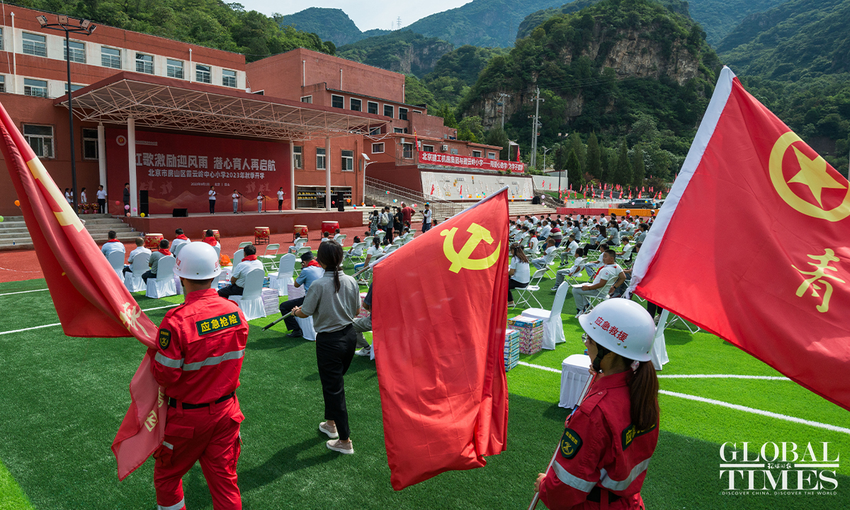 The school, located in suburban Beijing, has a total of 109 students. It was heavily affected by intense rainfall and floods, resulting in significant damage to its buildings and playground. Emergency teams completed post-disaster recovery work within 15 days, ensuring the school's timely reopening. (Photos: Chen Tao/GT)