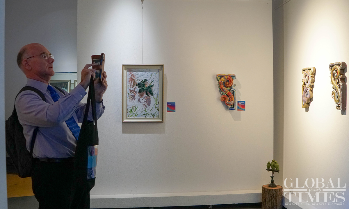 Representatives from several consulates general in Shanghai also attended the event. Under the theme of "Realm of color,” the exhibition will be open through October 15. Photos: Lu Ting/GT