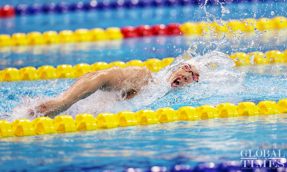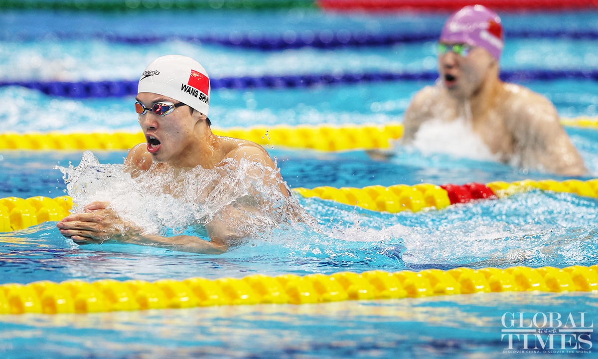Wang Shun, who once won the gold medal in the Tokyo Olympic Games, was crowned the men's 200m individual medley champion, setting a new Asian record with a time of 1:54.62 on Sunday. Photos: Cui Meng/GT