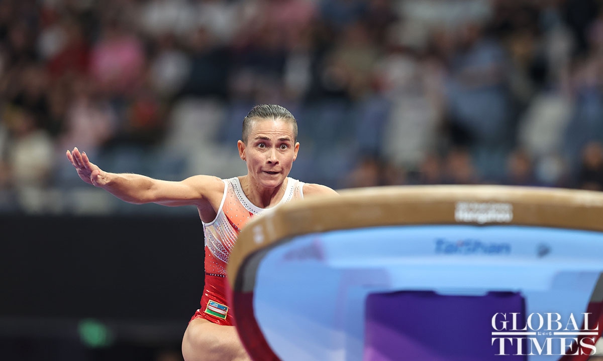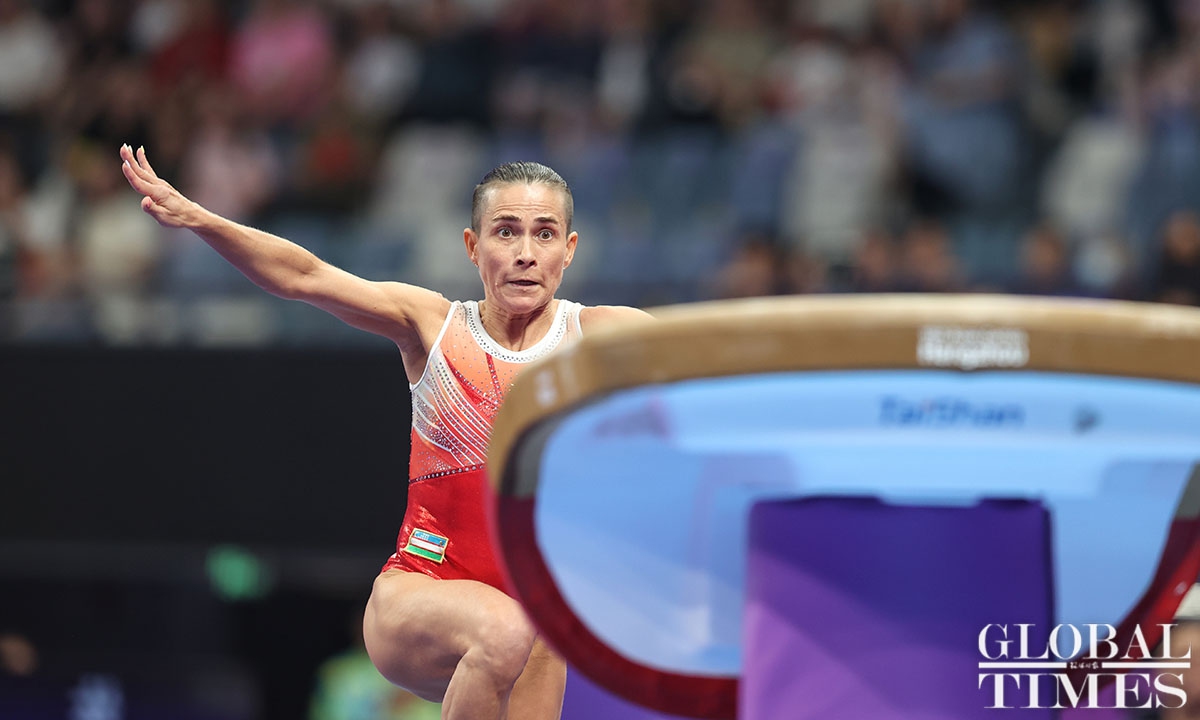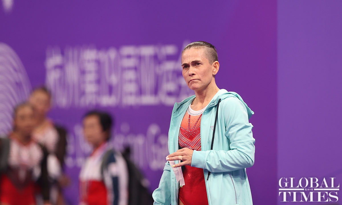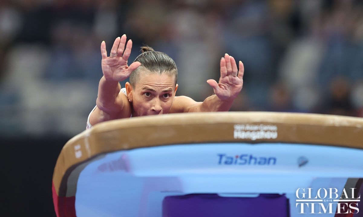 Uzbek athlete Oksana Chusovitina competes at Hangzhou Asian Games
