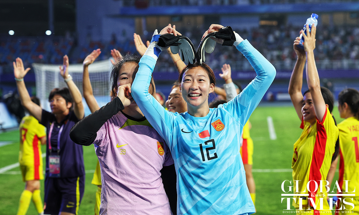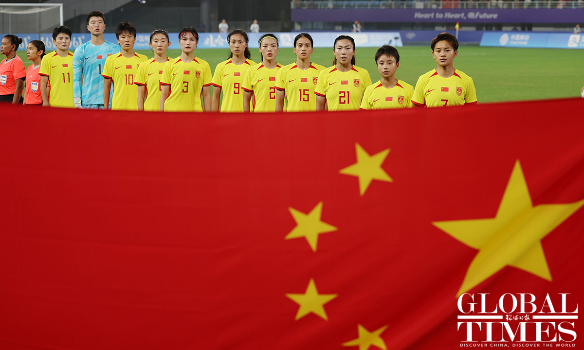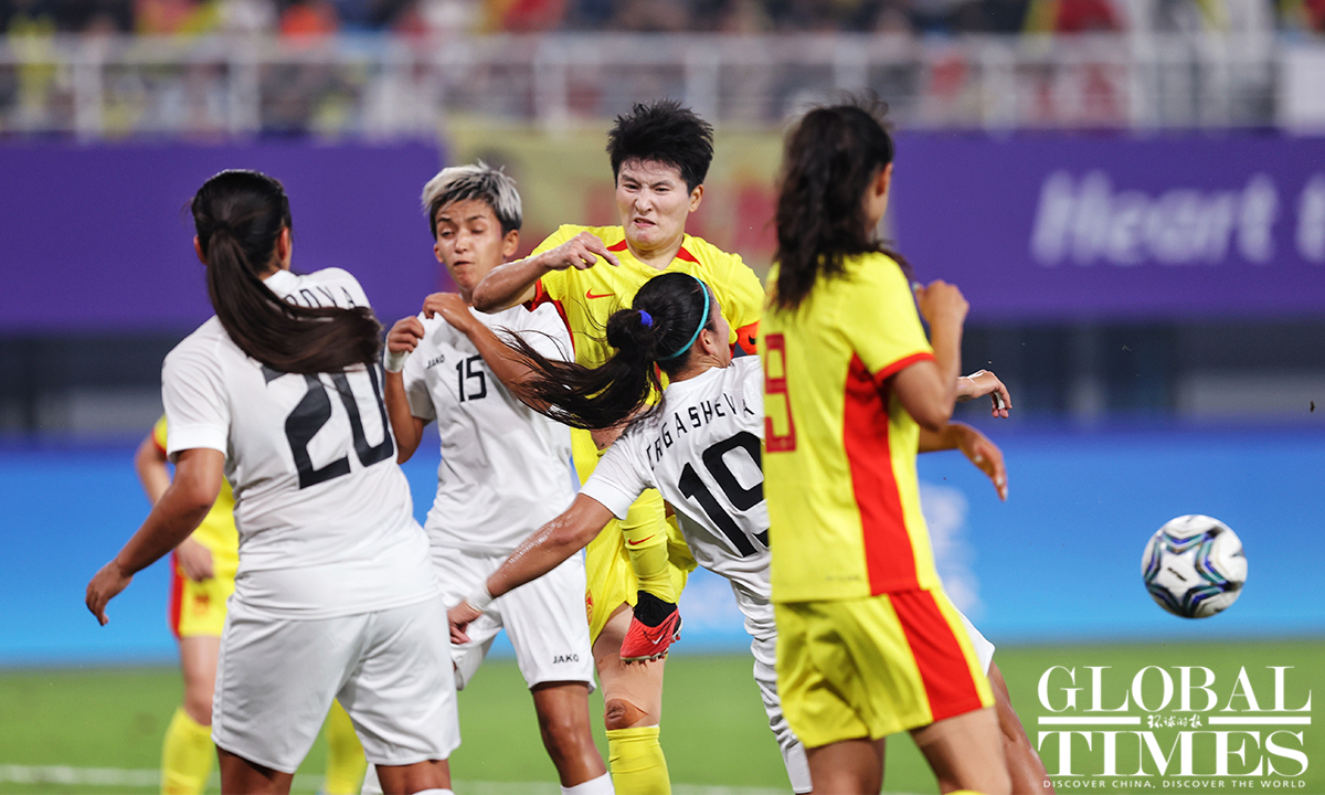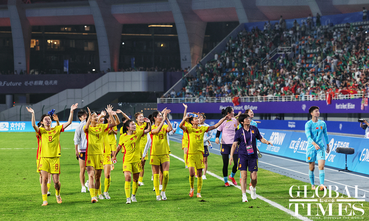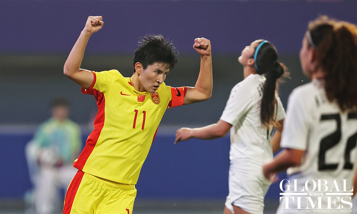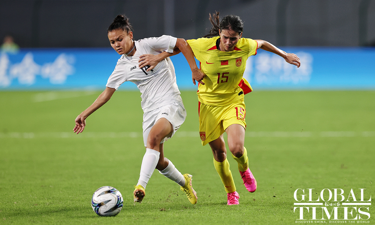 In the final round of Group A in the women's football competition at the Hangzhou Asian Games on September 28, the Chinese women's football team defeats Uzbekistan with a score of 6-0, securing the top spot in the group with two consecutive victories and smoothly advancing to the quarter-finals. They will face Thailand, the second-place team in Group B, in the quarter-finals. (Photos:Cui Meng/GT)