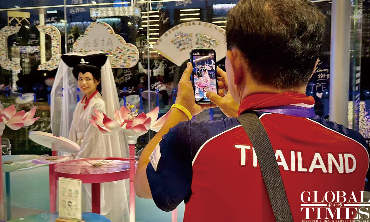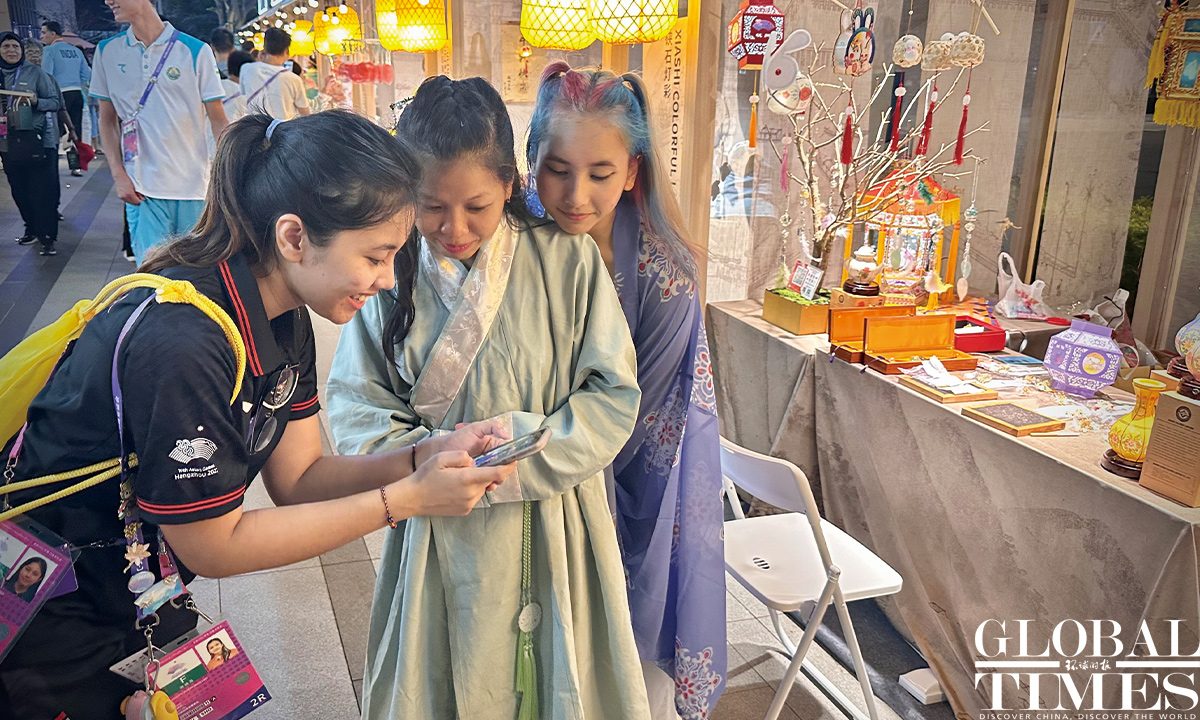 What kind of chemistry will there be when the 19th Asian Games meet the traditional Chinese Mid-Autumn Festival? On Friday, the athletes, technical officials and reporters from different countries and regions spent a unique and unforgettable Mid-Autumn Festival in the Asian Games Village in Hangzhou, East China’s Zhejiang Province. They enjoyed artistic performances, visited a Mid-Autumn fair, experienced making mooncakes, lanterns, and wore Hanfu. They were full of praise and amazed by traditional Chinese culture.