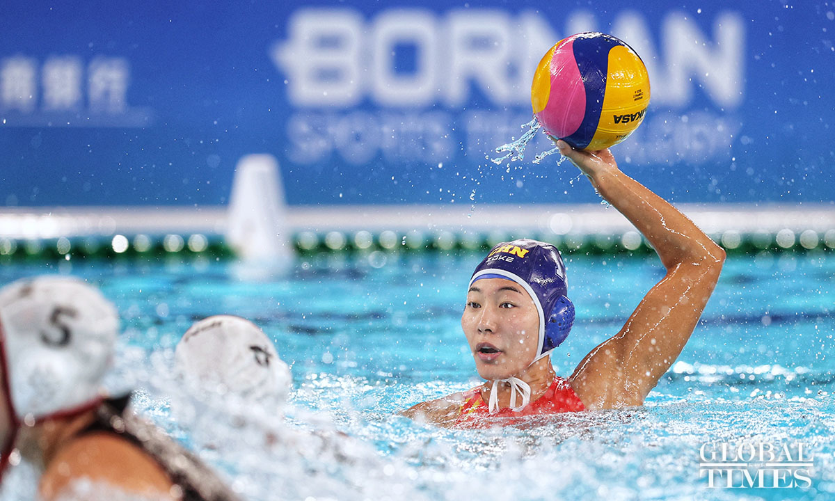 Team China bagged gold medal in women's water polo final at the Hangzhou Asian Games on October 1. By defeating the Japanese team with a score of 24-11, Team China has stood on the highest podium of the Asian Games in this sport for the fourth consecutive time. Photos: Cui Meng/GT