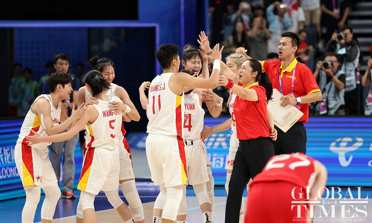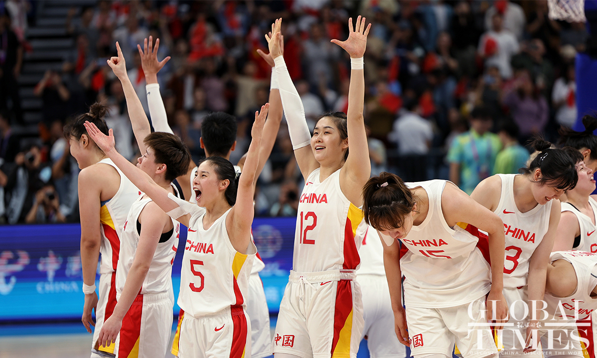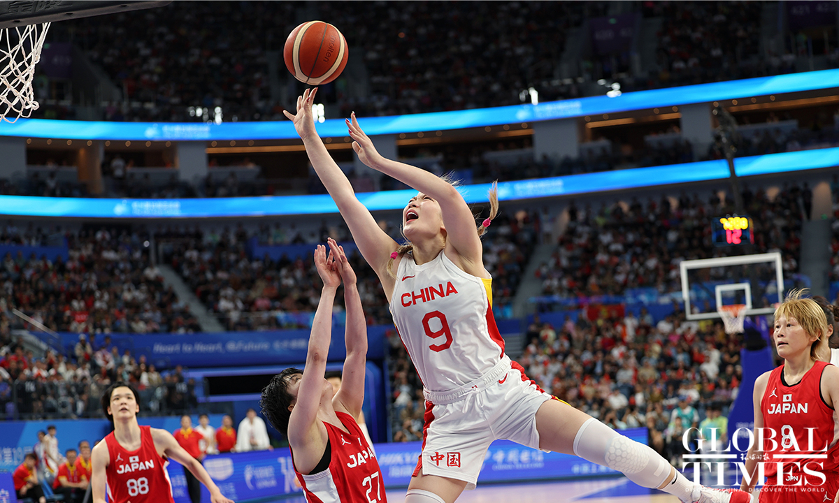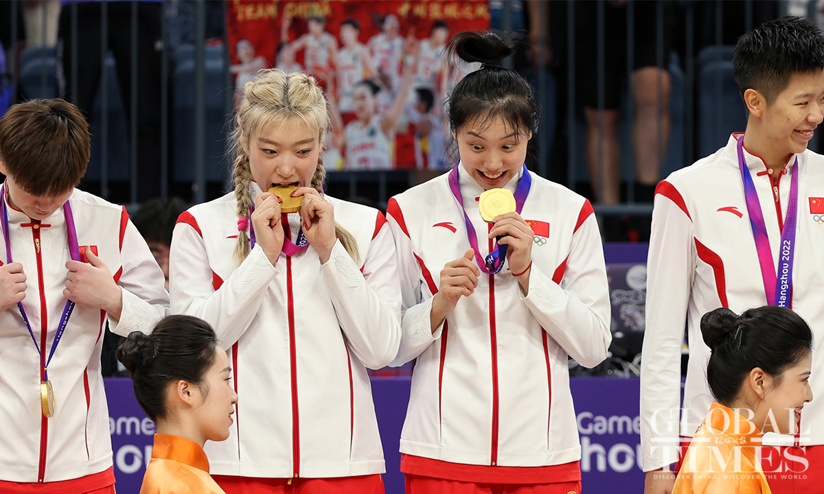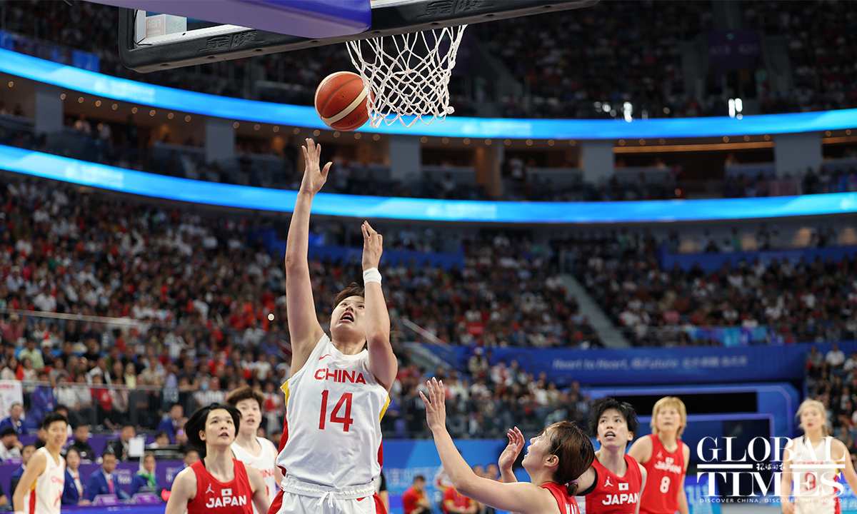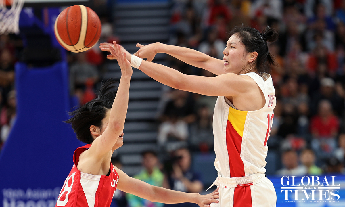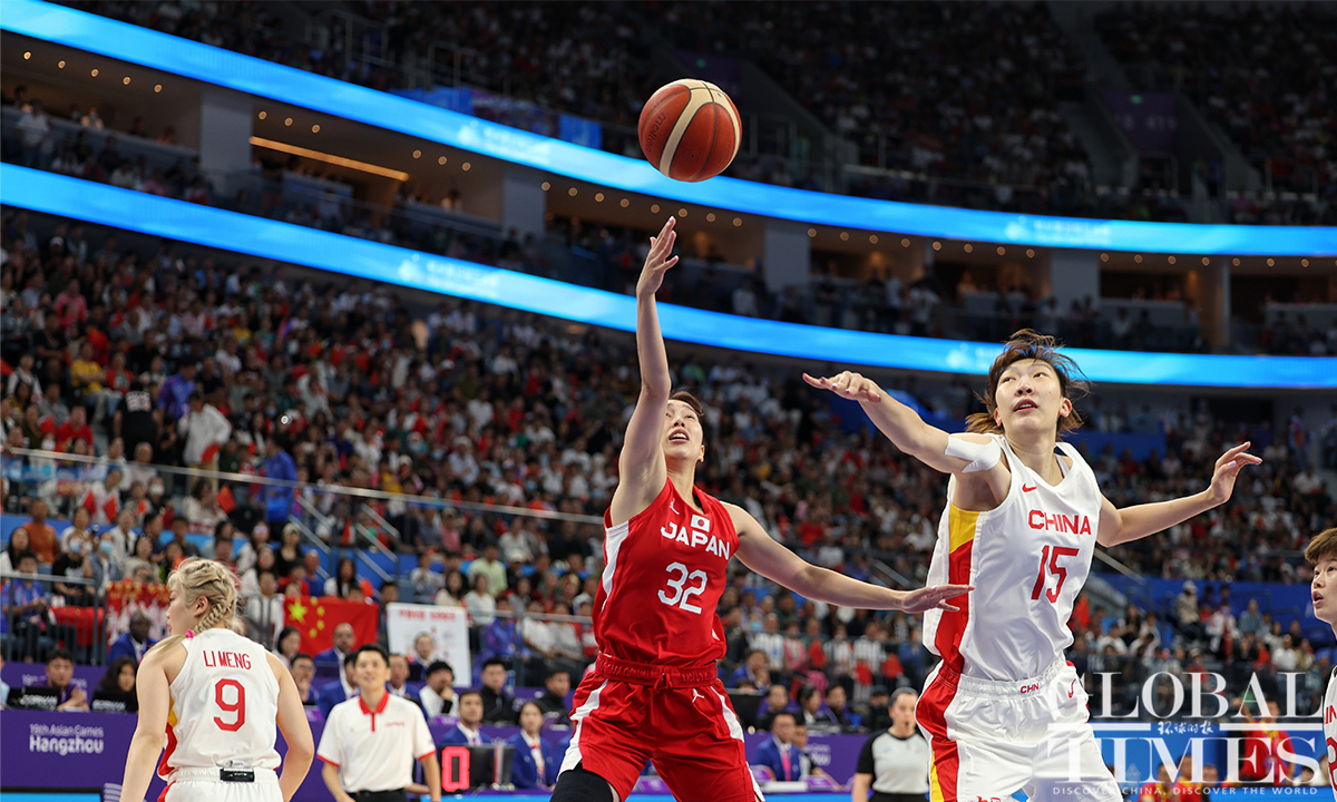 China successfully defended its title in women's basketball at the Asian Games on Thursday, defeating arch-rival Japan with a score of 74-72. Being ranked second in the world, China dominated the game from the start, taking a commanding 26-16 lead in the first quarter. However, Japan managed to catch up and tie the game at 72-all. In the final seconds, Wang Siyu made a crucial layup, securing China's seventh gold medal at the prestigious multi-sports event. This victory adds to China's recent success in women's basketball, including a runner-up position at the FIBA Women's World Cup last year and winning the FIBA Women's Asia Cup in July. (Photos:Cui Meng/GT)