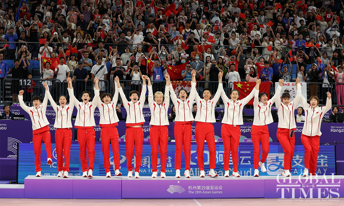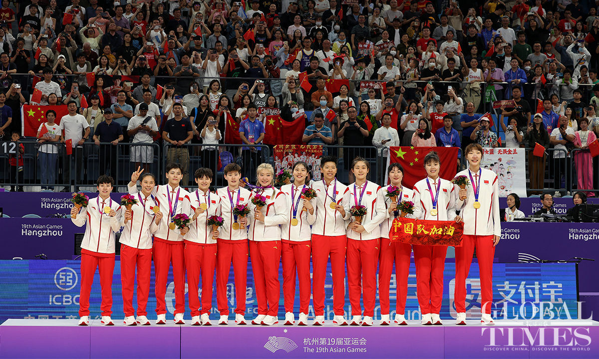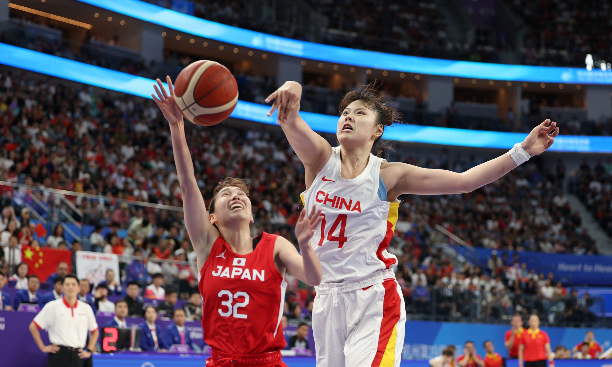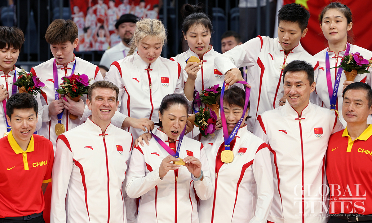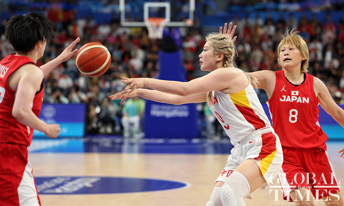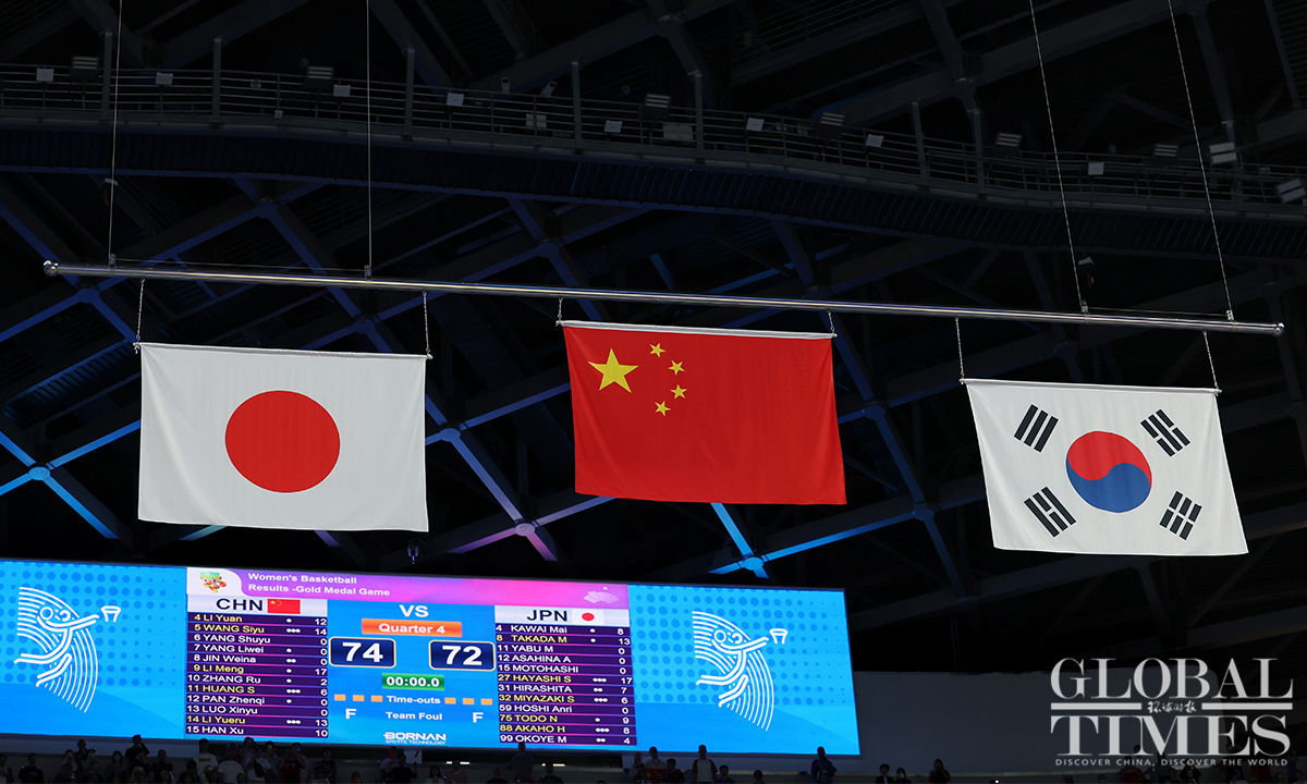 China successfully defended its title in women's basketball at the Asian Games on Thursday, defeating arch-rival Japan with a score of 74-72. Being ranked second in the world, China dominated the game from the start, taking a commanding 26-16 lead in the first quarter. However, Japan managed to catch up and tie the game at 72-all. In the final seconds, Wang Siyu made a crucial layup, securing China's seventh gold medal at the prestigious multi-sports event. This victory adds to China's recent success in women's basketball, including a runner-up position at the FIBA Women's World Cup last year and winning the FIBA Women's Asia Cup in July. (Photos:Cui Meng/GT)