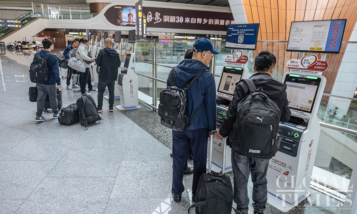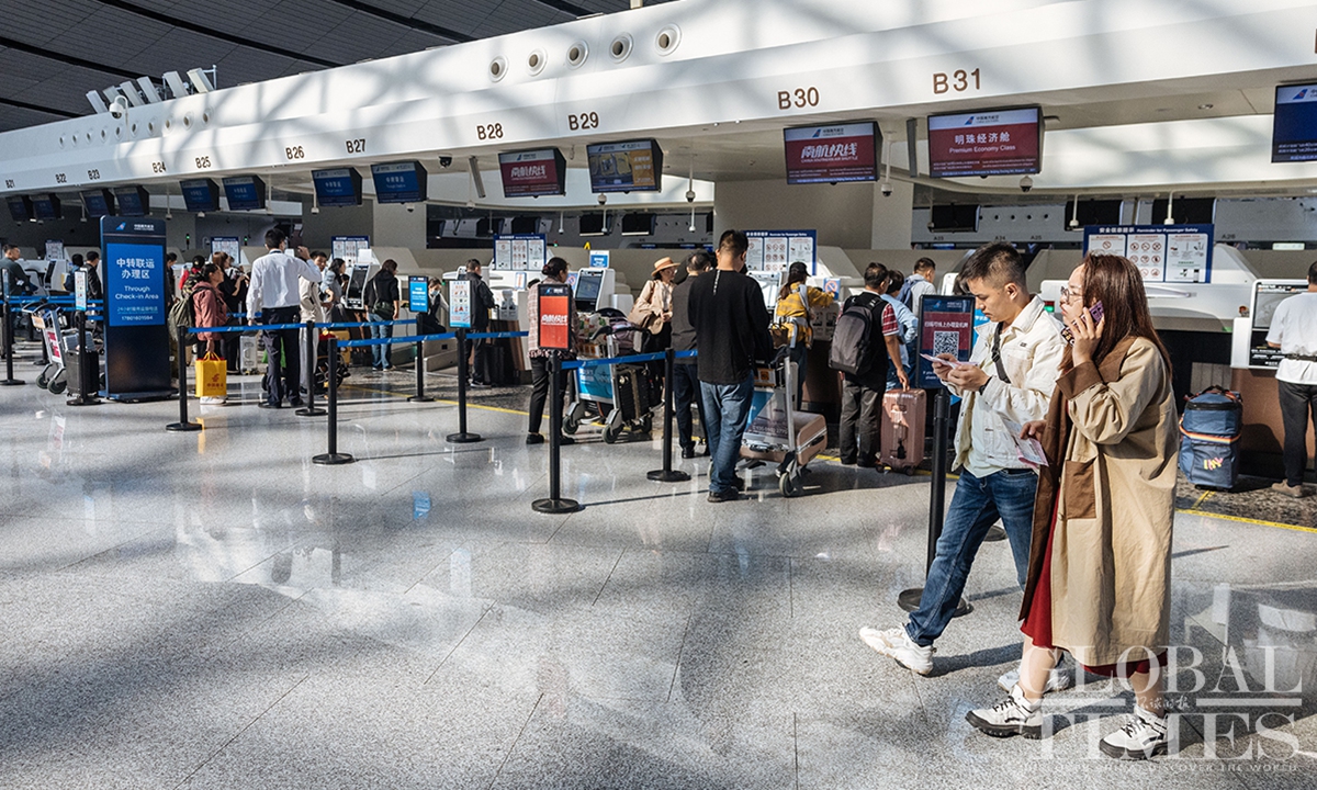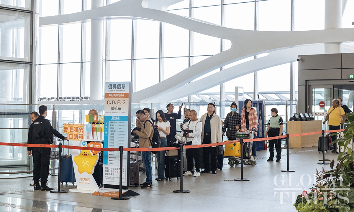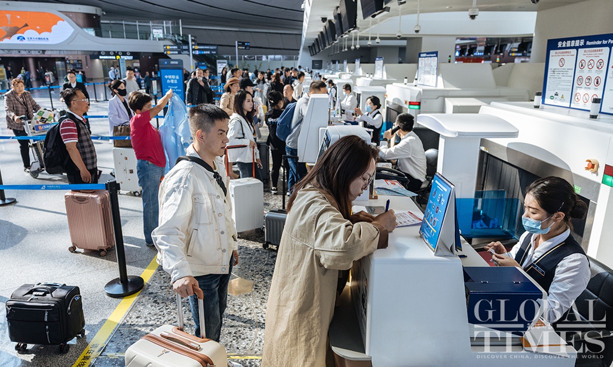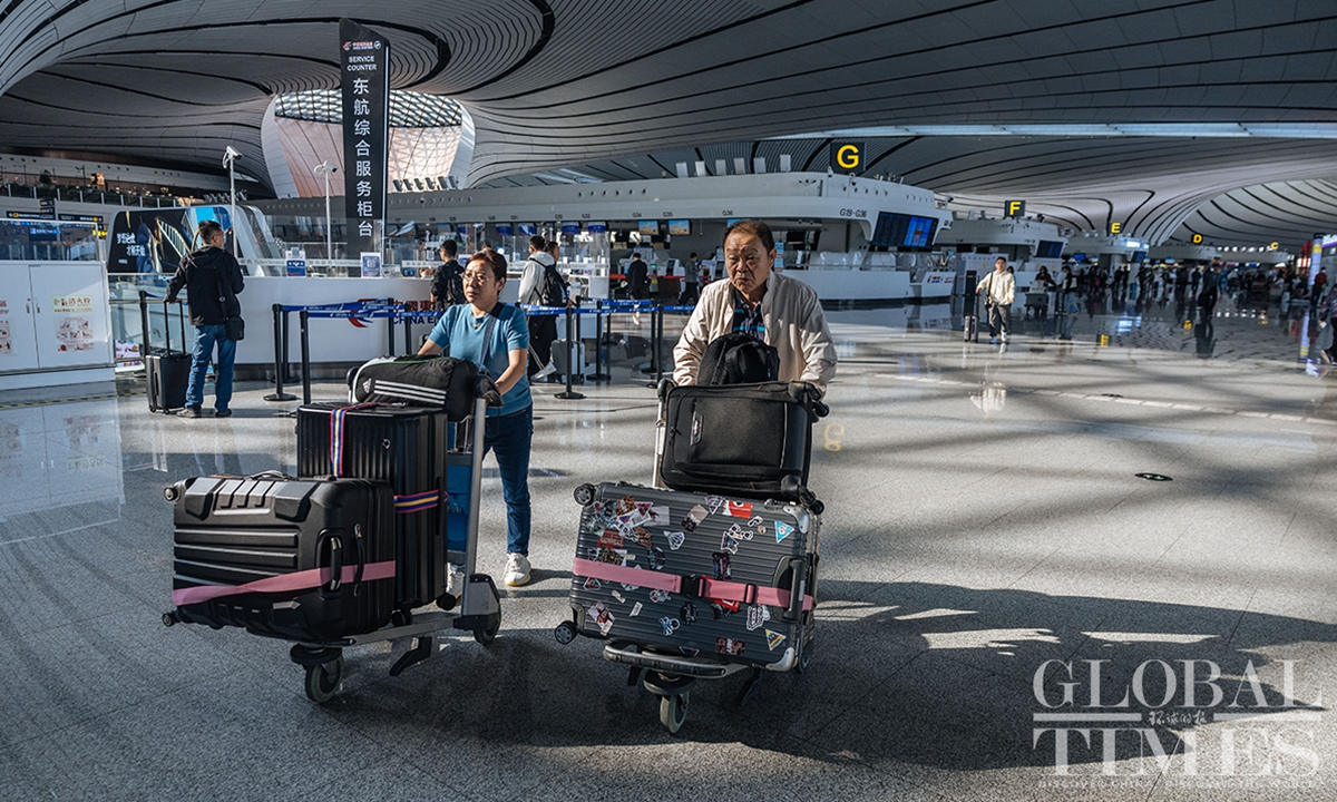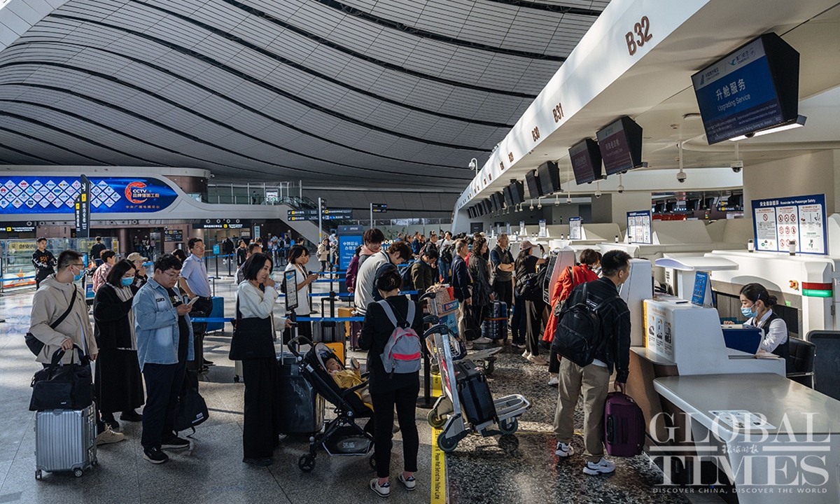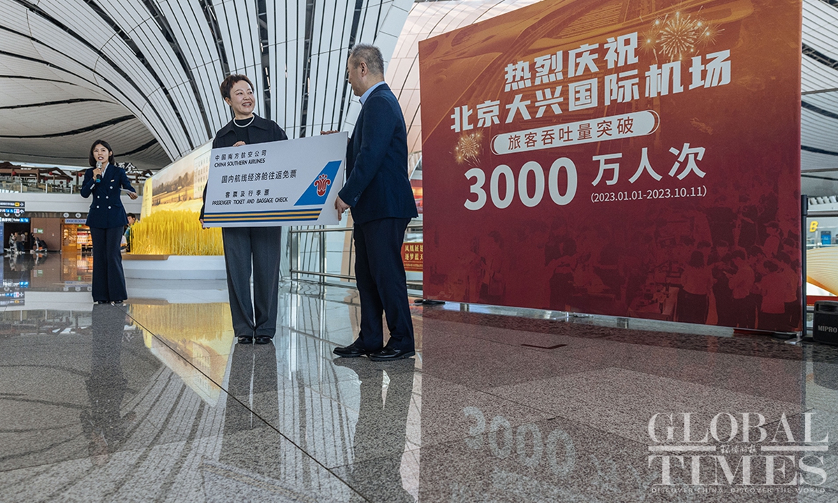 As of October 11, Beijing Daxing International Airport has surpassed 30 million annual passenger throughput, marking a milestone. Since its inauguration, the airport has handled over 84.55 million passenger trips and 570,000 tons of cargo, including 1.4 million international and overseas trips. With 54 airline companies operating 202 routes, and access to 185 destinations, this hub connects major aviation markets in Europe, Asia, and the Middle East.(Photos: Li Hao/GT)