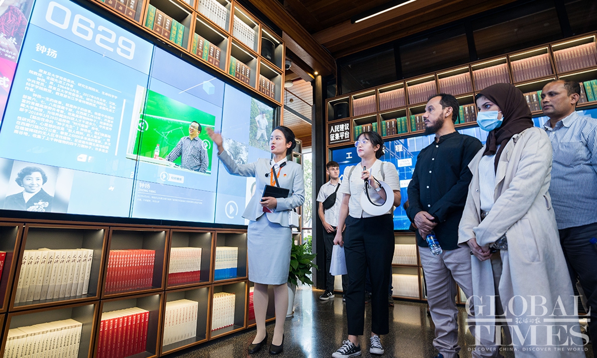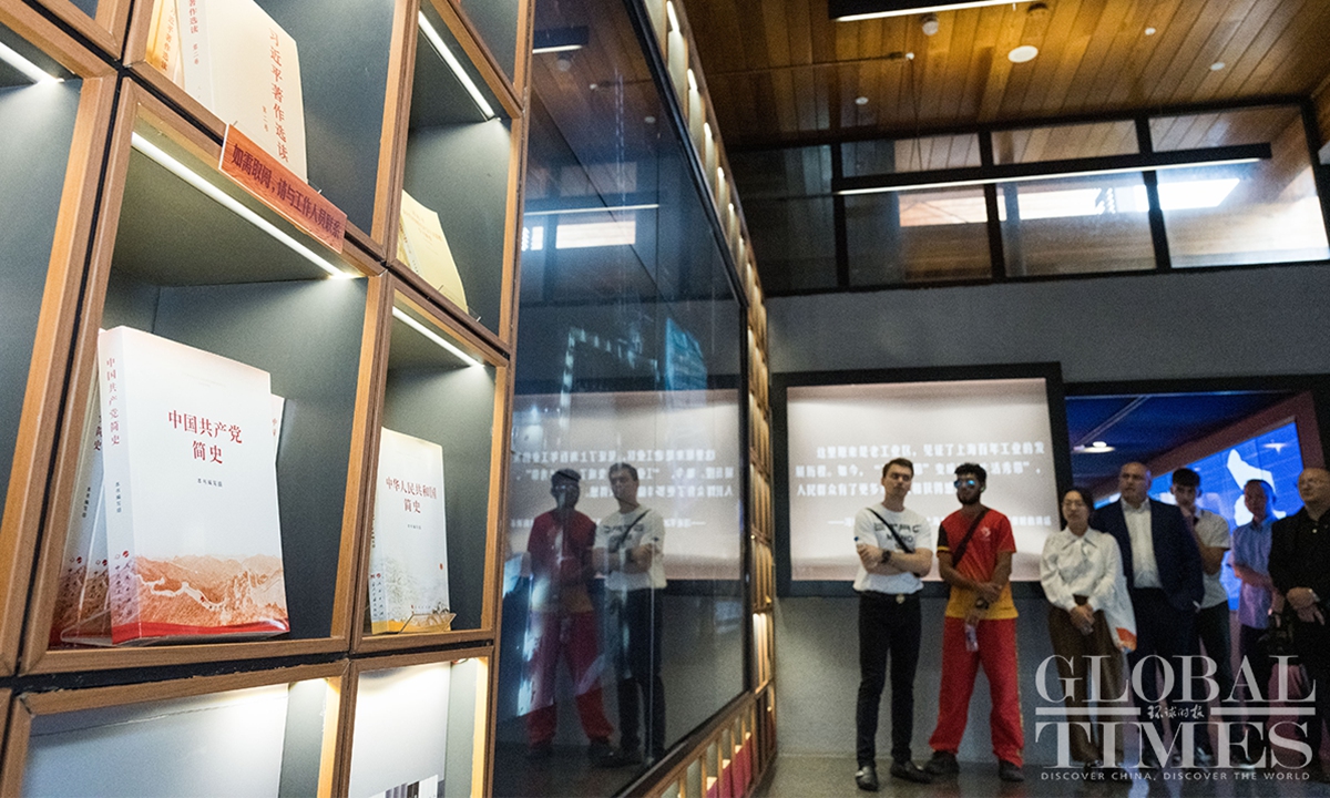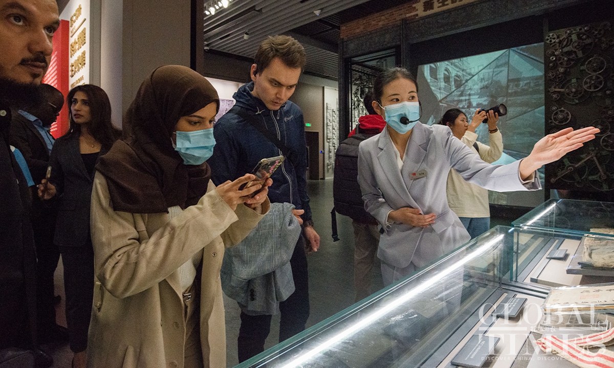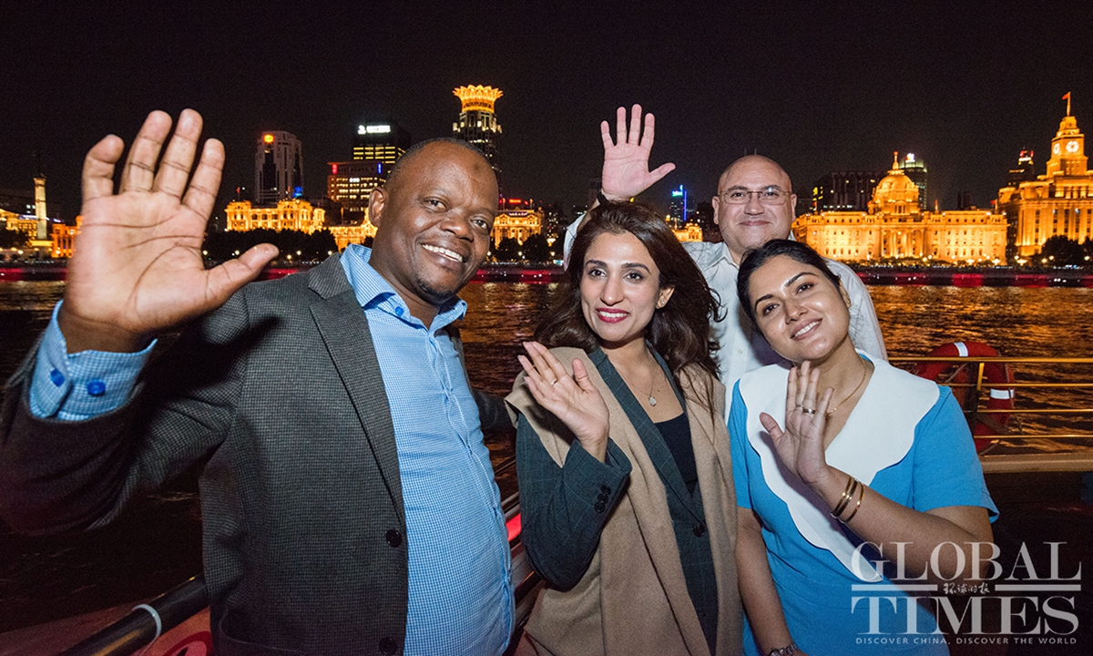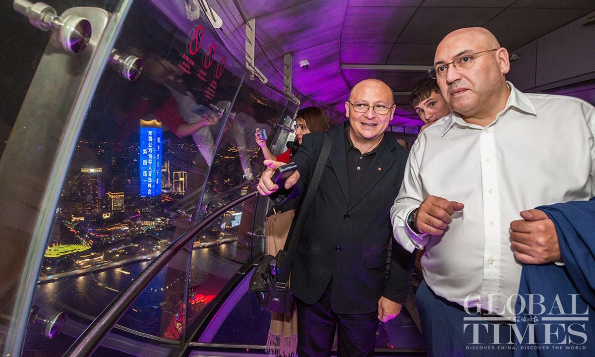 From October 10-11, a delegation of international civil society representatives invited by the China Foundation for Peace and Development visited Shanghai after their trip in Yan'an. They had exchanges with the locals in Gubei Civic Center and learned about the operation of grassroots democracy in China, and they also visited the Memorial Hall of the 1st CPC National Congress, as well as a museum of "People's City" in Yangpu district. During the night on October 11,the delegates visited the Oriental Pearl Tower and had a cruise in Huangpu River. (Photos: Chen Tao/GT)