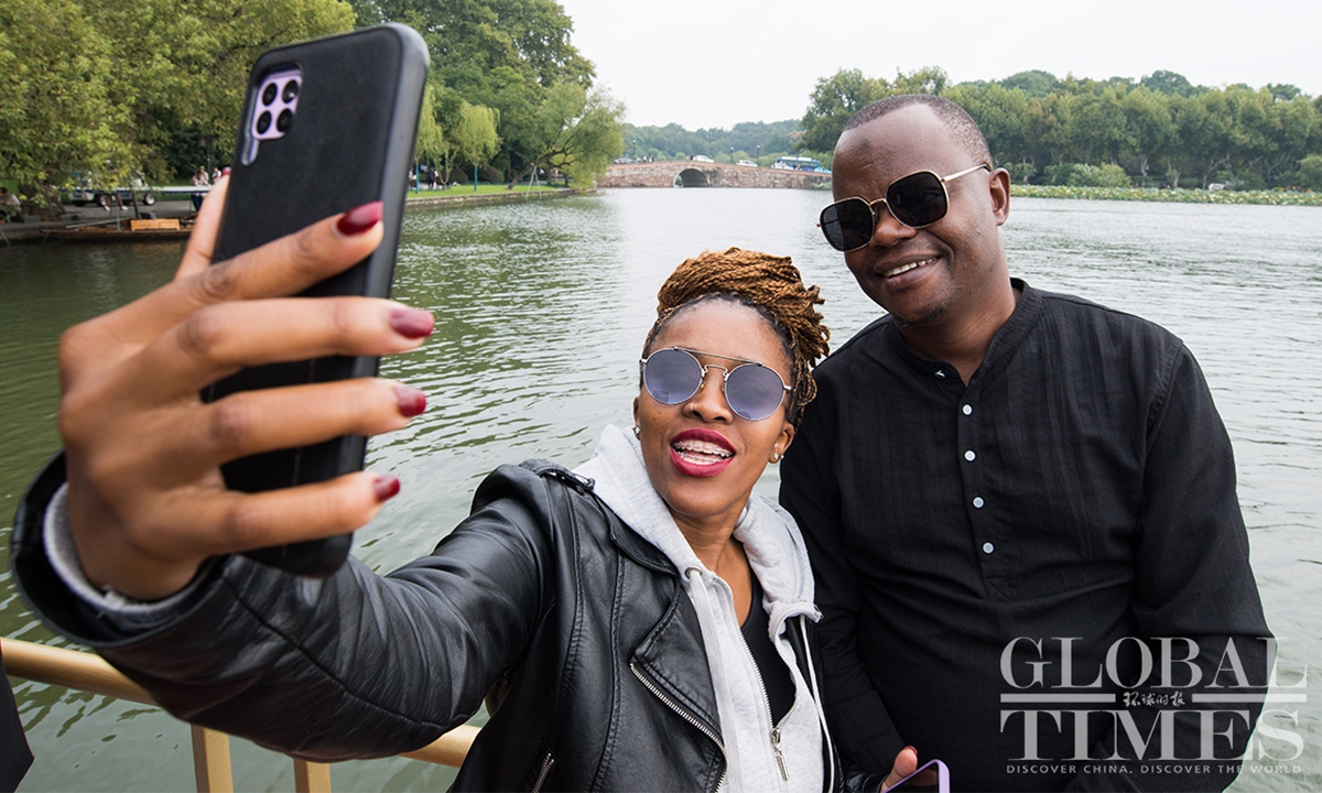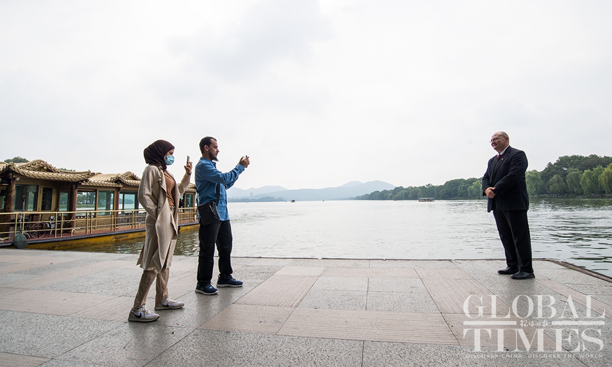 From October 12-13, a delegation of international civil society representatives invited by the China Foundation for Peace and Development visited East China's Zhejiang Province after finishing their trip in Shanghai. On the first day, they visited Anji County in Huzhou, where they saw vivid examples of how green development has changed rural China. They were also introduced to the booming local bamboo industry and had a closer look at giant pandas. On October 13, the delegation enjoyed the scenic West Lake in Hangzhou, the capital city of Zhejiang, on a cruise.(Photos: Chen Tao/ GT)