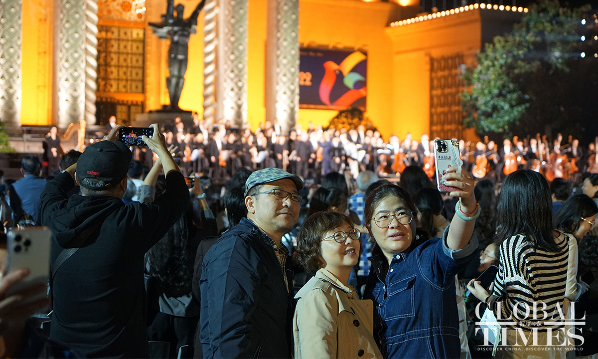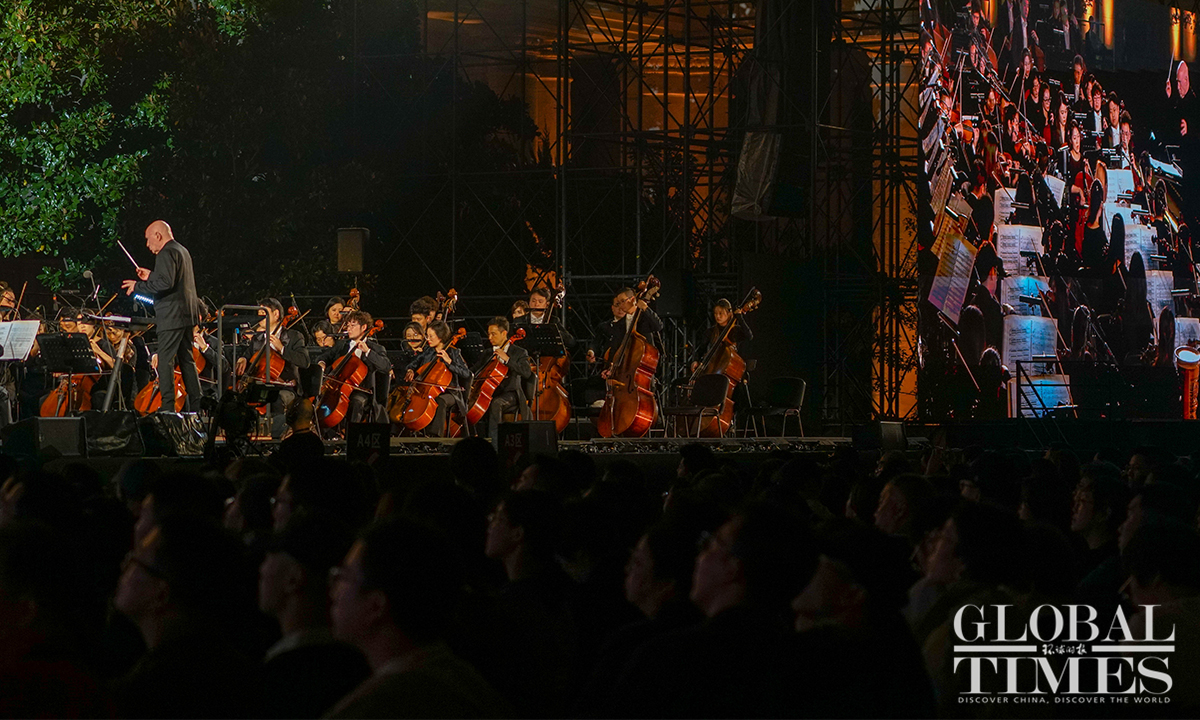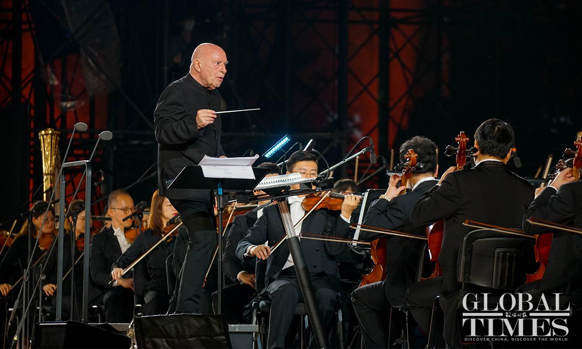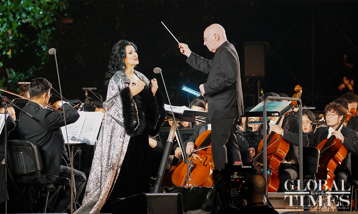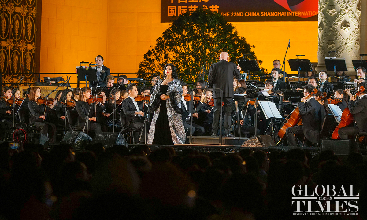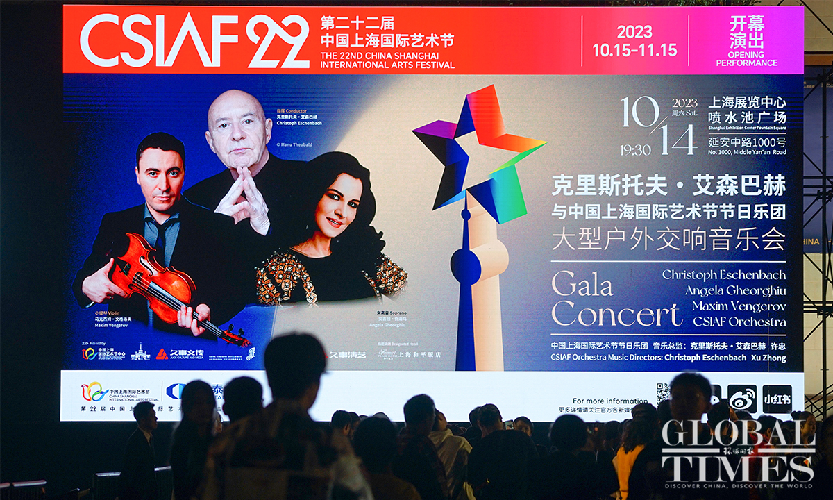 The Gala Concert by Christoph Eschenbach and CSIAF Orchestra was held on Saturday evening at the Shanghai Exhibition Center Fountain Square, as the opening performance of the 22nd China Shanghai International Arts Festival (CSIAF). The CSIAF Orchestra is composed of principal players from several top Chinese domestic symphony orchestras, as well as festival organizers. As one of the world's most prominent conductors, Eschenbach directed the concert jointly with renowned Chinese conductor Xu Zhong. Maxim Vengerov, one of the most acclaimed violin soloists in the global classical music community, and Angela Gheorghiu, one of the most talented sopranos in the opera world, also presented their repertoire during the concert. (Photos: Lu Ting/GT)