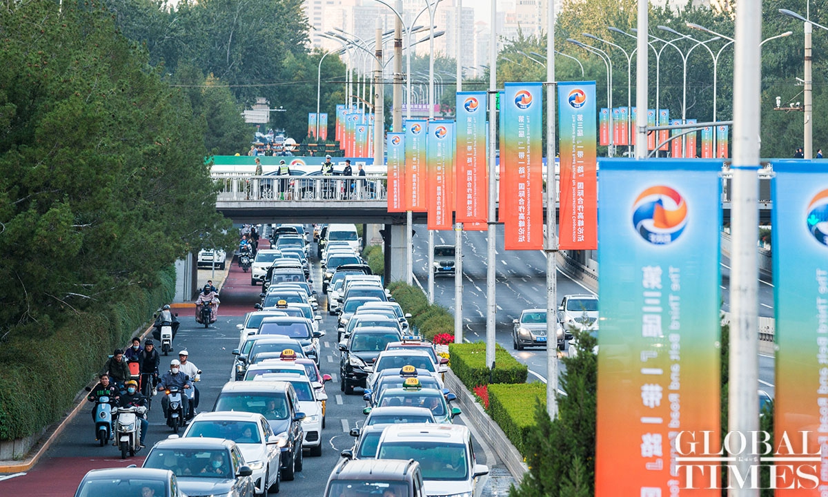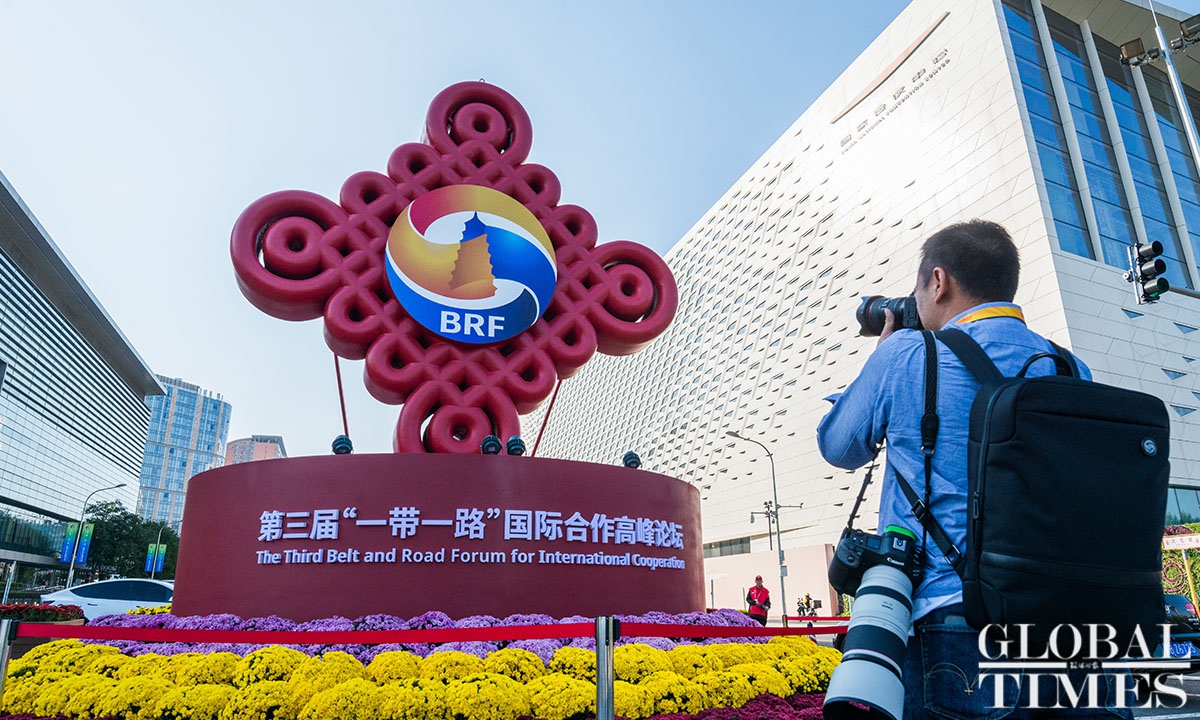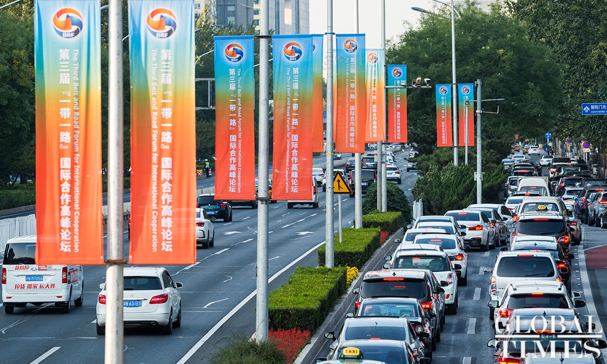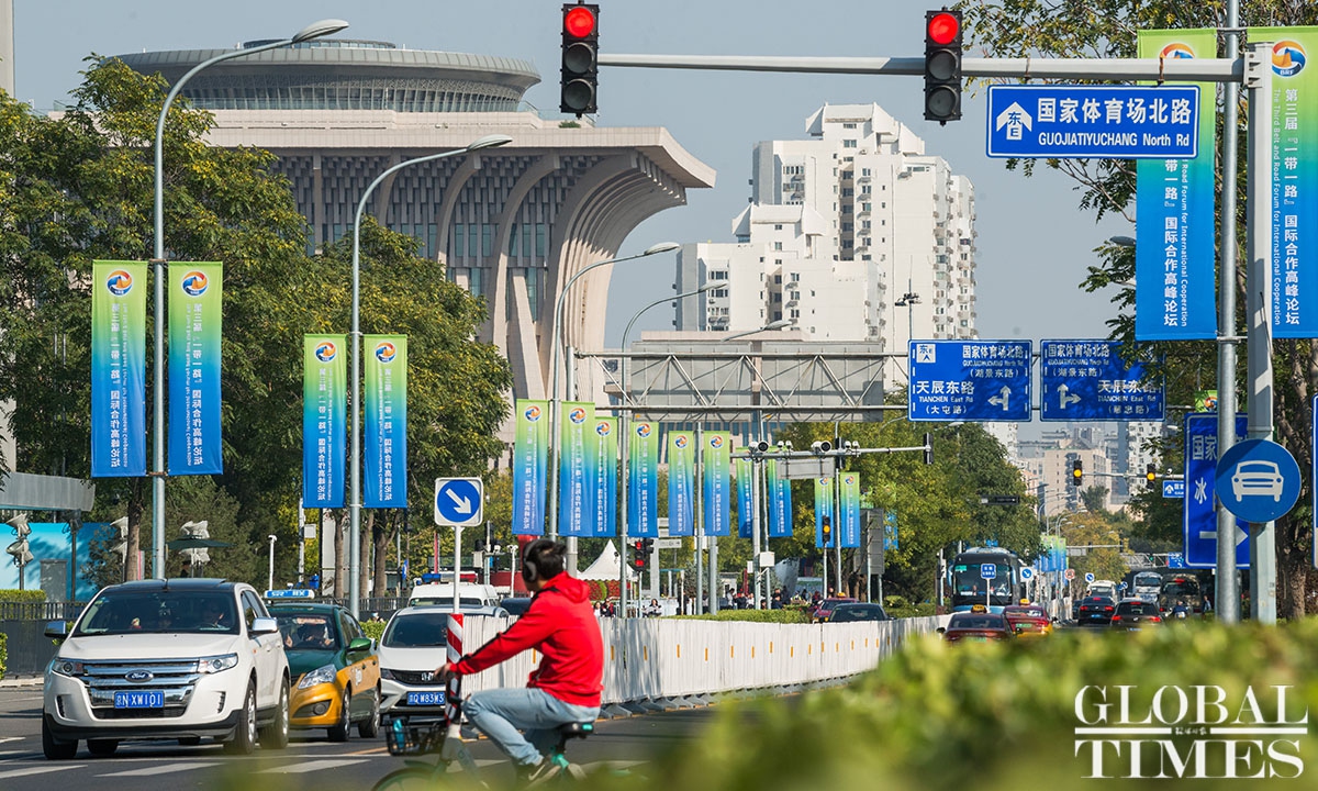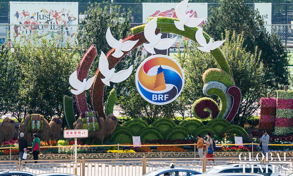 The third Belt and Road Forum for International Cooperation (BRF) will be held on October 17 and 18. Landscape decorations such as sculptures, flower beds, flags and promotional slogans around the main roads, transportation hubs, and iconic buildings in the host city, Beijing, have been completed. The entire city is filled with a warm atmosphere in anticipation of the opening of the forum.