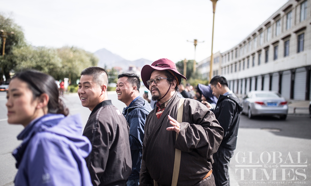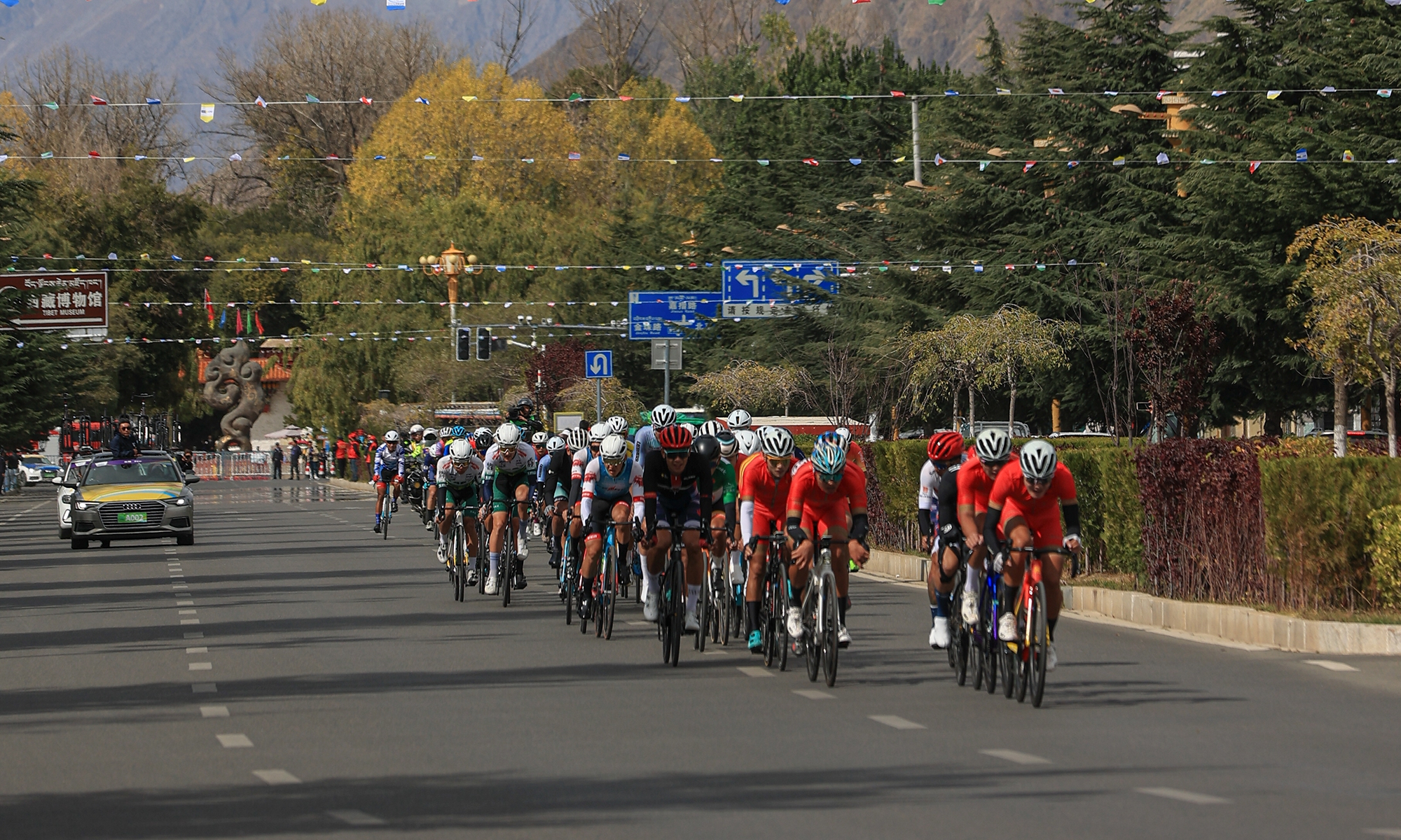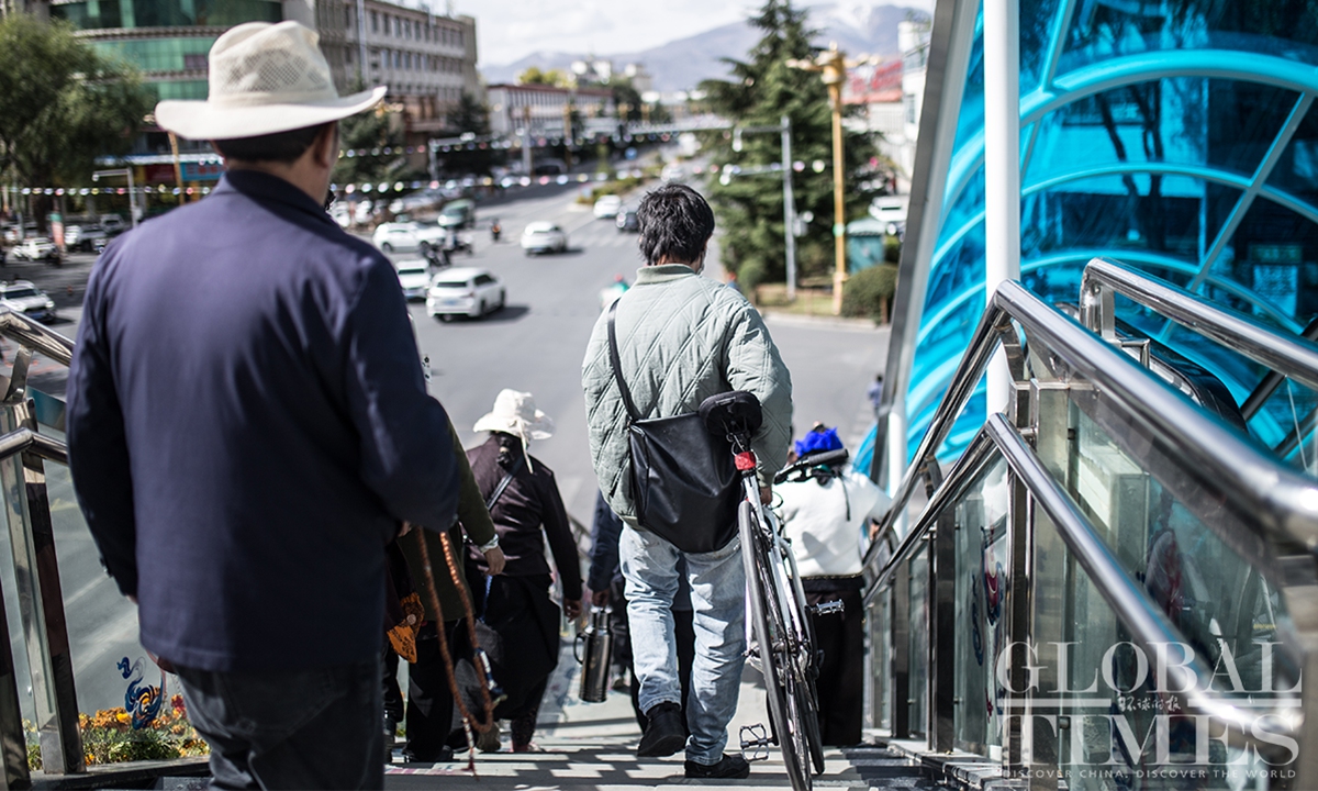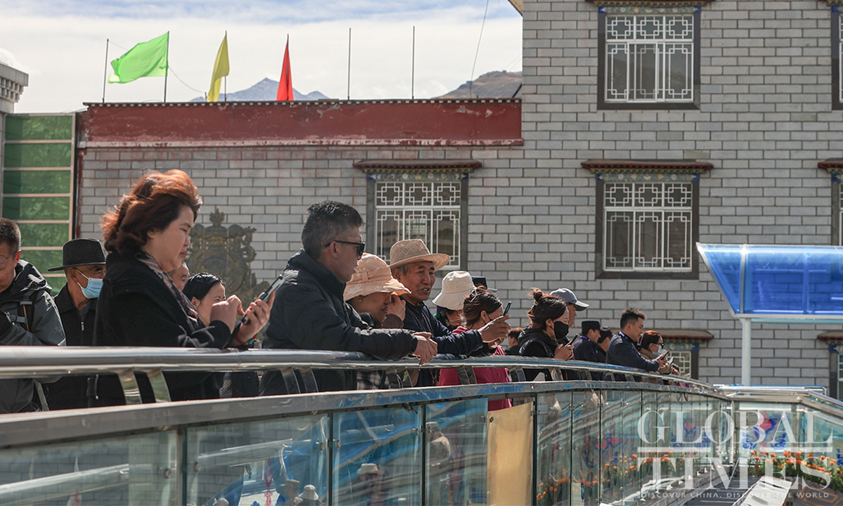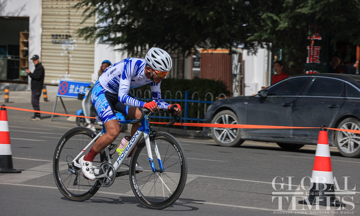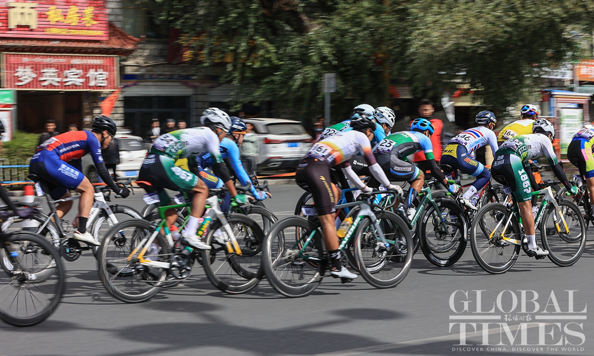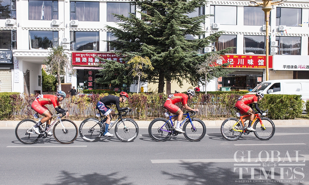 People watch the Fourth Trans-Himalaya International Extreme Cycling Race by the streets of Lhasa, capital city of Southwest China’s Xizang (Tibet) Autonomous Region on October 17, 2023. The competition took place from October 14-17 in Nyingchi, Xigaze, and Lhasa, with a total course distance of approximately 312.57 kilometers and altitude ranging from 2,988 meters to 4,034 meters. More than 100 athletes from 17 teams from both domestic and international locations joined the race.(Photos: Shan Jie and Yang Ruoyu/GT)