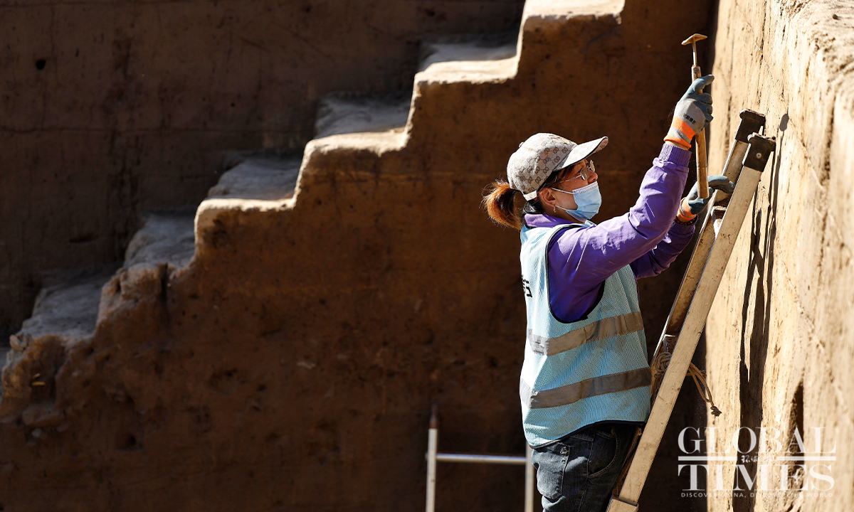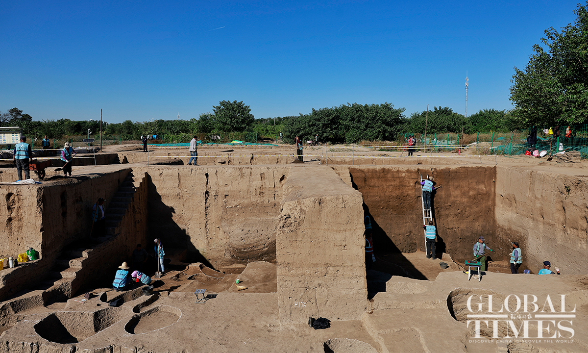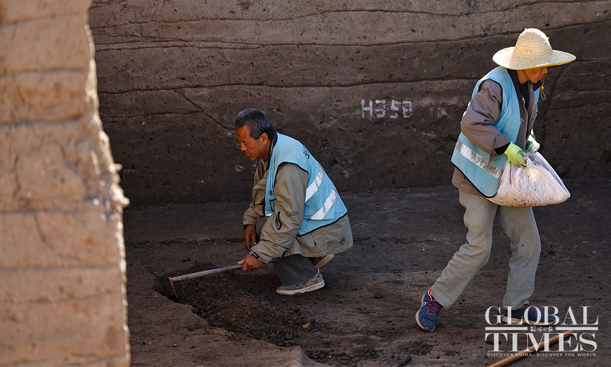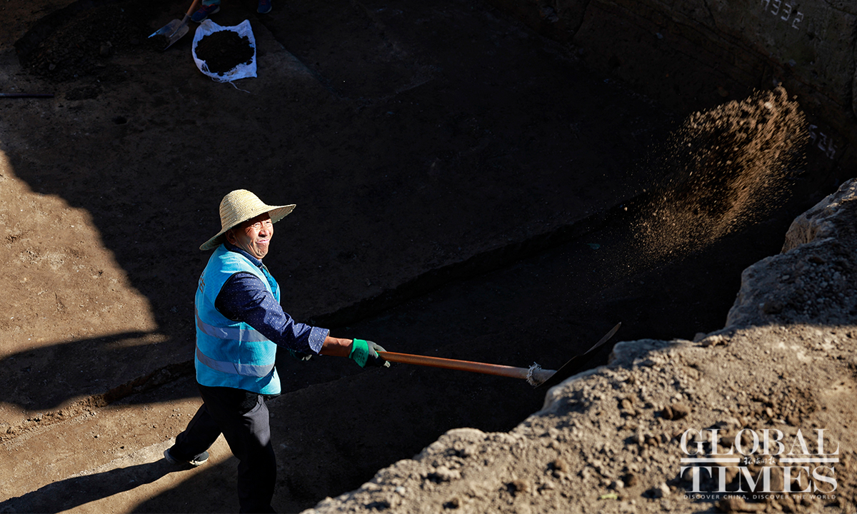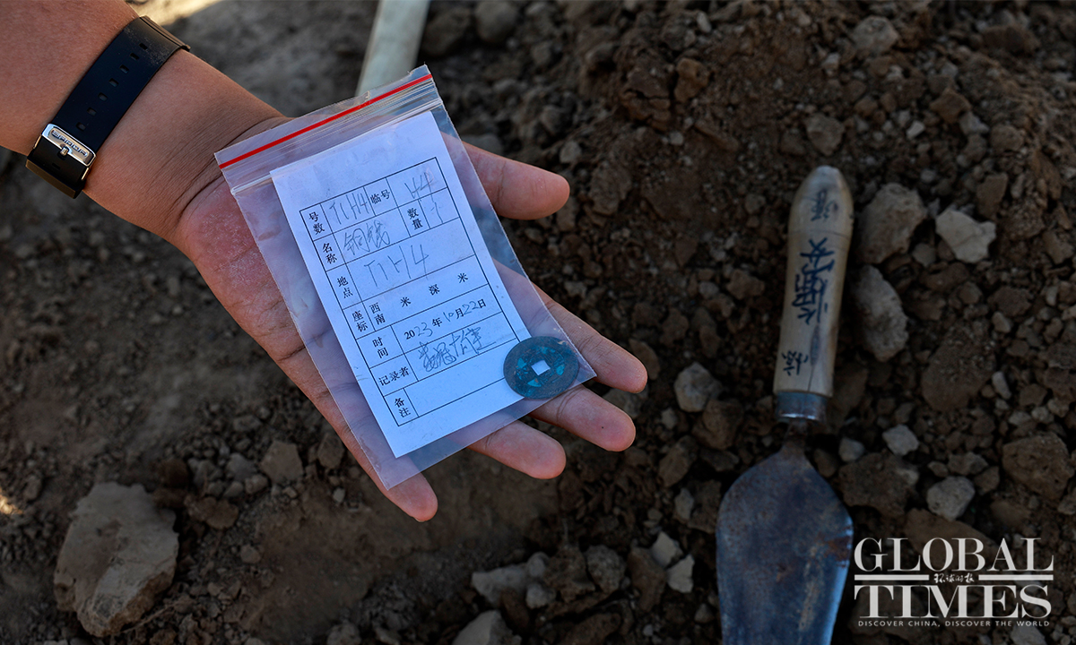 A family archaeology study tour is held at the ruins of ancient city of Luxian in Tongzhou District, Beijing, on October 21, 2023. The excavation of the ancient city began in 2016. Families can visit the excavation site and experience archaeological work under the guidance of professional staff. A bronze coin rubbing activity is also held, allowing visitors to "bring home" artifacts through rubbings. (Photos: Li Hao/GT)