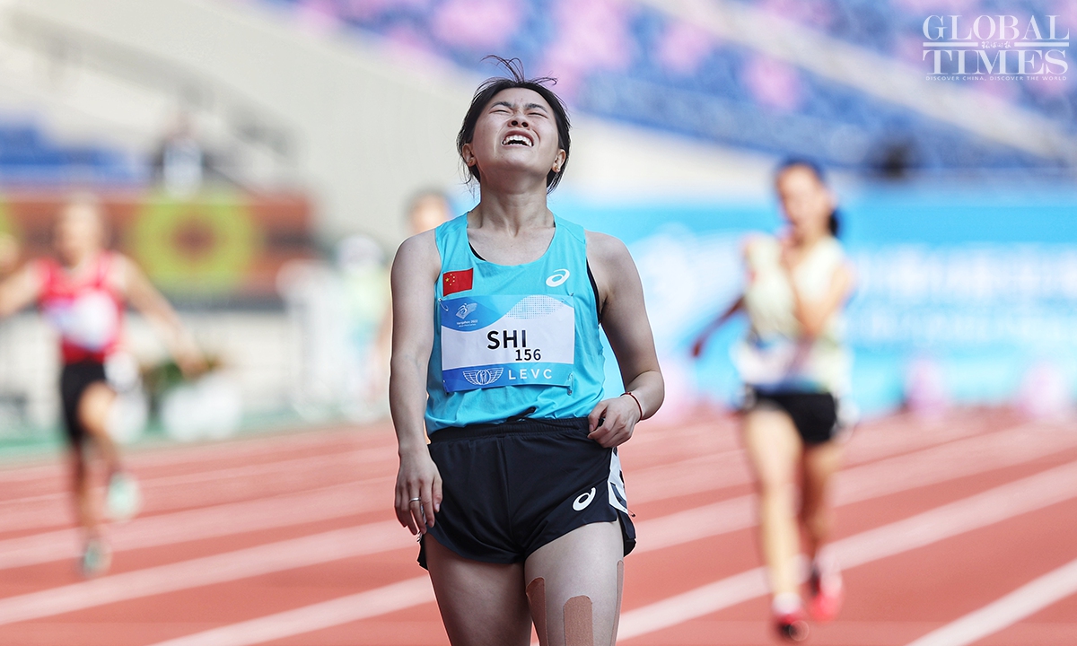 At the 4th Asian Para Games in Hangzhou, Chinese athlete Shi Yiting won the gold medal in the women's 200-meter T36 final with a time of 28.17 seconds, breaking her own world record of 28.21 seconds. Photos: Cui Meng/GT