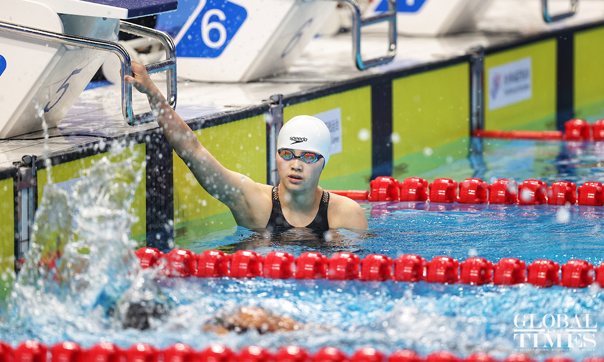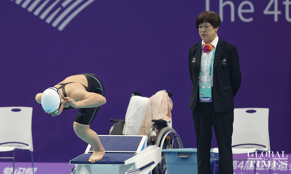 Chinese swimmers participate in the 4th Hangzhou Asian Para Games on October 27, 2023. Jiang Shengnan breaks the Asian record with a time of 30.21 seconds, winning gold in the women’s 50m freestyle S8 final. Xu Jialing and Chen Yi clinch gold in the women’s 400m freestyle S9 final and the women’s 100m butterfly S10 final, respectively. Jiang Yuyan sets a new Asian Para Games record in the women’s 50m freestyle S6 final with a time of 33.44 seconds, securing gold in the games. (Photos: Cui Meng/GT)