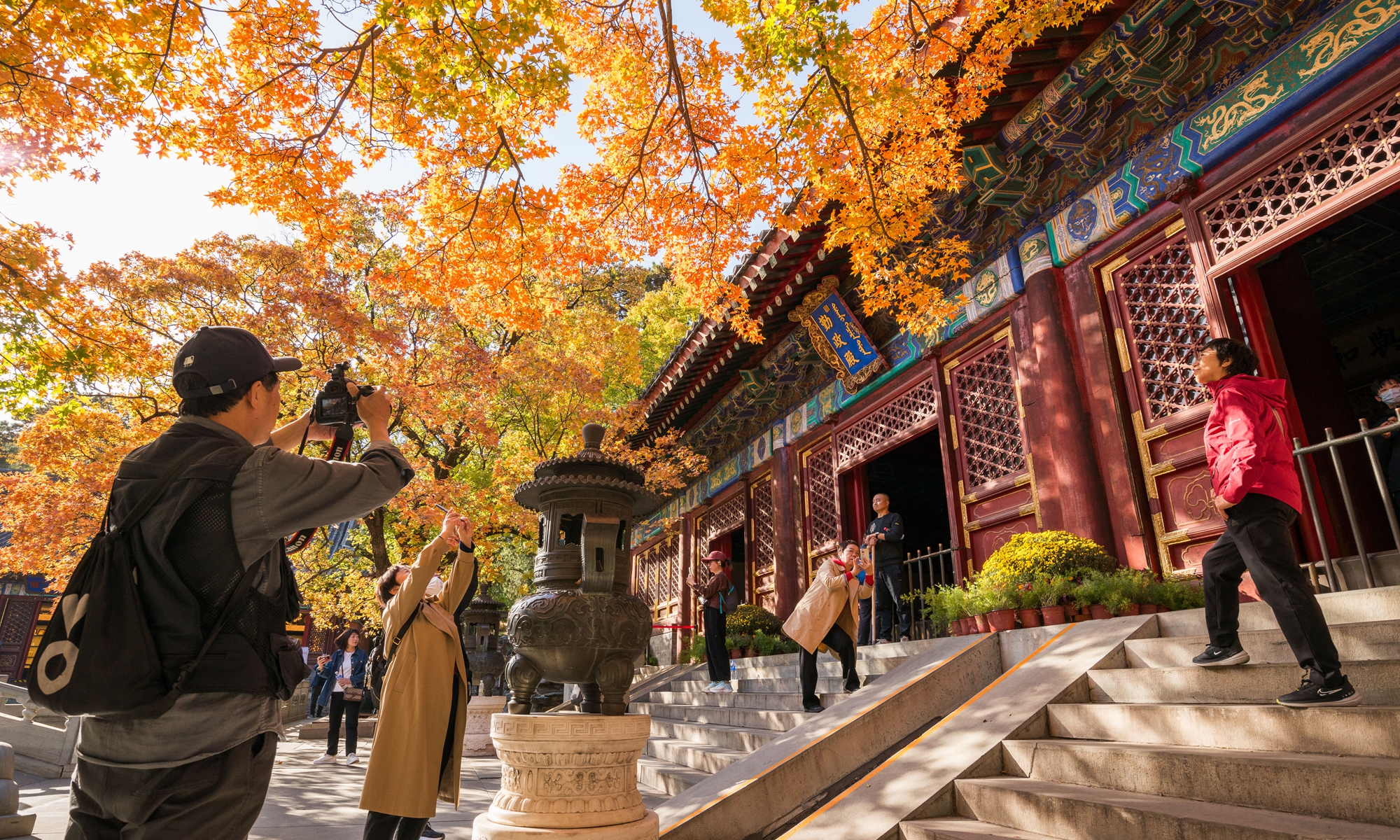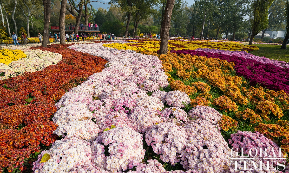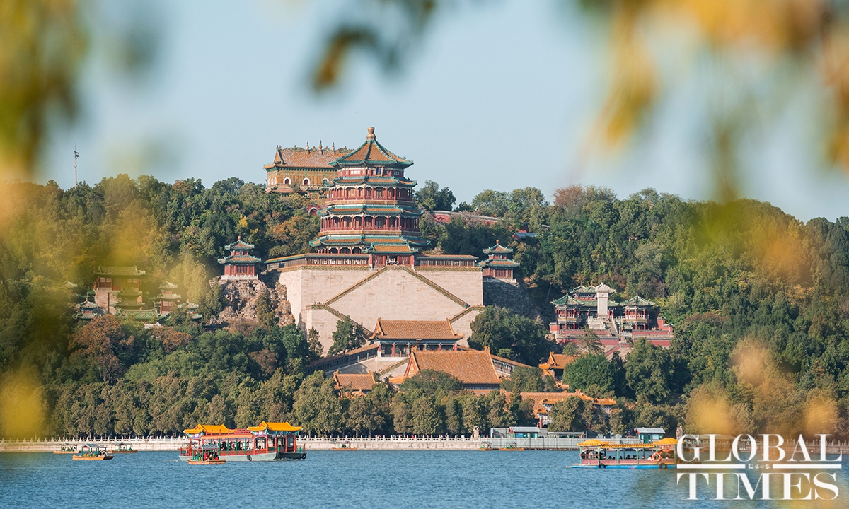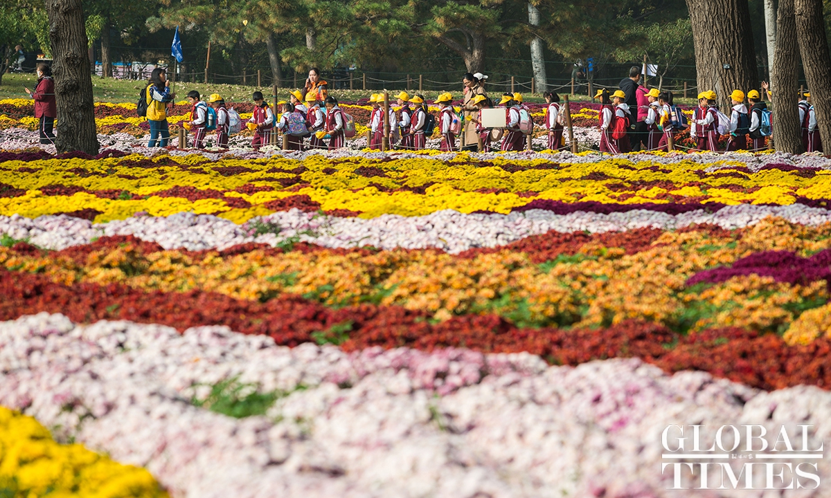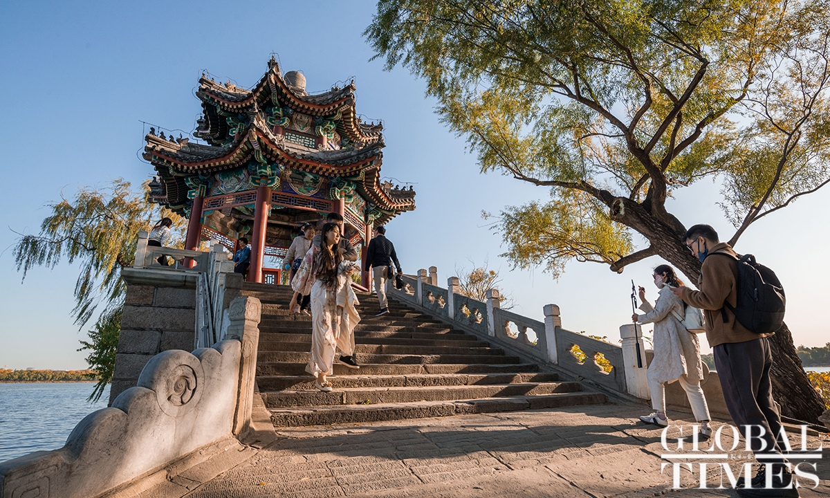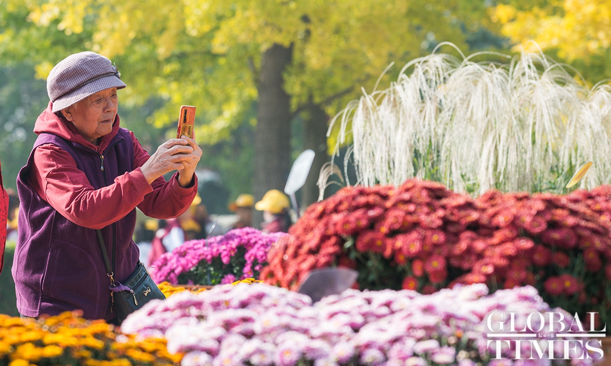 With the drop in temperature as autumn deepens in Beijing, parks around the city are filled with people coming to see the season's spectacle - a fall foliage show as the trees turn from crisp green to vibrant colors such as gold and deep red. Photos: Chen Tao/GT
