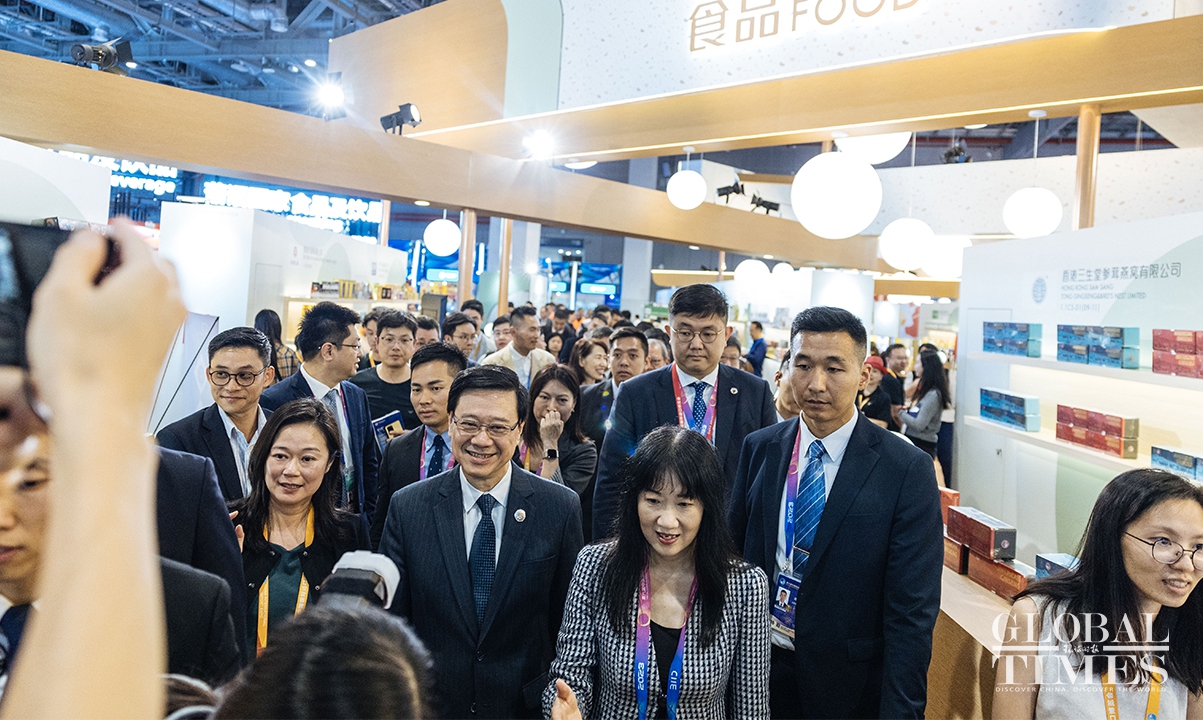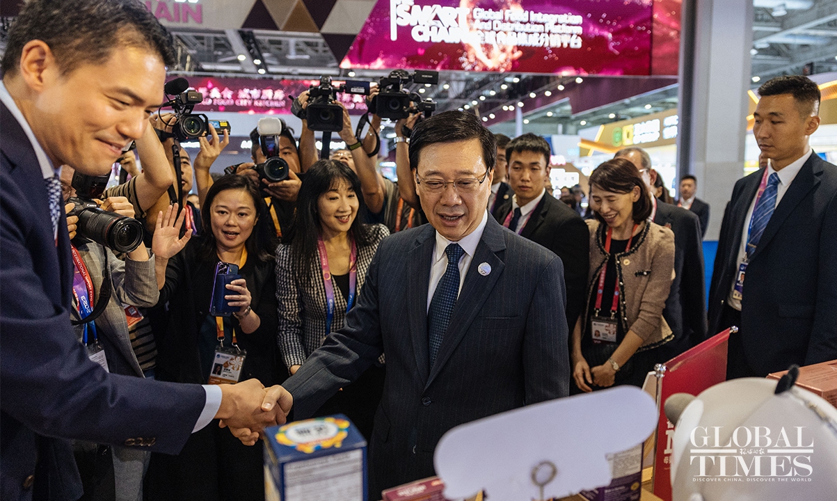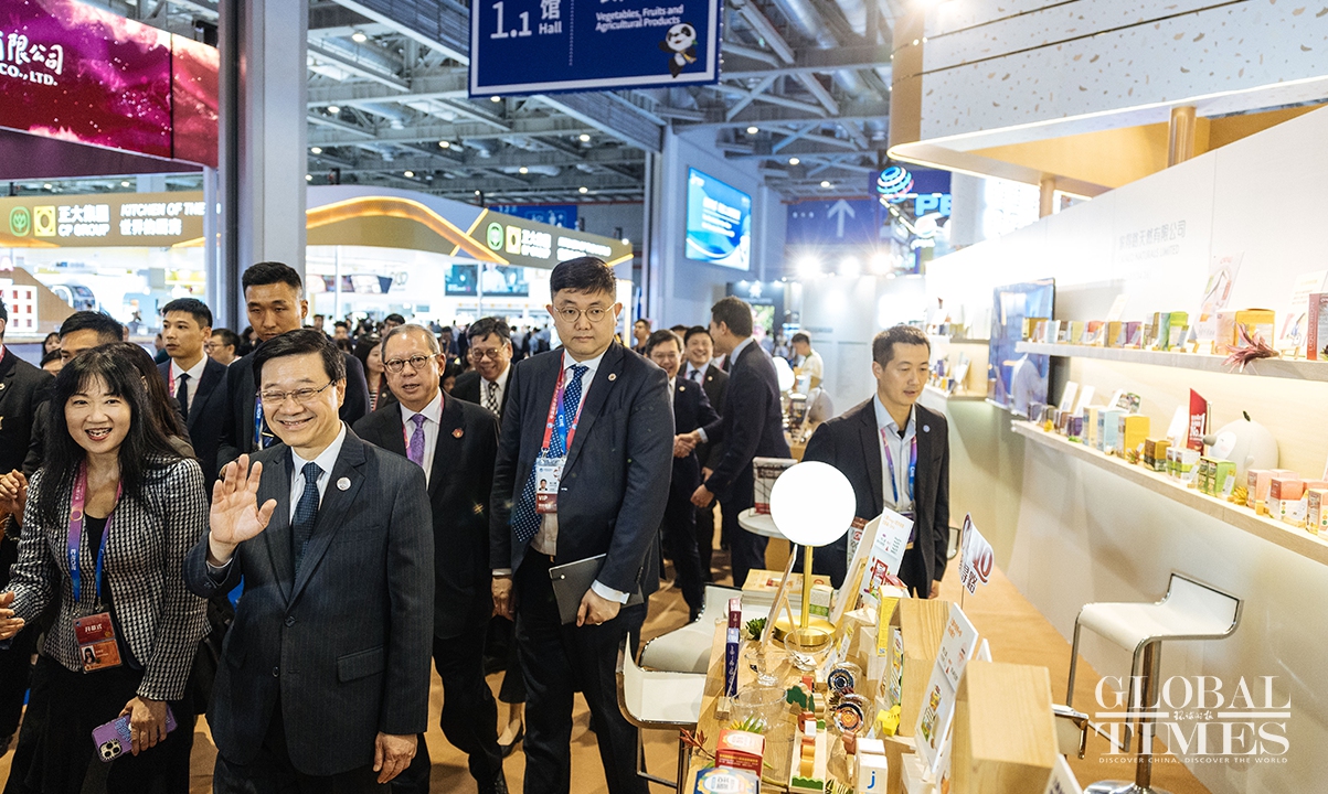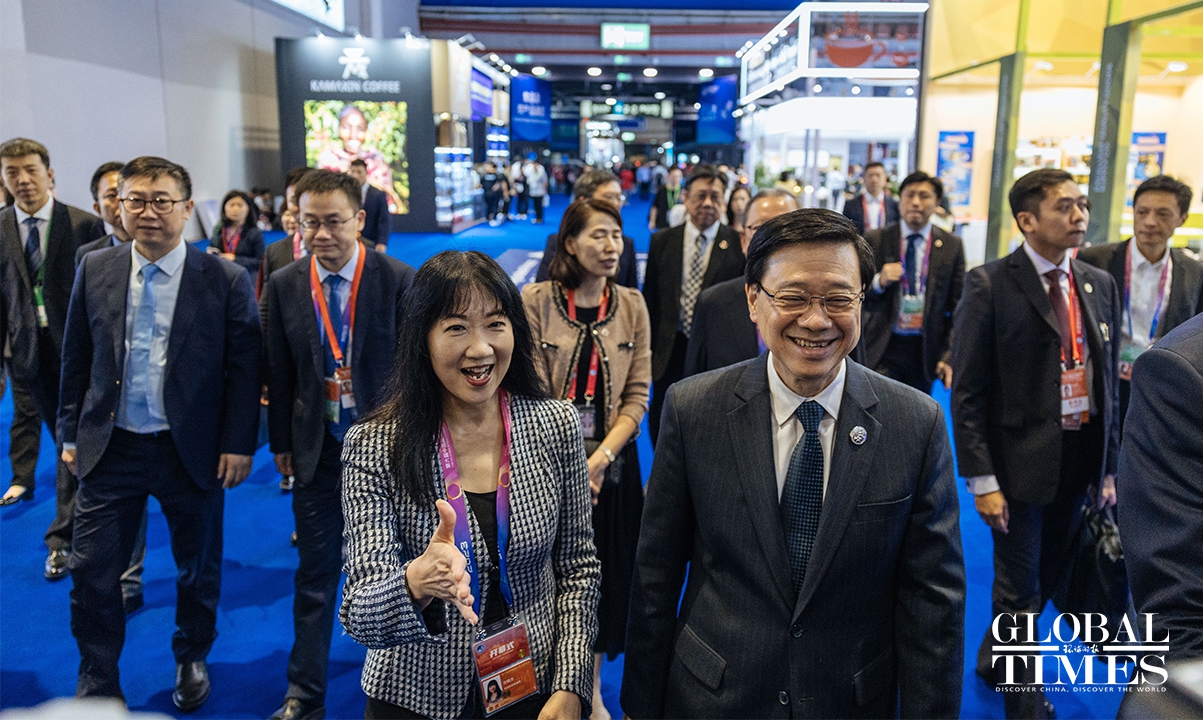 On the afternoon of November 5, Hong Kong Special Administrative Region (HKSAR)'s Chief Executive, John Lee Ka-chiu, attended the 6th China International Import Expo. During his visit, Lee also took the opportunity to explore the booths of Hong Kong companies and had a taste of the specialty milk tea. Photos: Li Hao/GT