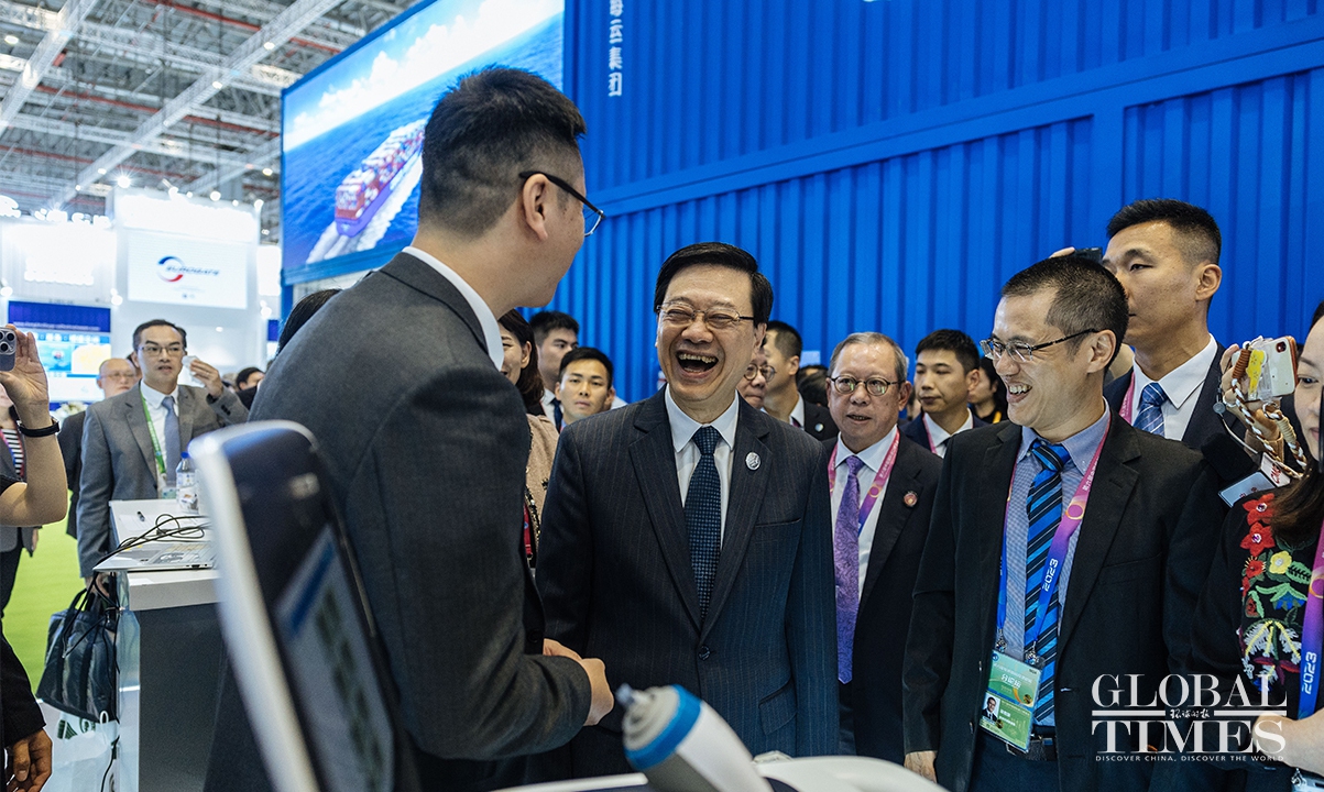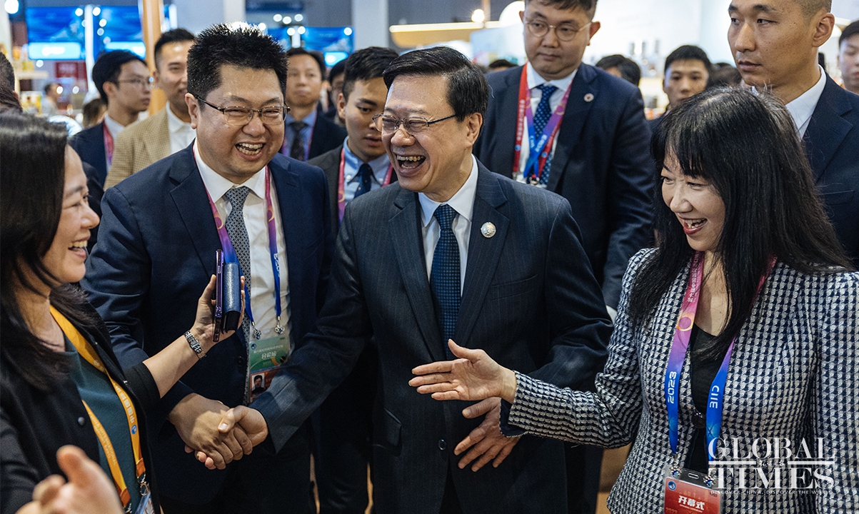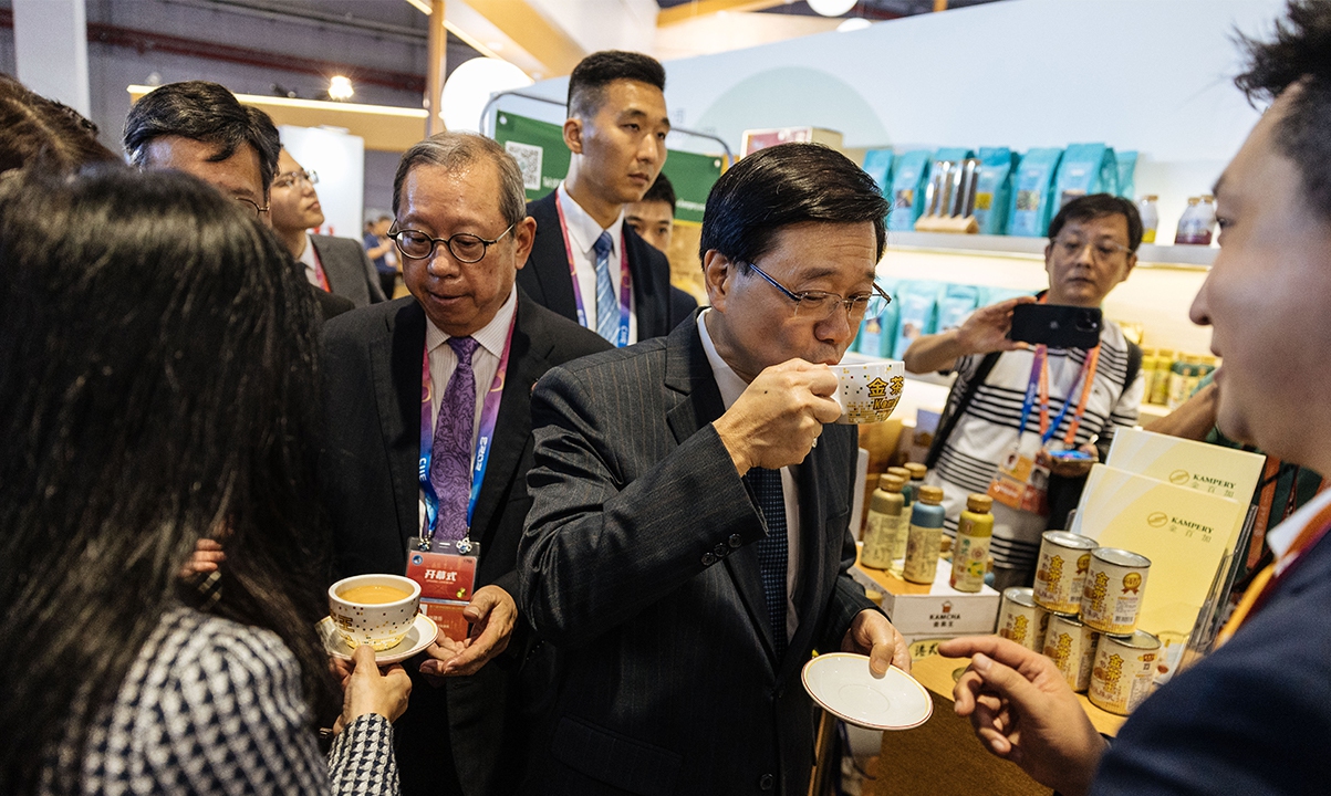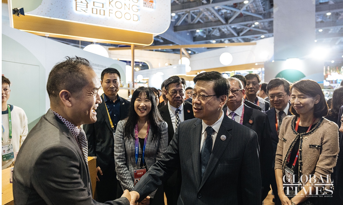 On the afternoon of November 5, Hong Kong Special Administrative Region (HKSAR)'s Chief Executive, John Lee Ka-chiu, attended the 6th China International Import Expo. During his visit, Lee also took the opportunity to explore the booths of Hong Kong companies and had a taste of the specialty milk tea. Photos: Li Hao/GT