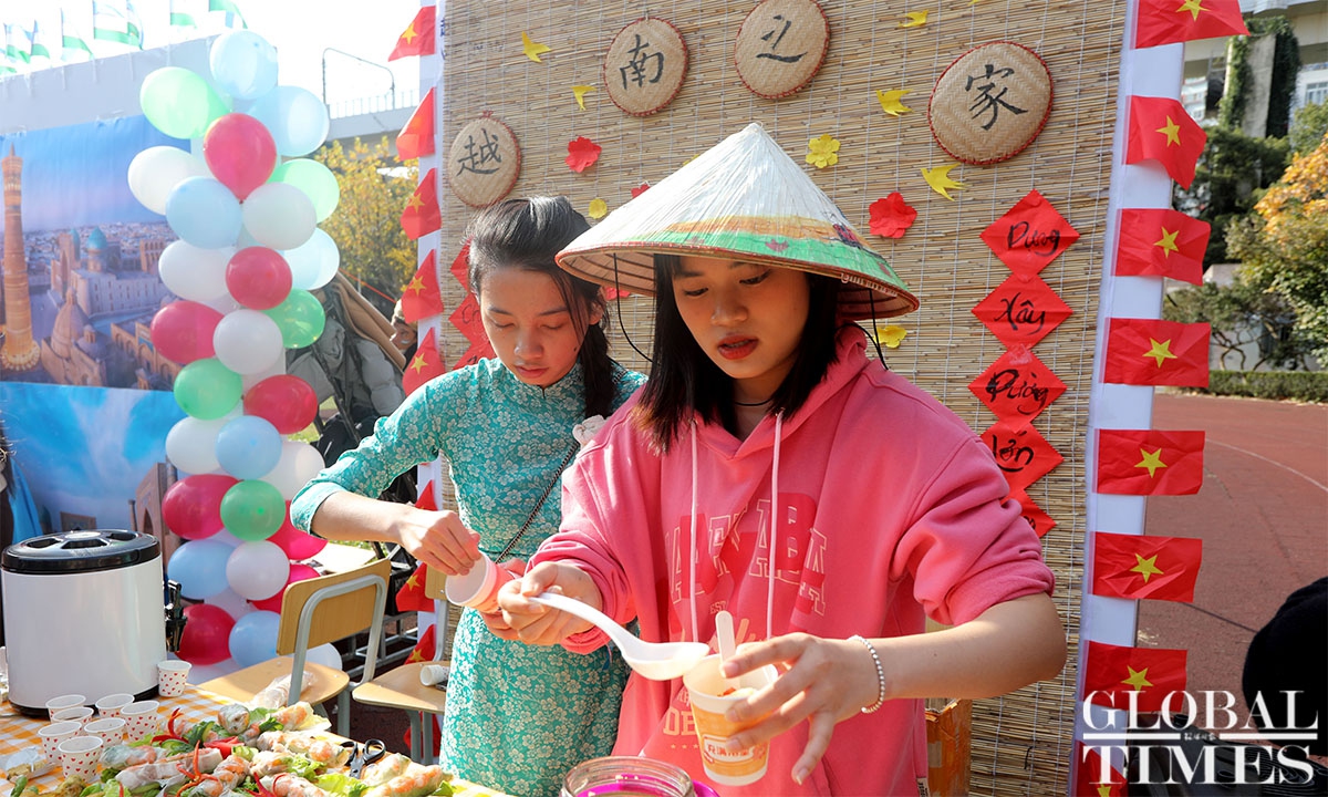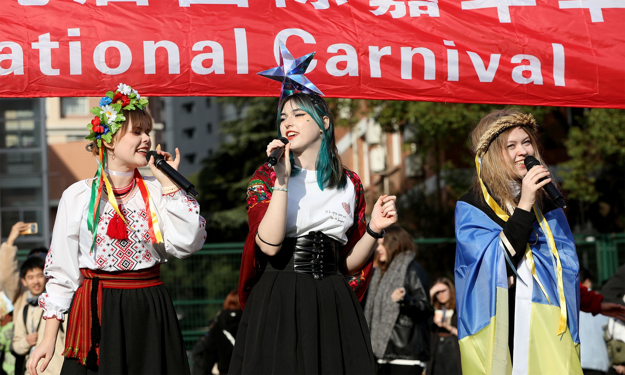 The 9th popular international carnival was held in Shanghai International Studies University on Friday, with international students from 21 countries and regions participating in the event. The carnival provided an opportunity for cultural exchange and learning, while students interacted with each other, sharing traditions and customs, as well as tasting various food from different countries.