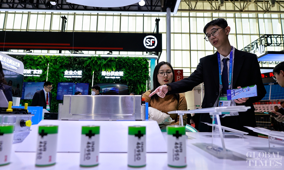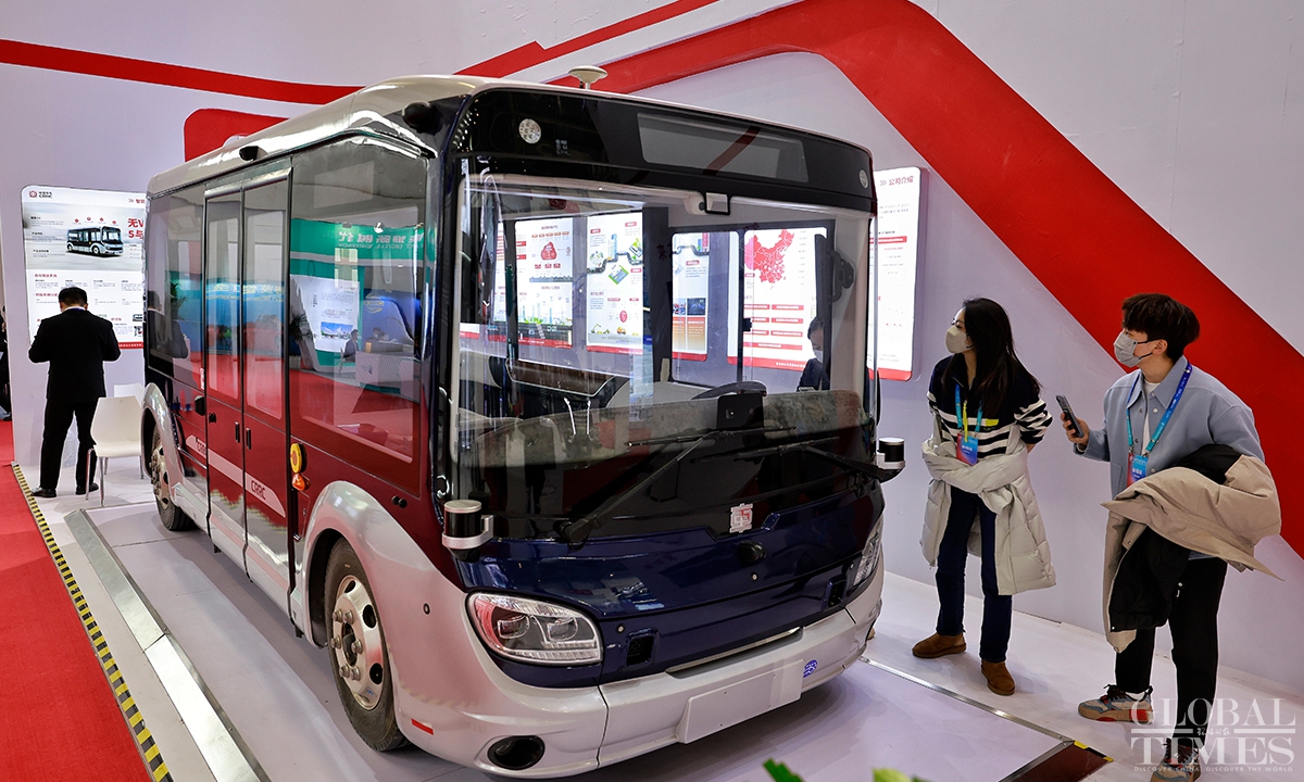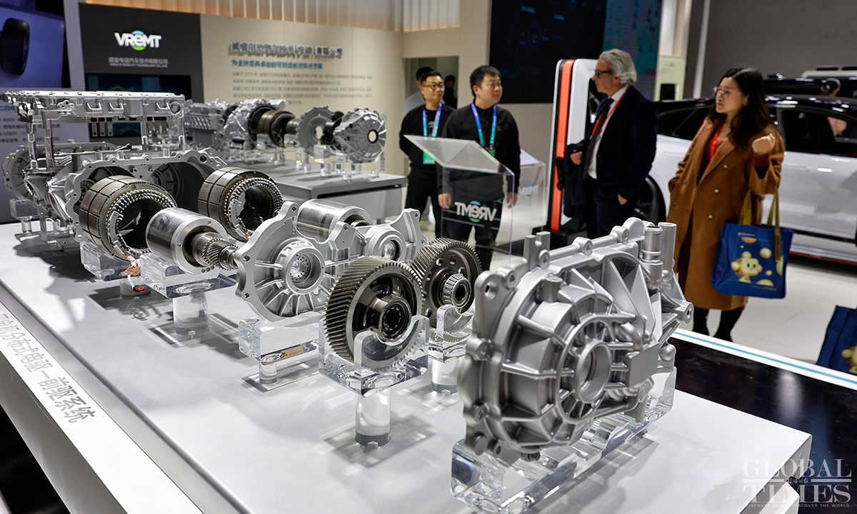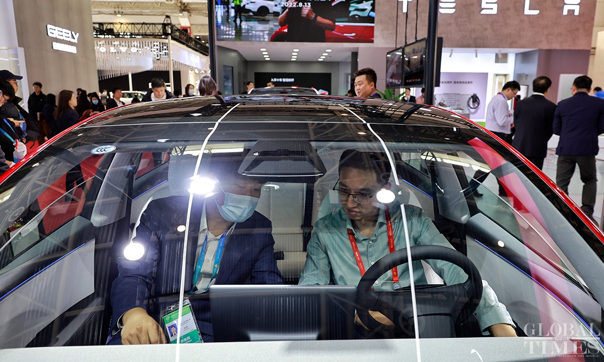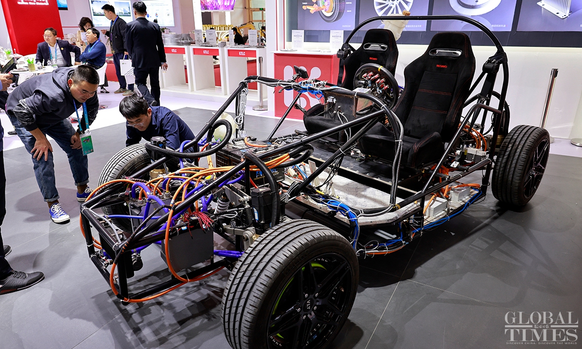 The first China International Supply Chain Expo with the theme of "Connecting the world for a shared future," hosted by the China Council for the Promotion of International Trade (CCPIT), kicked off at the China International Exhibition Center (Shunyi Hall), Beijing on Tue. In the smart vehicle exhibition area, items ranging from core raw materials and key components to complete vehicle products, as well as services were showcased, demonstrating the prospects and opportunities for innovative development. (Photos: Li Hao/GT)