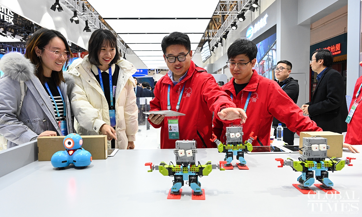 The digital technology section of China International Supply Chain Expo(CISCE) showcased cutting-edge solutions and emerging applications where various industries are empowered. By presenting technological transformation, industrial incubation and application scenarios, it links the innovation-, industry- and demand- end and selects the key parts and elements of the digital economy in the whole chain. (Photos: Chen Tao/GT)