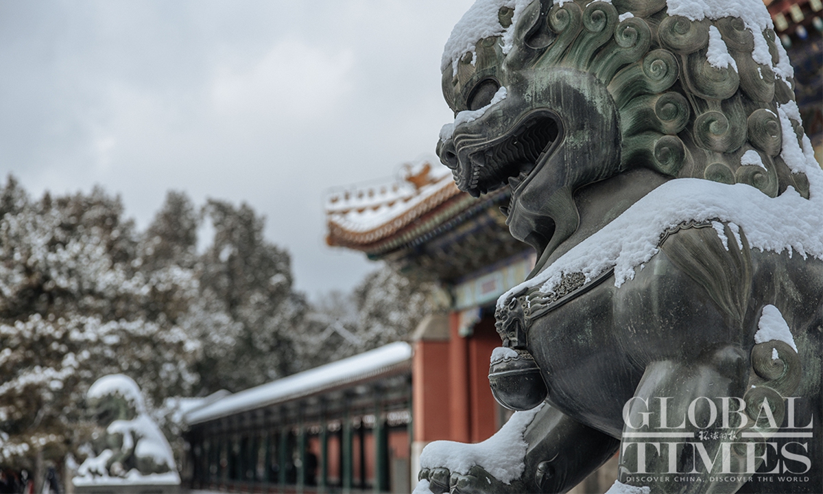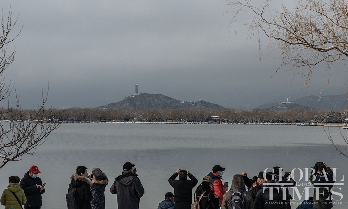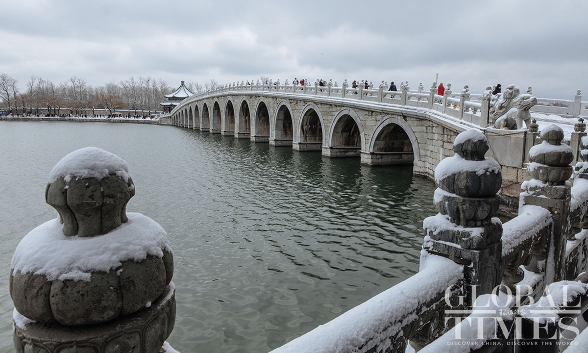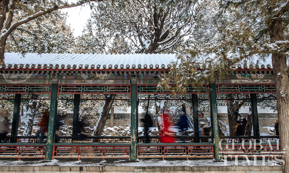 The Summer Palace was all white on Monday as Beijing received its first snowfall of the winter season on Sunday. (Photo: Li Hao/GT)