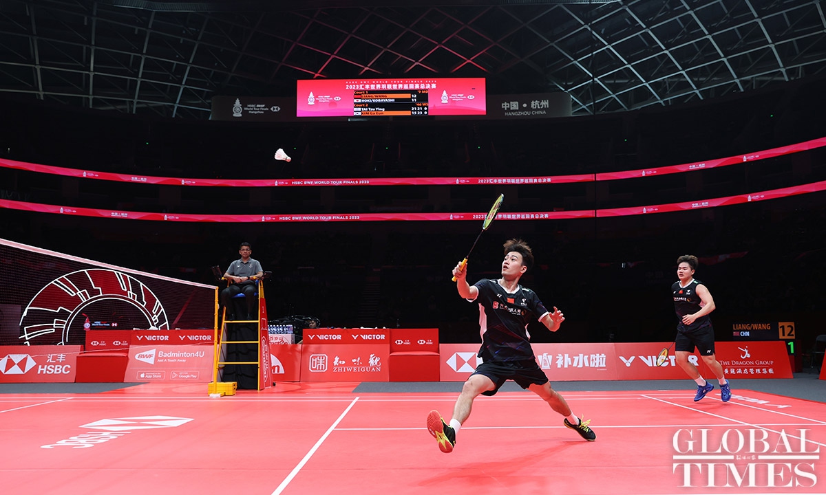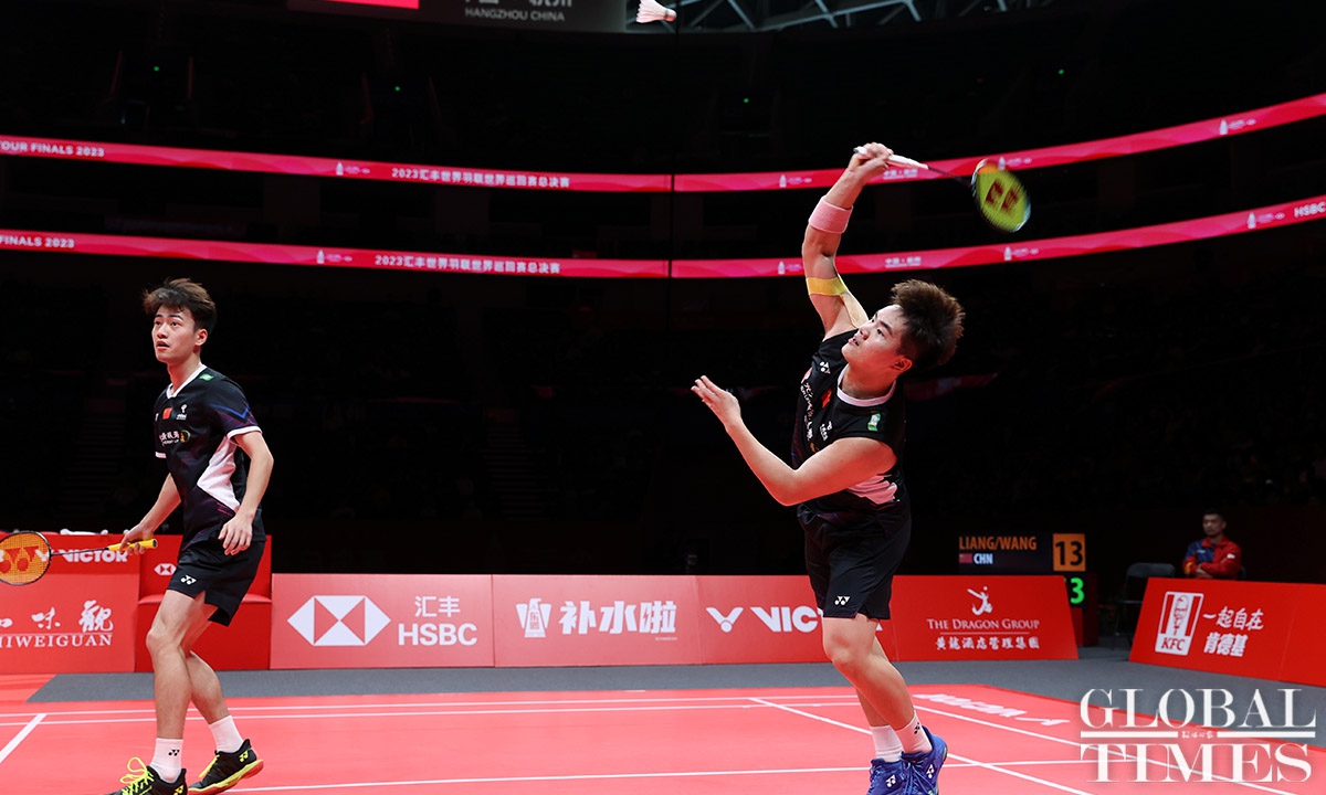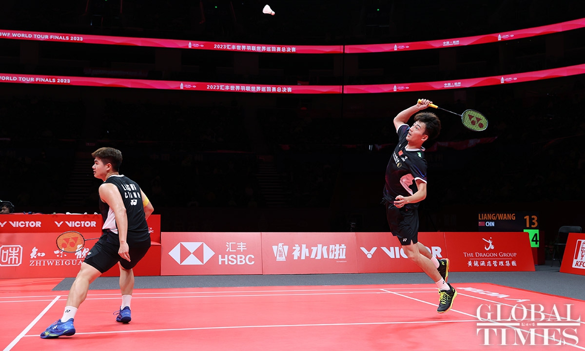 On December 14, Liang Weikeng and Wang Chang from China claimed their first victory in the men's doubles match during the second round of the Badminton World Federation World Tour Finals 2023 in Hangzhou, East China's Zhejiang Province. They defeated Japan's Takuro Hoki and Yugo Kobayashi with a score of 23-21, 21-17.