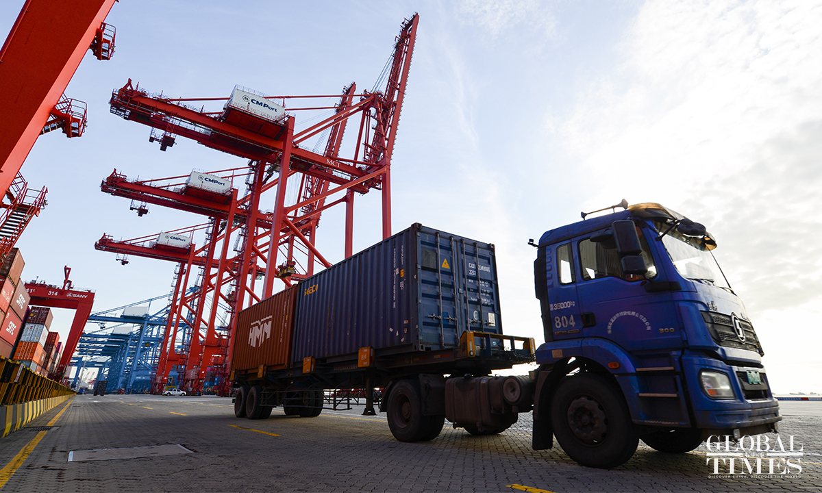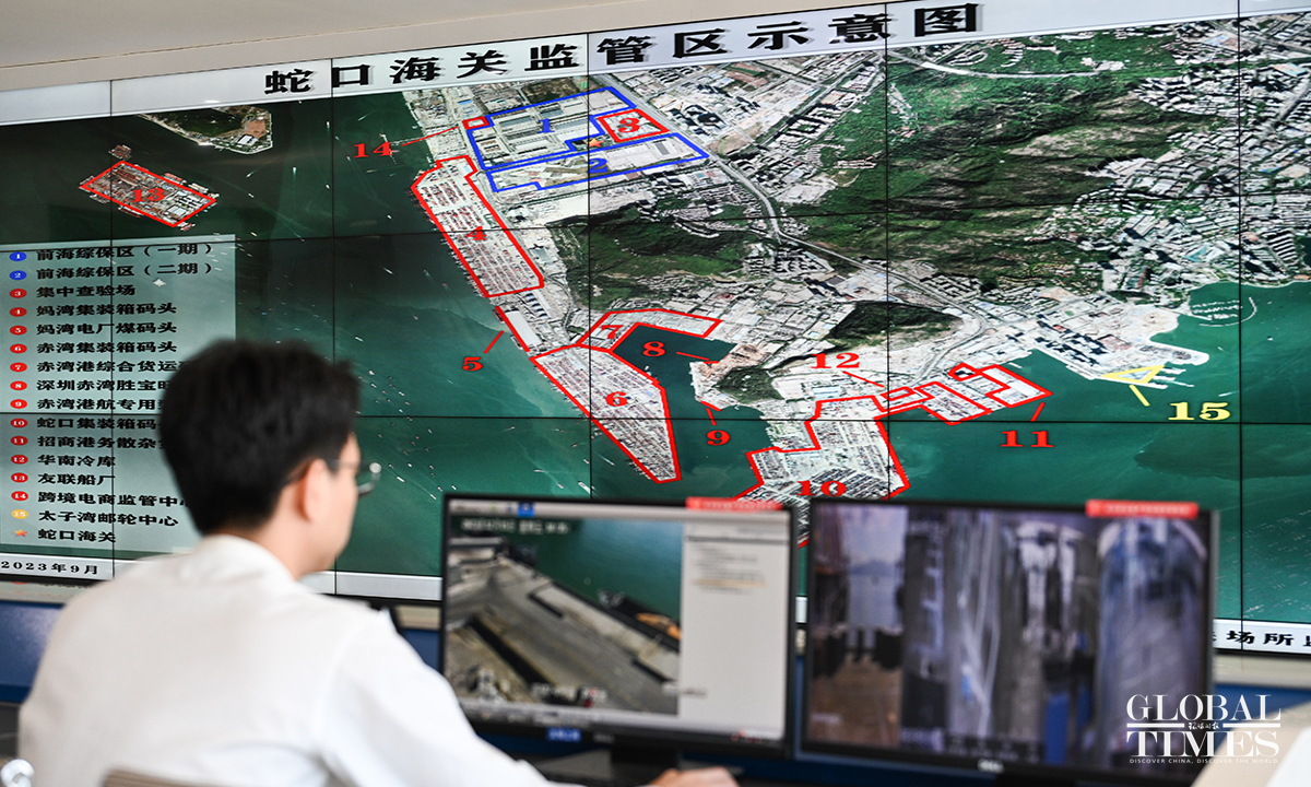 A vibrant scene unfolds in the Qianhai and Shekou areas of the Guangdong Pilot Free Trade Zone (FTZ), a pivotal hub in China's reform and opening-up, in South China's Guangdong Province, on December 15, 2023. This marks one of the busiest periods for the FTZ in the year, as port customs officials, traders, and port staff intensify efforts to facilitate trade in the region for the year-end. From spare parts to electronic devices, high-value-added products are shipped from this zone to countries worldwide. Photos: Chen Tao/GT