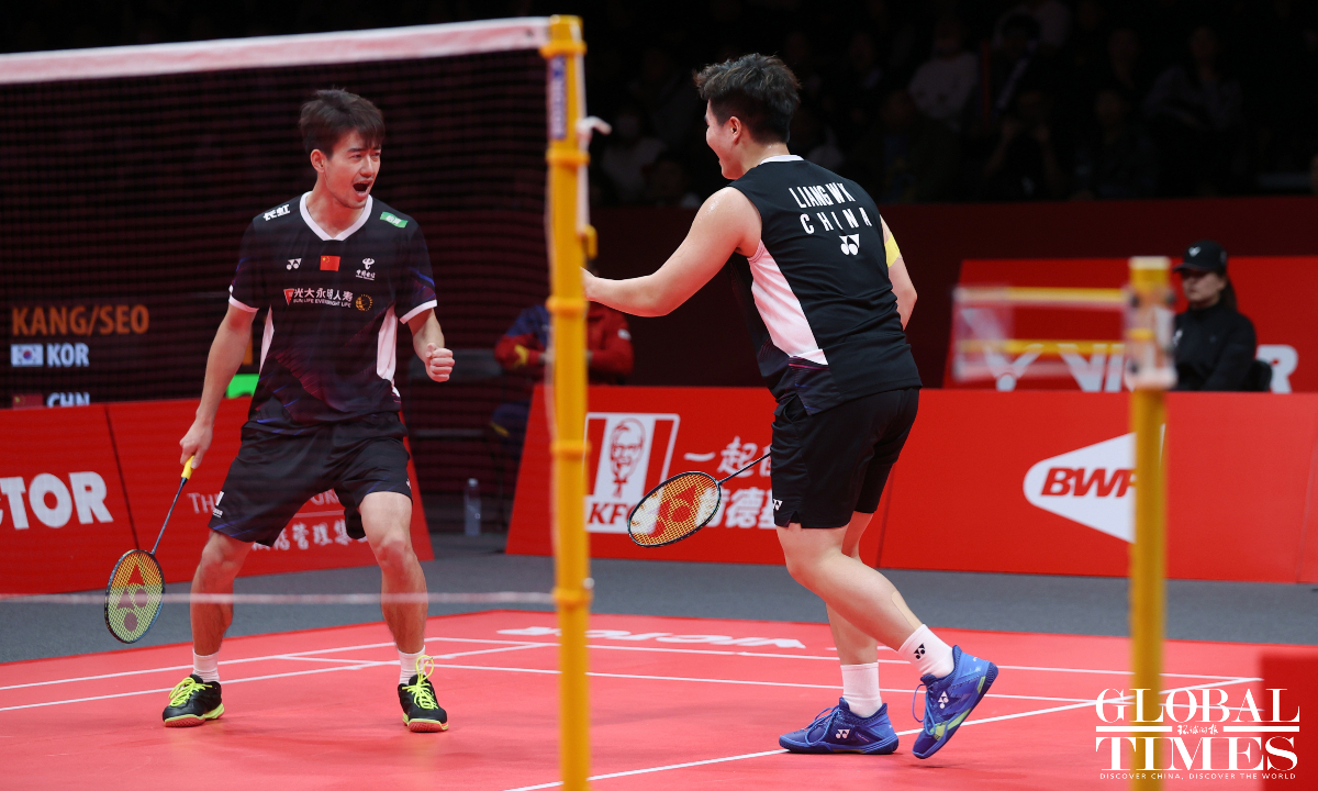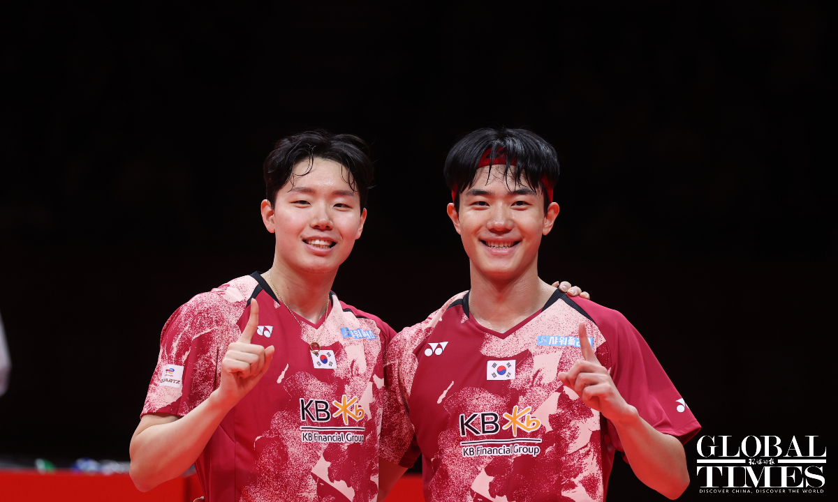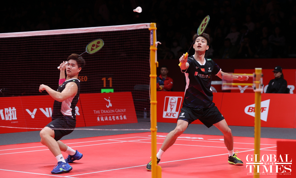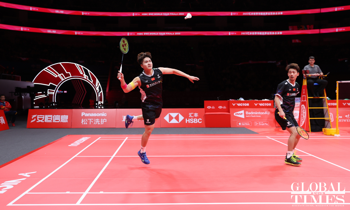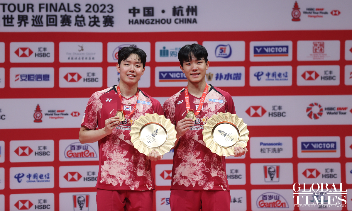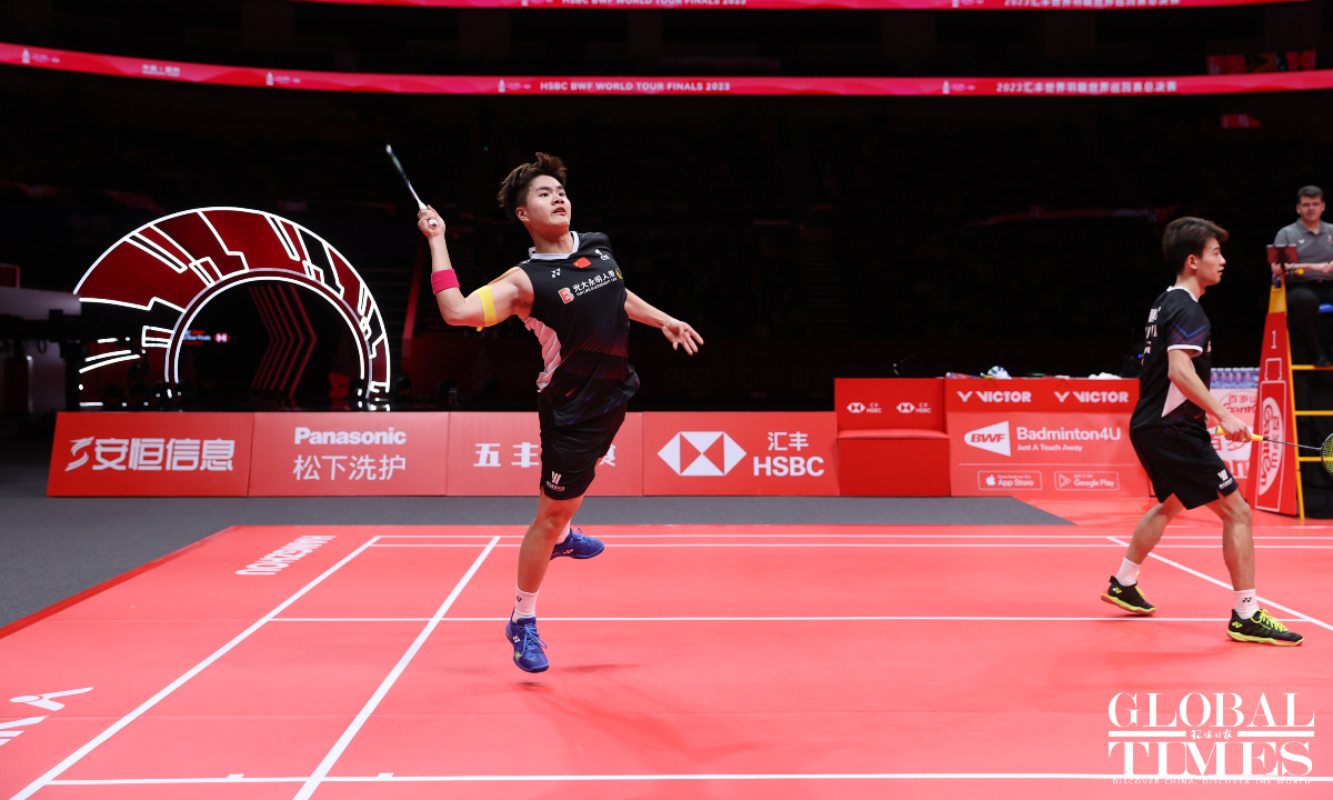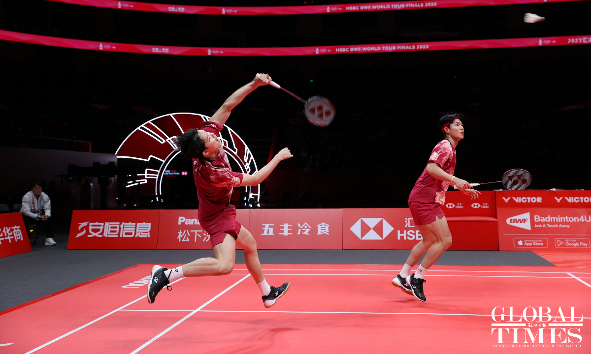 On the final day of the BWF World Tour Finals 2023 in Hangzhou, East China's Zhejiang Province, the first men's doubles final took place between Liang Weikeng and Wang Chang, and South Korea's Seo Seung-jae/Kang Min-hyuk. Unfortunately, Liang and Wang lost the match 0-2 to their opponents, resulting in a regretful loss in the men's doubles finals. (Photos: Cui Meng/GT)