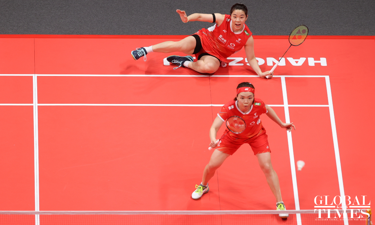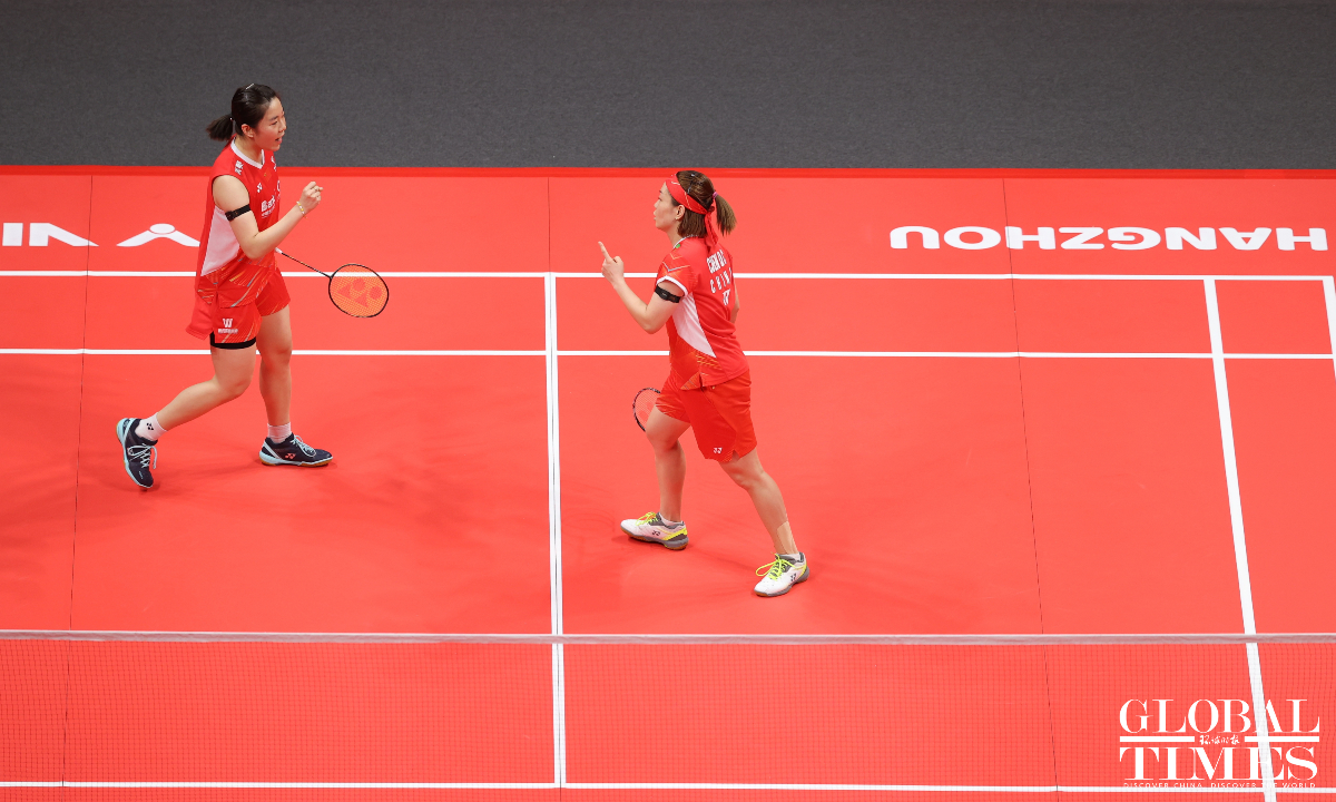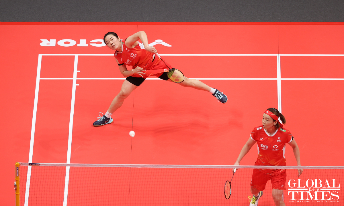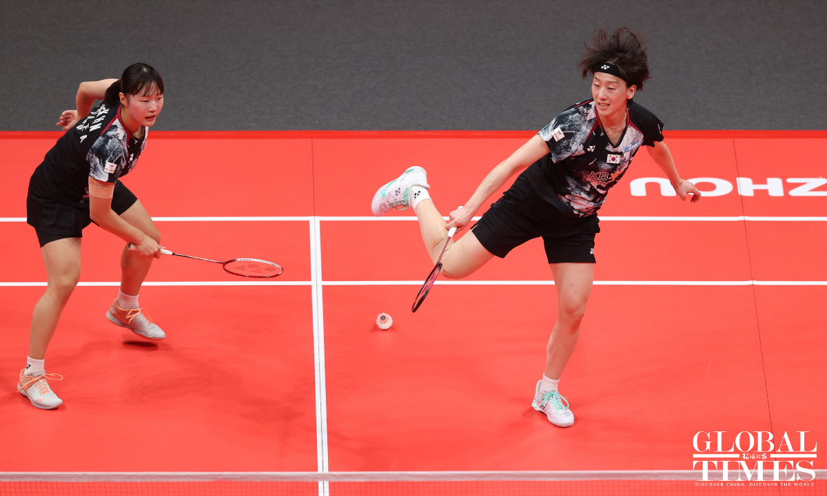 The women's doubles final of the BWF World Tour Finals 2023 concluded at the Hangzhou Olympic Sports Center on Sunday. China's top doubles pair, Chen Qingchen and Jia Yifan, defeated South Korea's Baek Ha Na and Lee So Hee 2-0 to successfully defend their title and win $210,000 in prize money. (Photos: Cui Meng/GT)