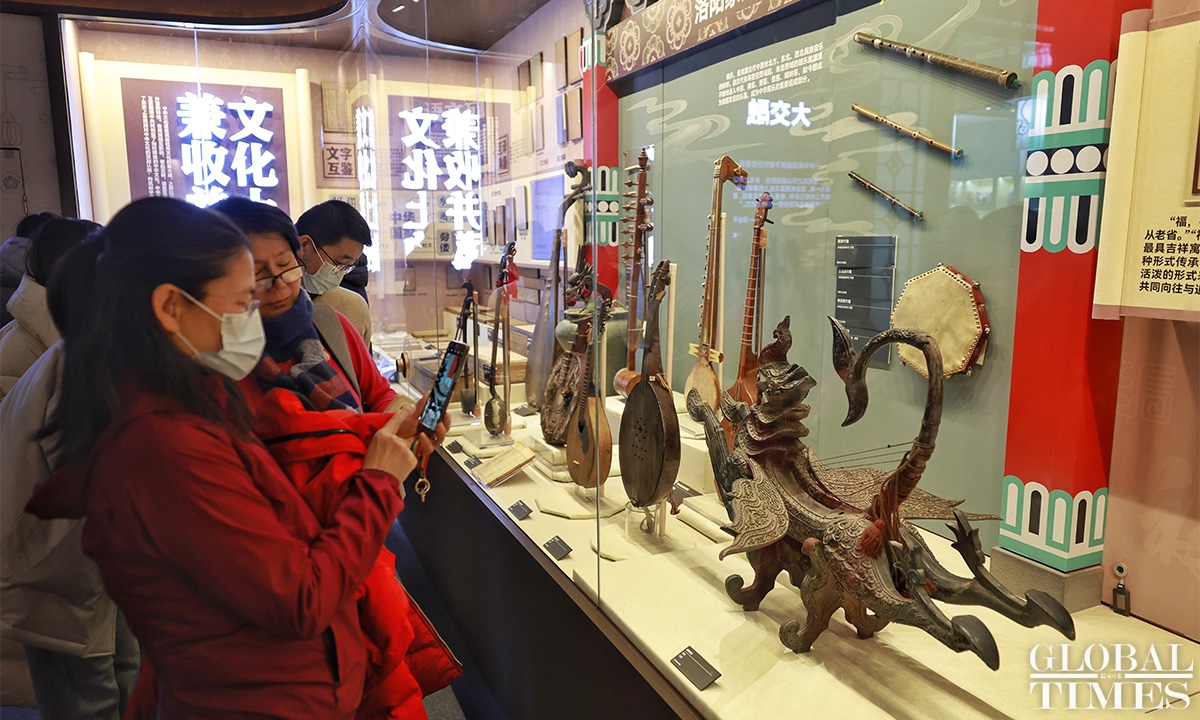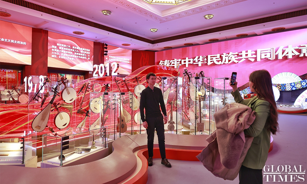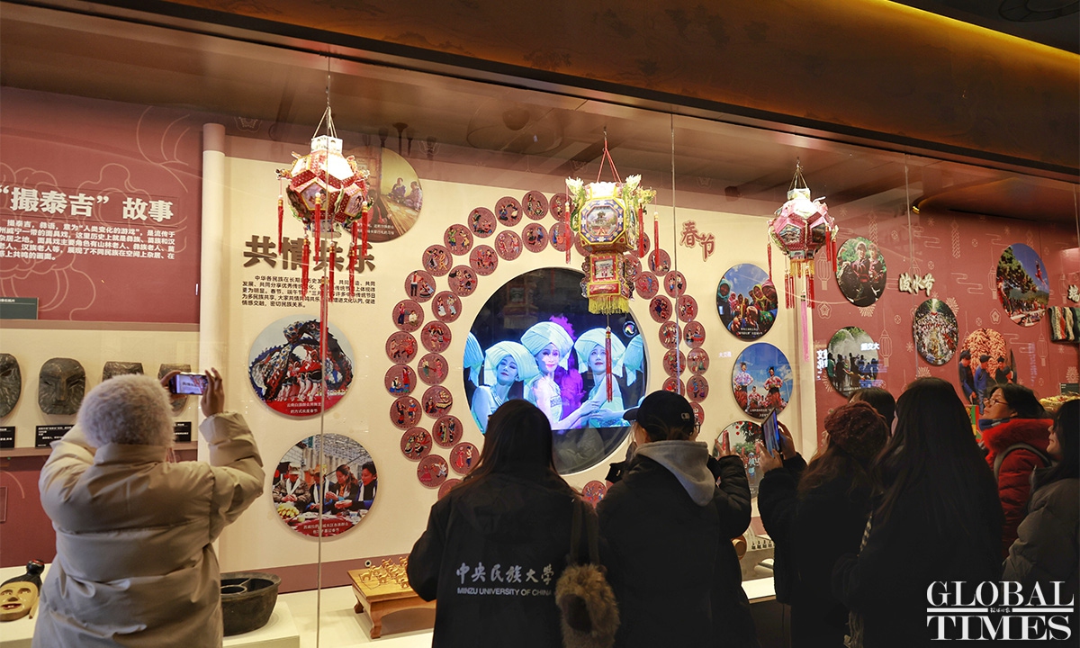 Come enjoy a warm museum visit on a cold winter day! Visitors appreciate the national treasures exhibit that highlights Chinese unity in history at the Cultural Palace of Nationalities in Beijing on December 19. Photos: Li Hao/GT
