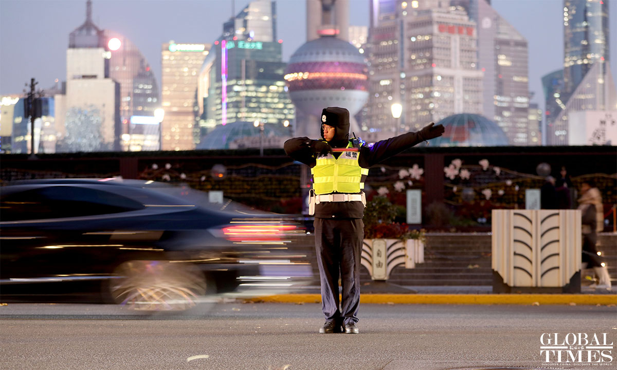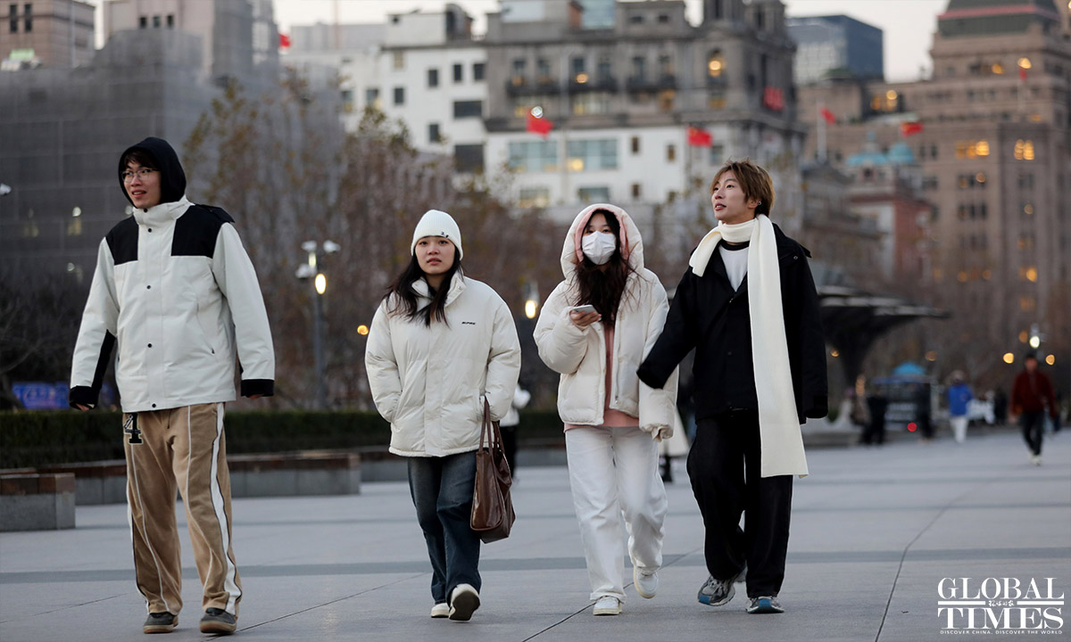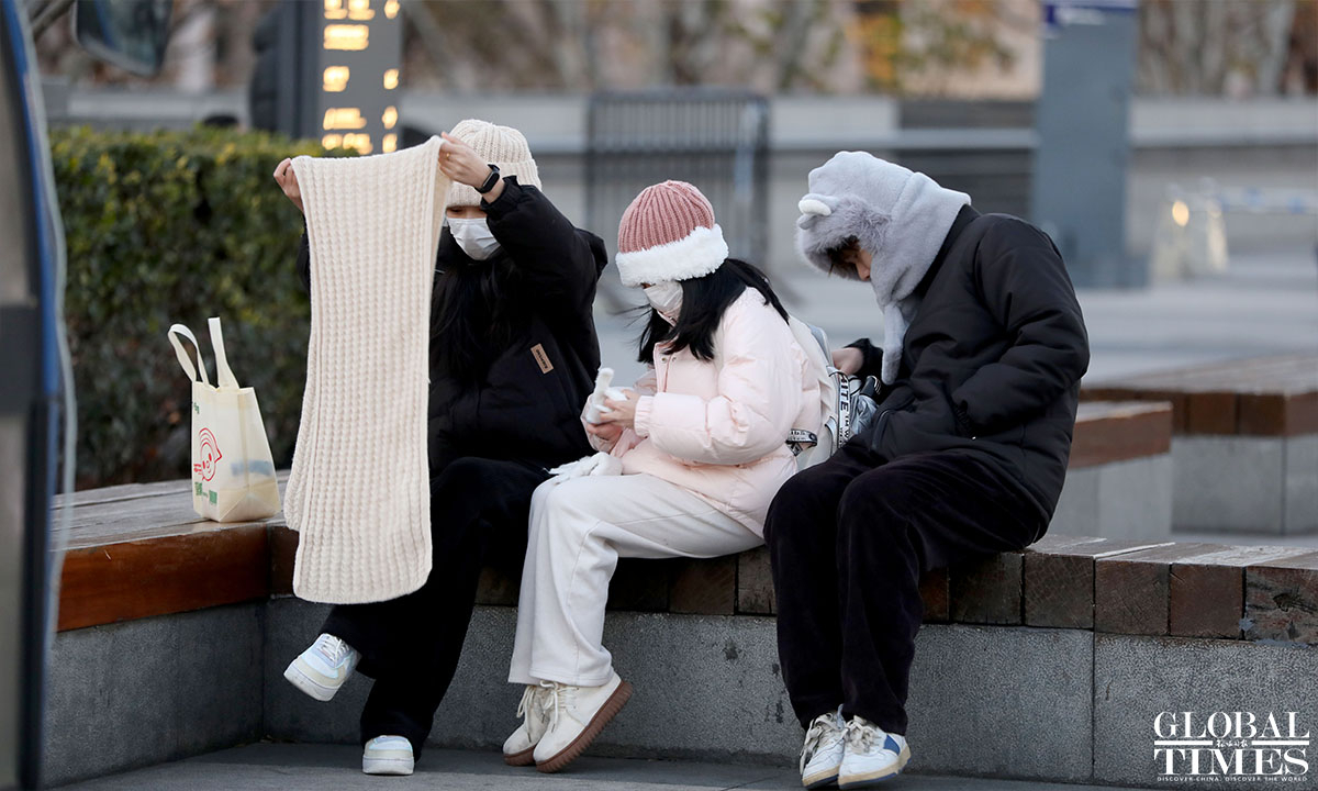 The cold wave, combined with strong winds, has brought a drop in temperature. This Friday marks the "winter solstice" in the 24 solar terms, with the lowest temperature expected to be -3℃ at Xujiahui station in the central city of Shanghai, and even lower in the suburbs. The daytime temperature will start to rise this Saturday, but it will remain below freezing in the morning and evening. The cold wave in Shanghai is following its usual pattern. (Photos: Chen Xia/GT)