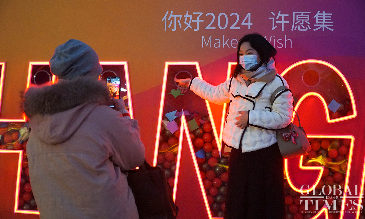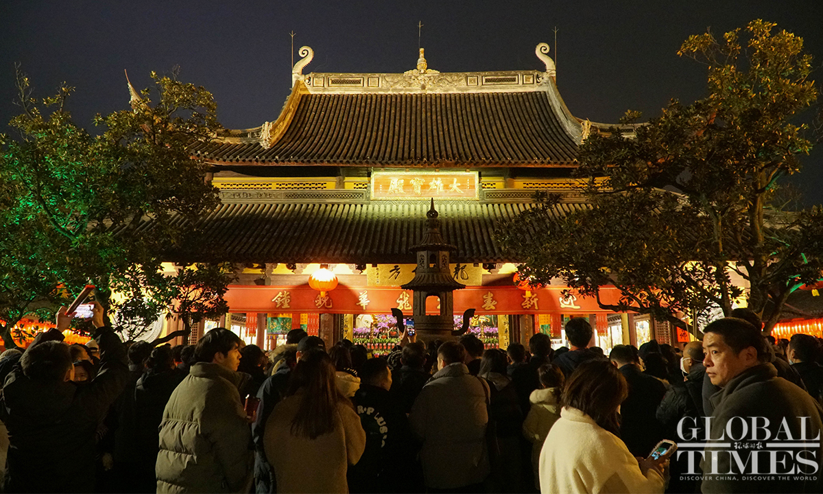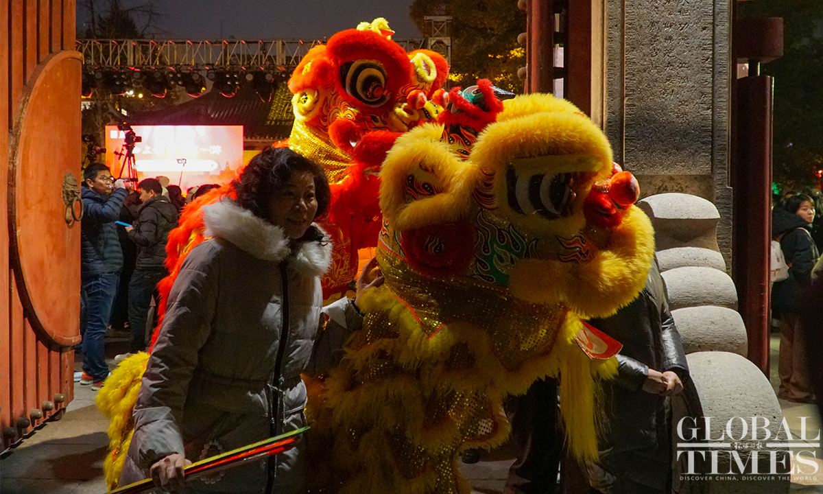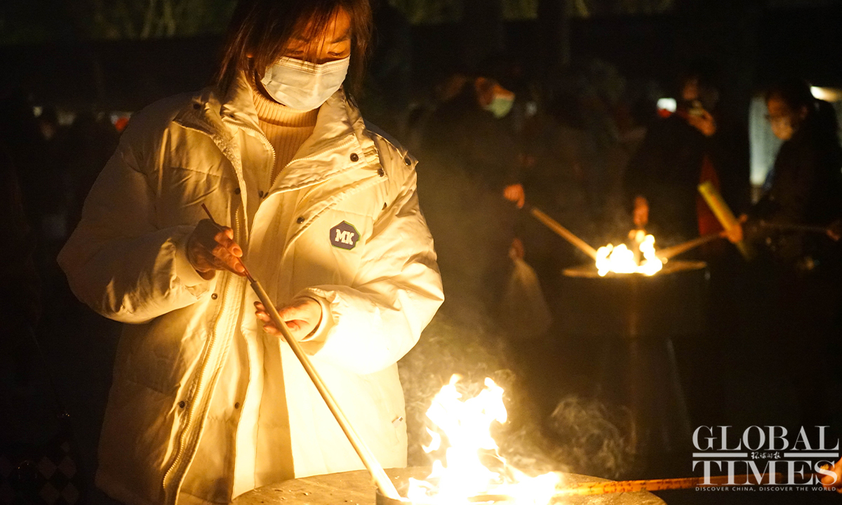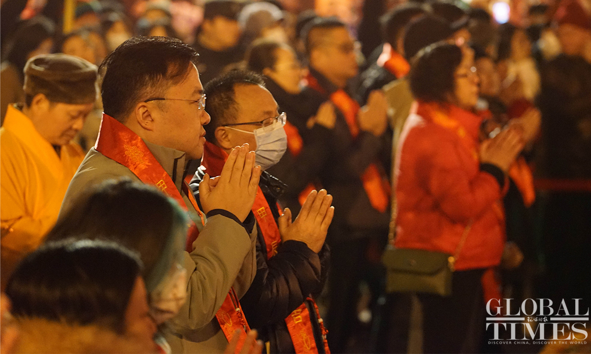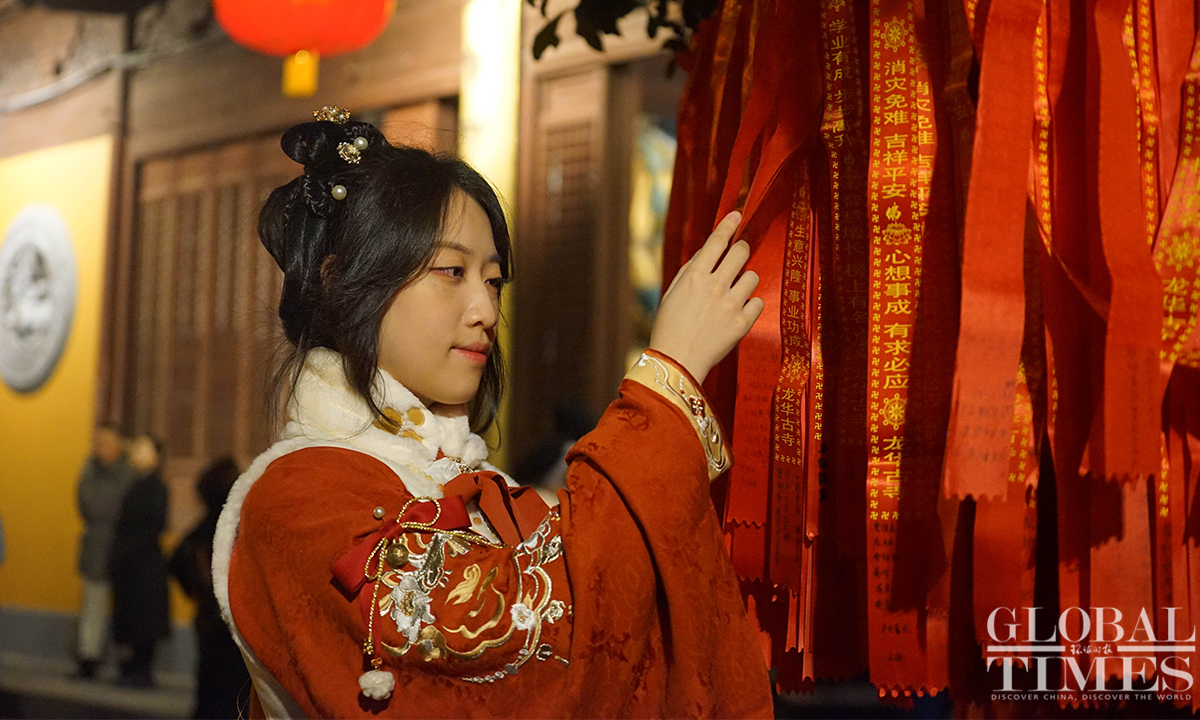 On the evening of December 31, the landmark Longhua Temple in Shanghai rings its bell 108 times to bid farewell to 2023 and welcome the New Year. This annual event attracts numerous visitors who came to pray for blessings and enjoy performances showcasing intangible cultural heritage. (Photos:Lu Ting/GT)