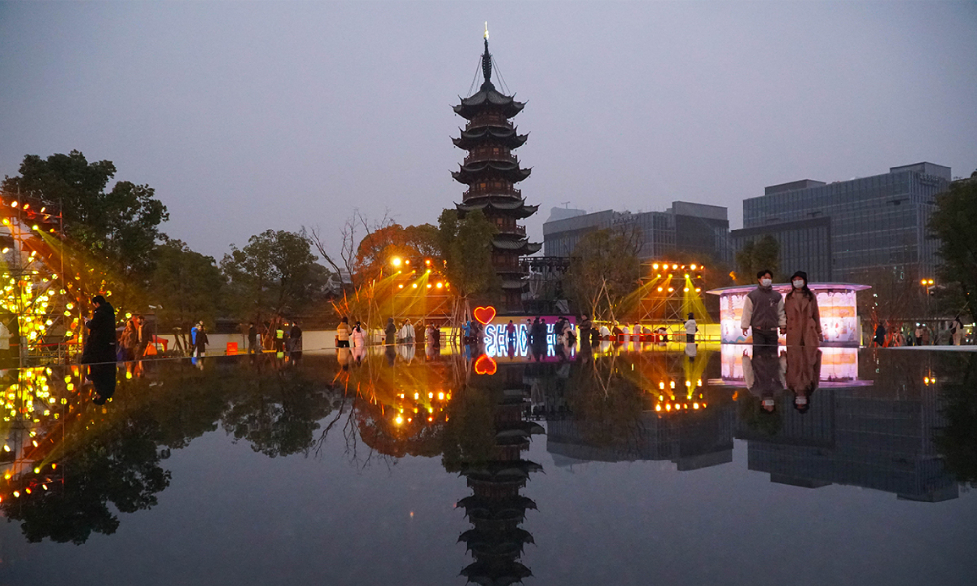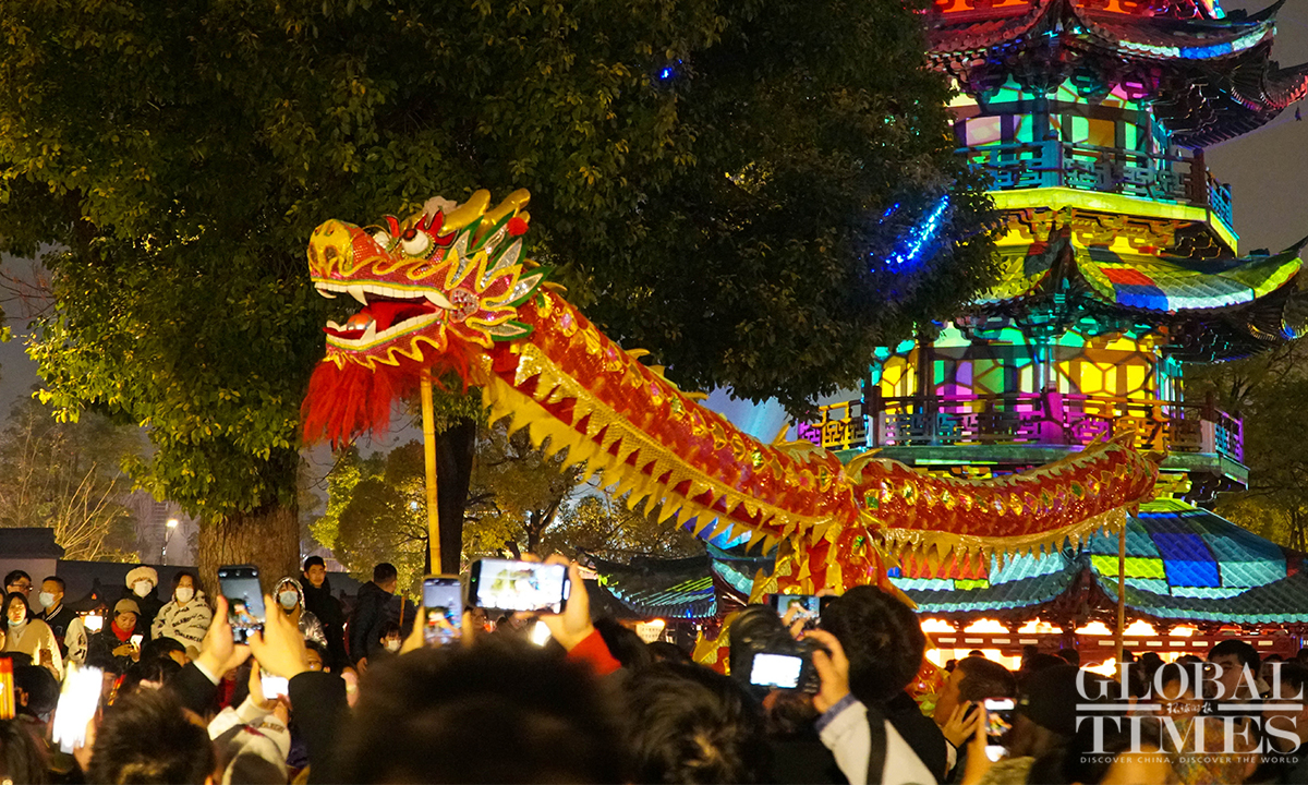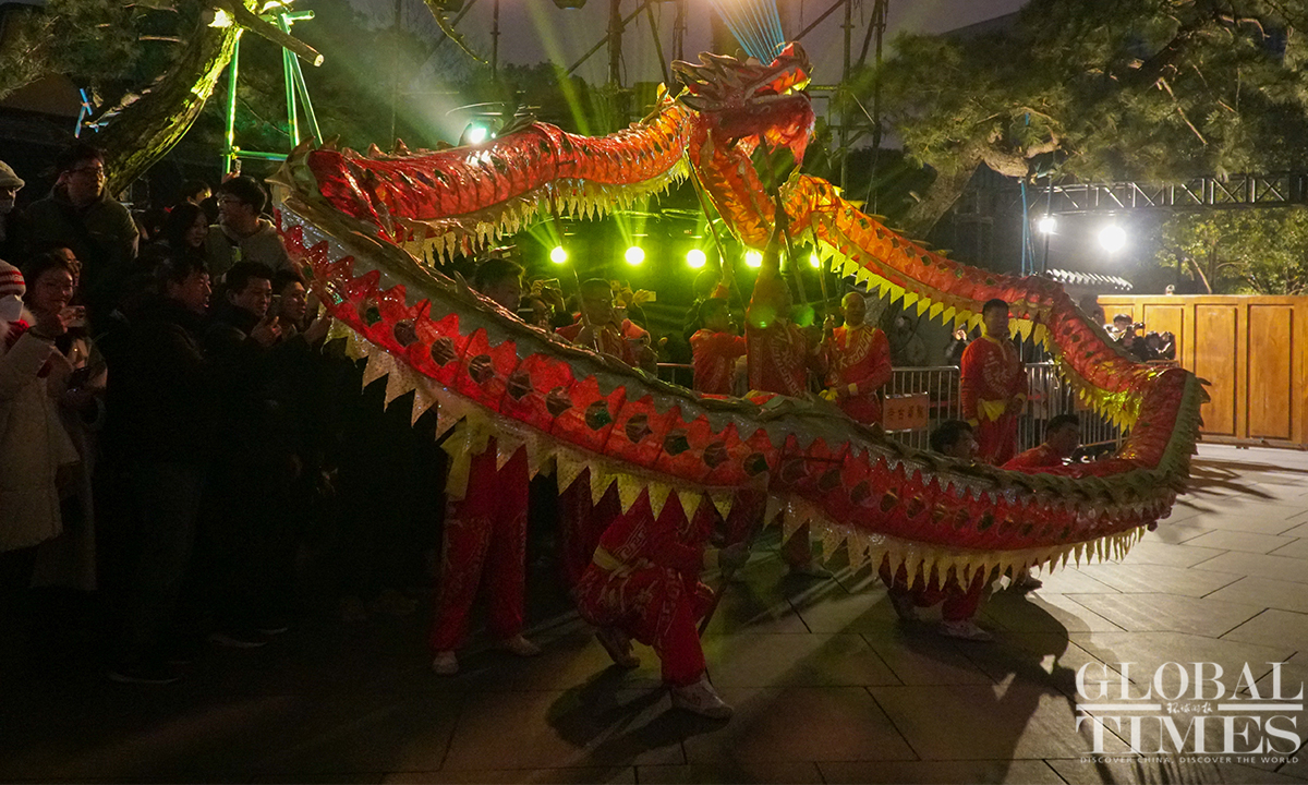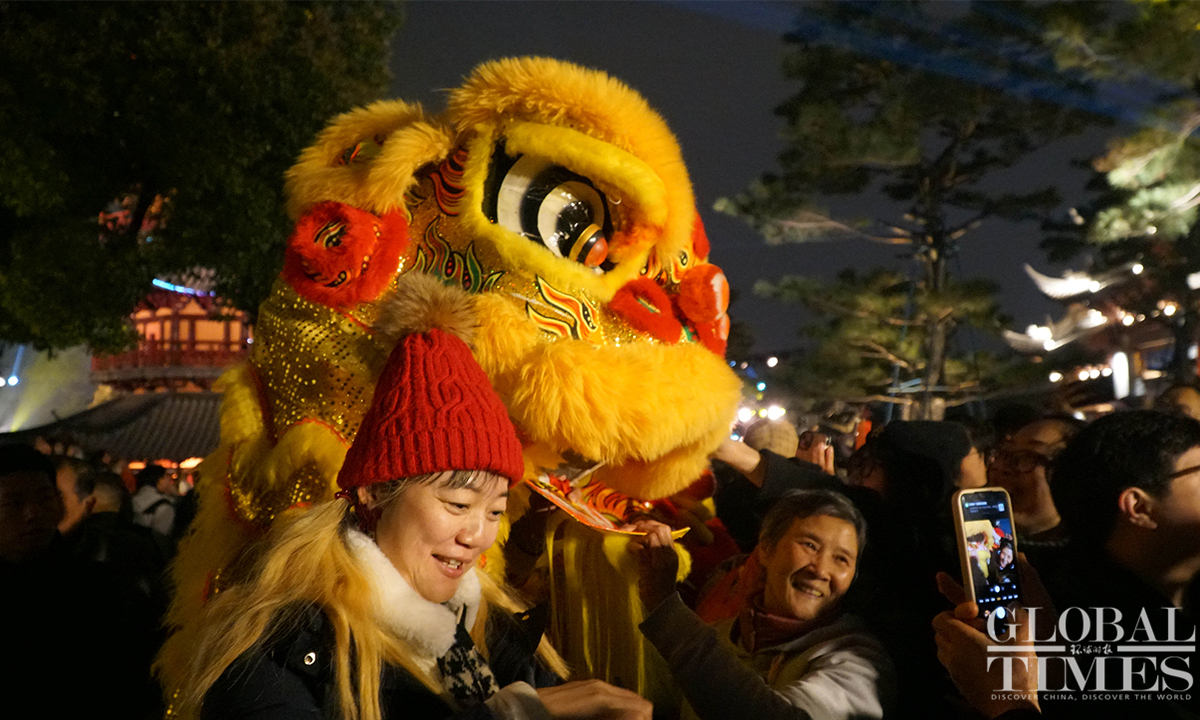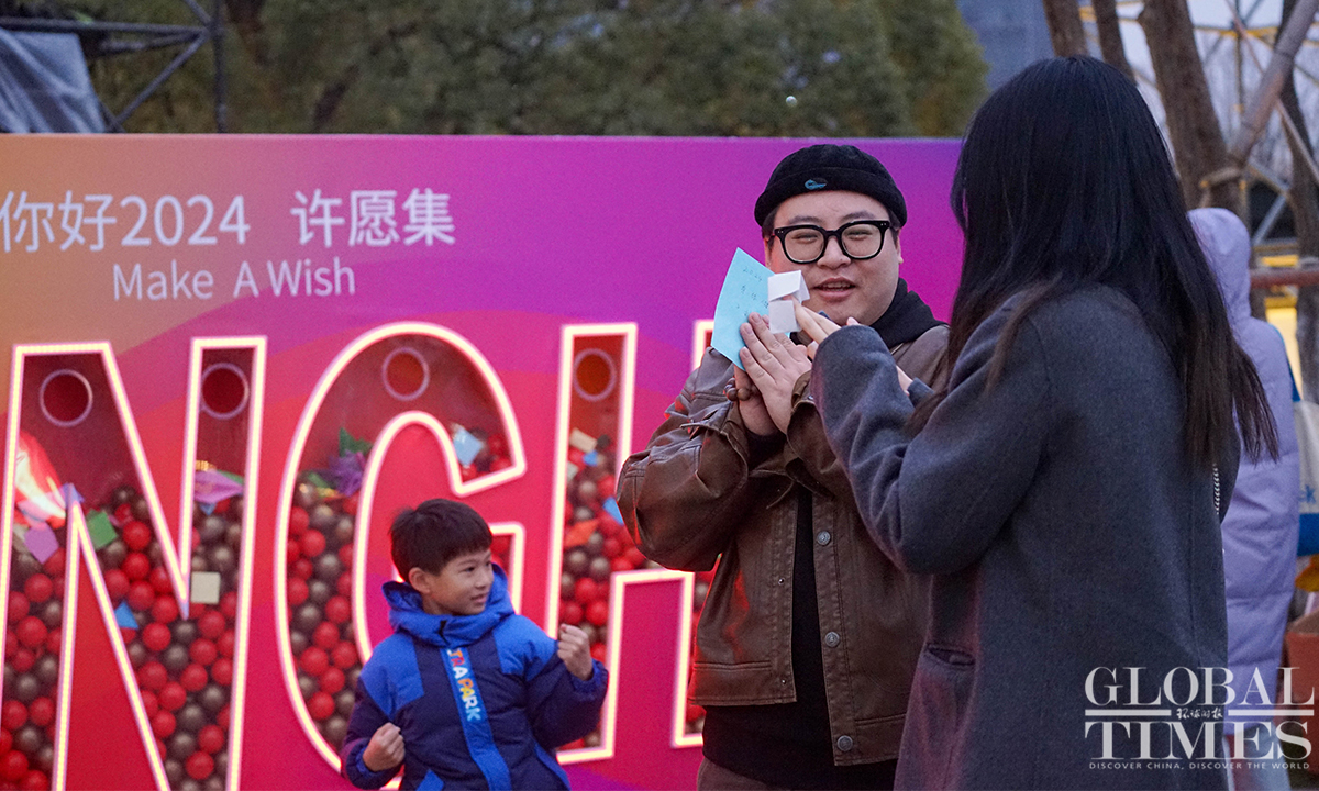 On the evening of December 31, the landmark Longhua Temple in Shanghai rings its bell 108 times to bid farewell to 2023 and welcome the New Year. This annual event attracts numerous visitors who came to pray for blessings and enjoy performances showcasing intangible cultural heritage. (Photos:Lu Ting/GT)