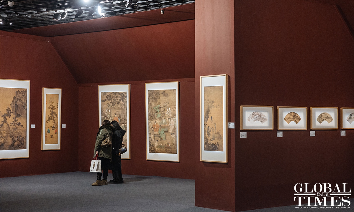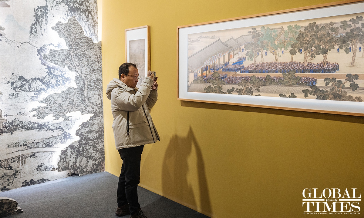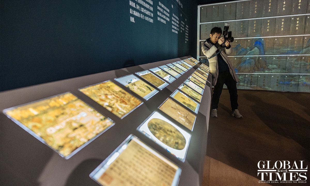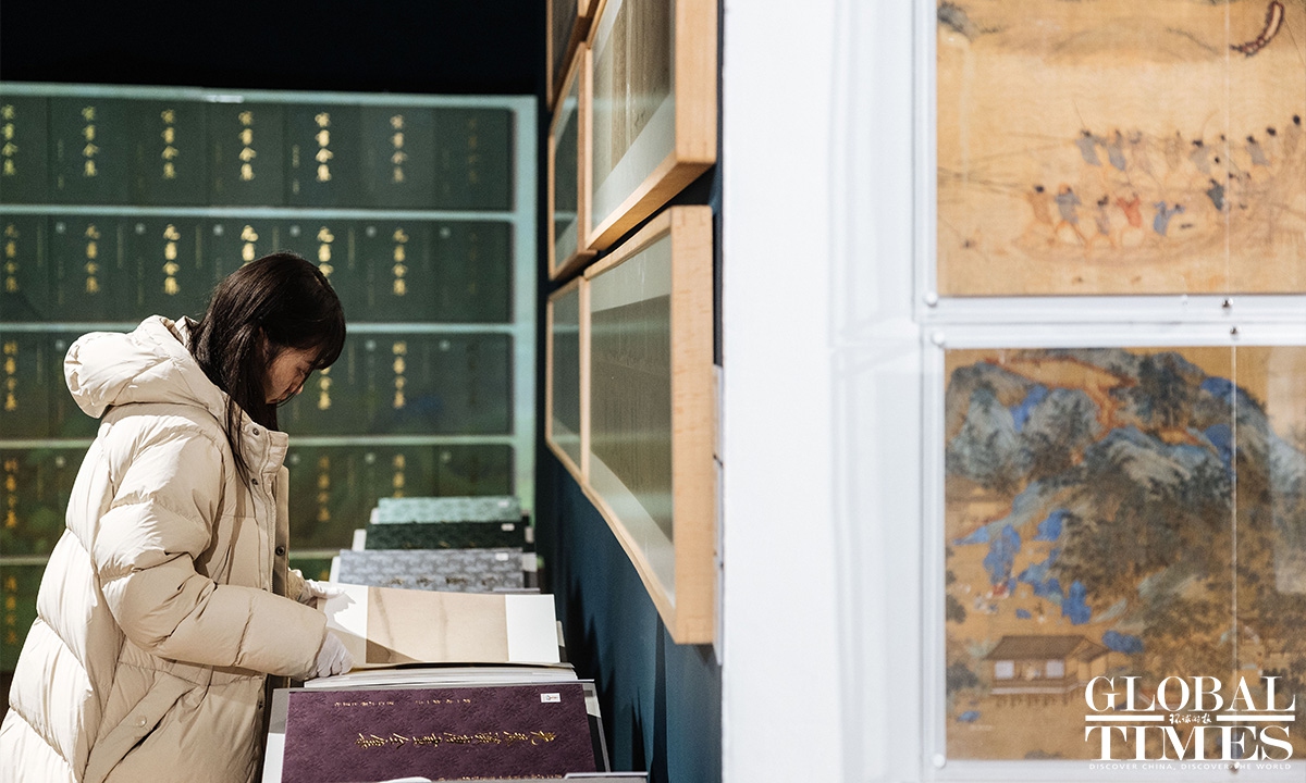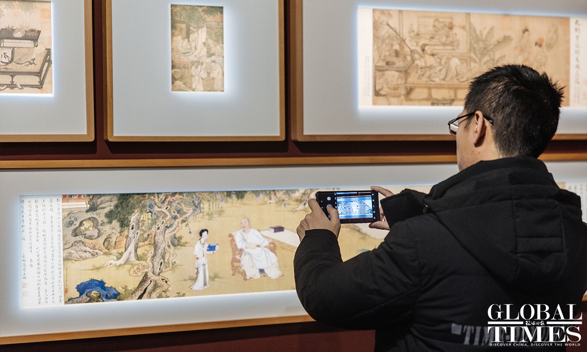 The Thematic Exhibition of the Comprehensive Collection of Ancient Chinese Paintings began at the Beijing World Art Museum on Monday. With a deep exploration of the compilation and publishing results of the Comprehensive Collection of Ancient Chinese Paintings, the exhibition selects works under the theme of reading and takes the compilation process of the collection as its main storyline. The Comprehensive Collection of Ancient Chinese Paintings, a project by Zhejiang University and the Zhejiang Provincial Administration of Cultural Heritage, is currently the world’s most comprehensive collection of pictures of paintings in ancient China. Over the course of 18 years, it has covered a total of over 12,000 pieces of Chinese paintings on paper, silk (including brocade and damask), linen, and other materials from 263 museums and other cultural institutions at home and abroad. The project includes most of the extant national treasures throughout history. The exhibition will run until May 5. Photos: Li Hao/GT