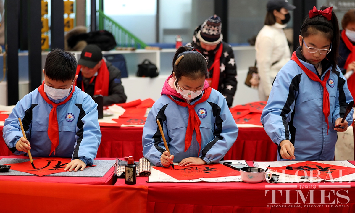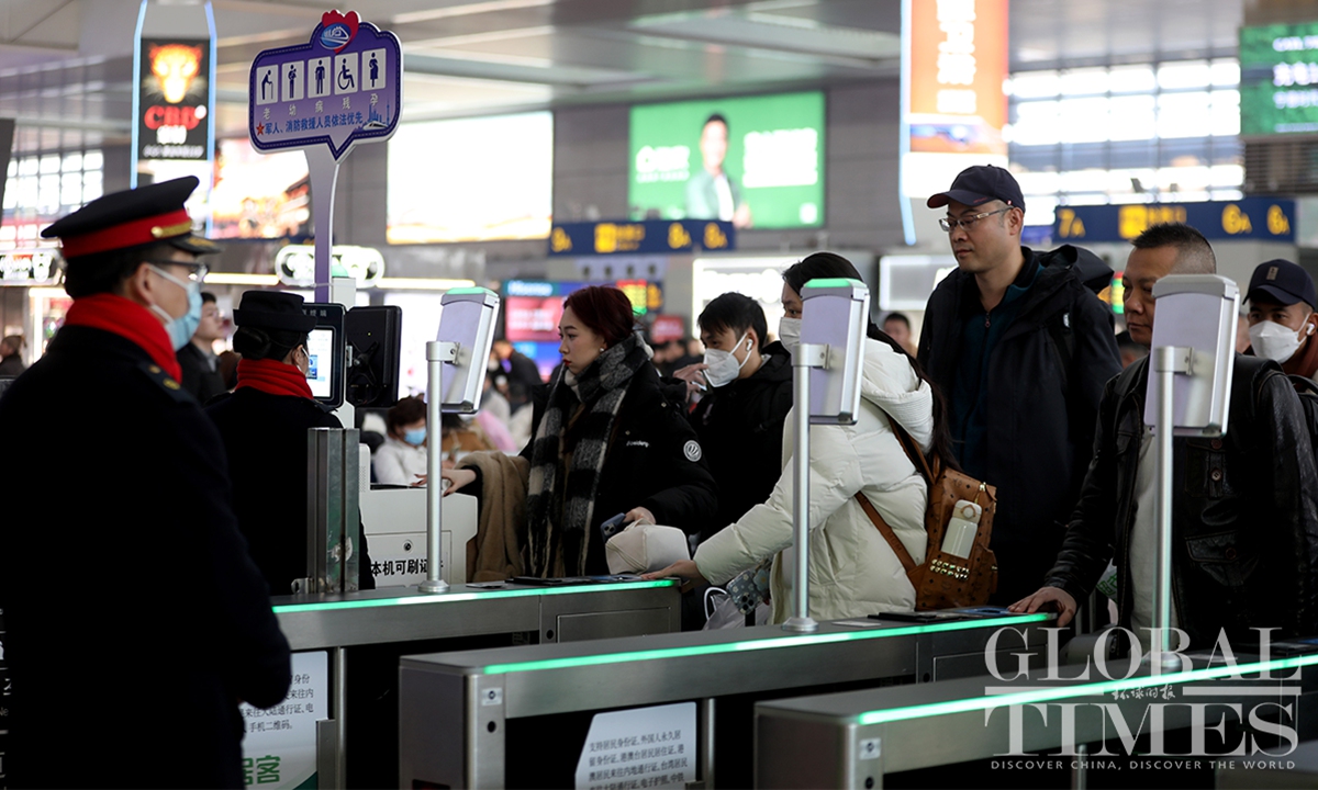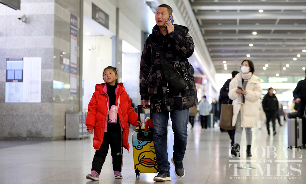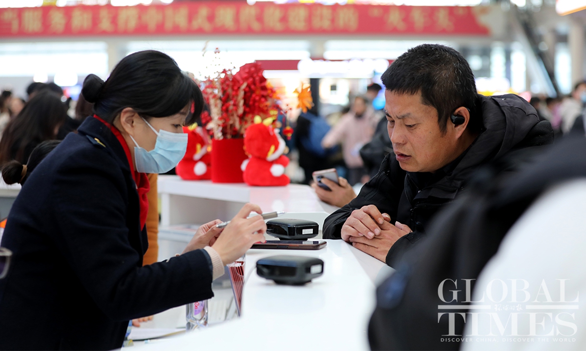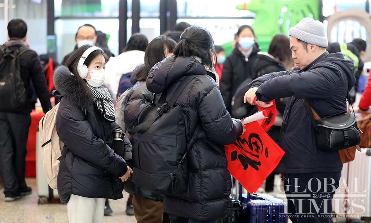 The waiting hall of Shanghai Hongqiao Railway Station was full of passengers on Friday. The local railway authorities also held some activities such as writing Spring Festival couplets to send best wishes to the passengers.