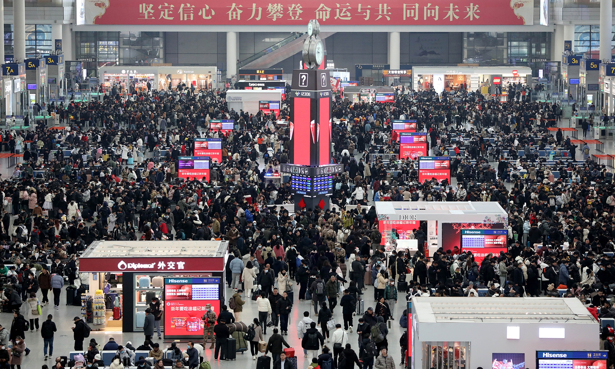China officially started its largest annual population migration on Friday, 15 days ahead of the Spring Festival. China's railway operator said on Friday that the country's railways are expected to handle 480 million passenger trips in this travel season.